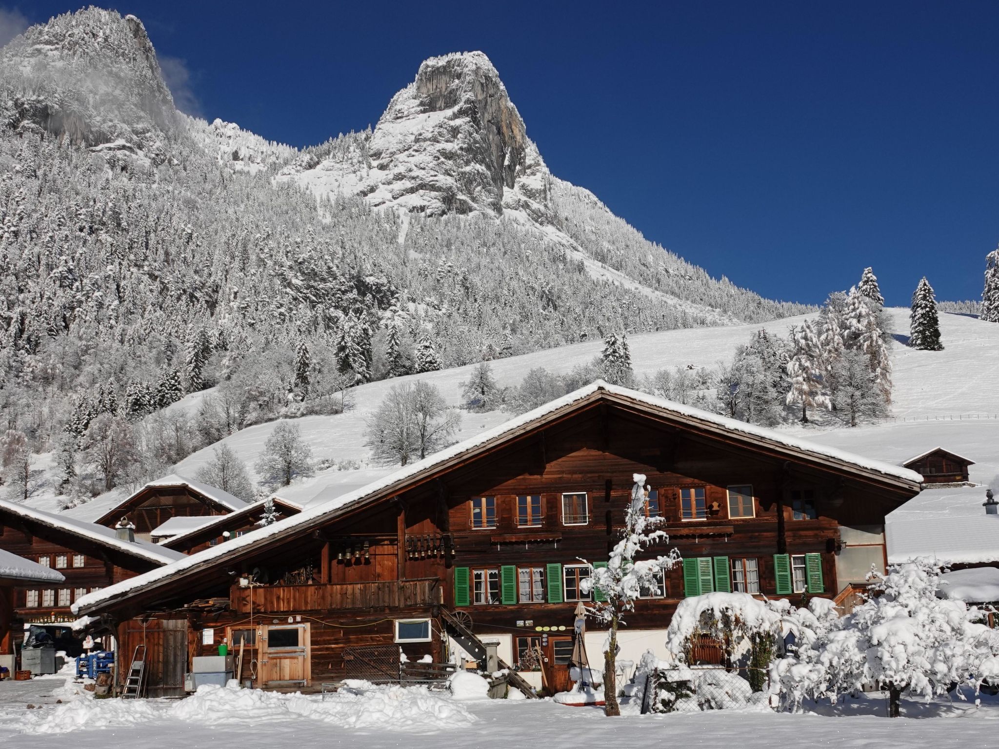 120 m2. Weitere Angaben des Anbieters: Erholen Sie sich in Schwarzenmatt, der Sonnenstube von Boltigen. Die Wohnung befindet sich in einem Bauernhaus im 1. OG. Bei einem Frühstück auf dem zur Wohnung gehörenden Balkon lässt es sich wunderbar in den Tag starten. Den erholsamen Garten, wie die Feuerstelle und den Grill können Sie in Absprache mit den Gastgebern nutzen. Frühling und Herbst bietet Schwarzenmatt wunderschöne Spaziergänge in der Natur. Im Winter ist der Ort Ausgangspunkt für schöne Winterwanderungen oder Schneeschuhtouren. Schwarzenmatt eignet sich wunderbar als Startpunkt für diverse Ausflüge. In 15 Min. sind Sie mit dem Auto auf dem Jaunpass, welcher sich als Ausgangspunkt für viele Aktivitäten eignet. Die Lenk erreichen Sie mit dem Auto in 30 Min. und Zweisimmen in 10 Min. In 15 Min. sind Sie zu Fuss in Reidenbach, wo Sie ÖV - Anbindung nach Spiez und Zweisimmen, Lenk und Gstaad haben. Wohnzimmer mit TV, Esstisch und Sofa. Heimelige Ferienwohnung in einem Bauernhaus, in ruhiger Lage. Kleine und einfache Küche mit Esstisch. Kleiner Balkon mit Tisch und 2 Stühlen (weitere Klappstühle vorhanden) Schlafzimmer 1 mit einem Doppelbett und ein Jugendbett (140 cm) Schlafzimmer 2 mit einem Doppelbett und 1 Bett für Kleinkind. Badezimmer mit Badewanne und separater Dusche. ÖV inklusive im Simmental und Saanenland mit der SIMMENTAL CARD: Übernachtungsgäste in der Ferienregion Lenk-Simmental fahren mit einer gültigen Gästekarte kostenlos mit dem öffentlichen Verkehr für Ausflüge. Gratis WiFi, Duschtücher,Bett- und Küchenwäsche vorhanden, Parkplatz, TV mit Swisscom TV und Einstellplatz für Fahrräder.