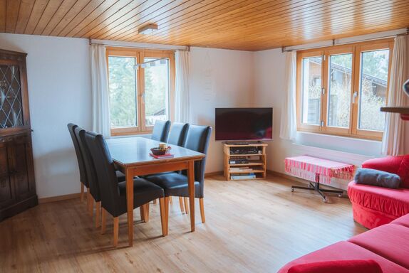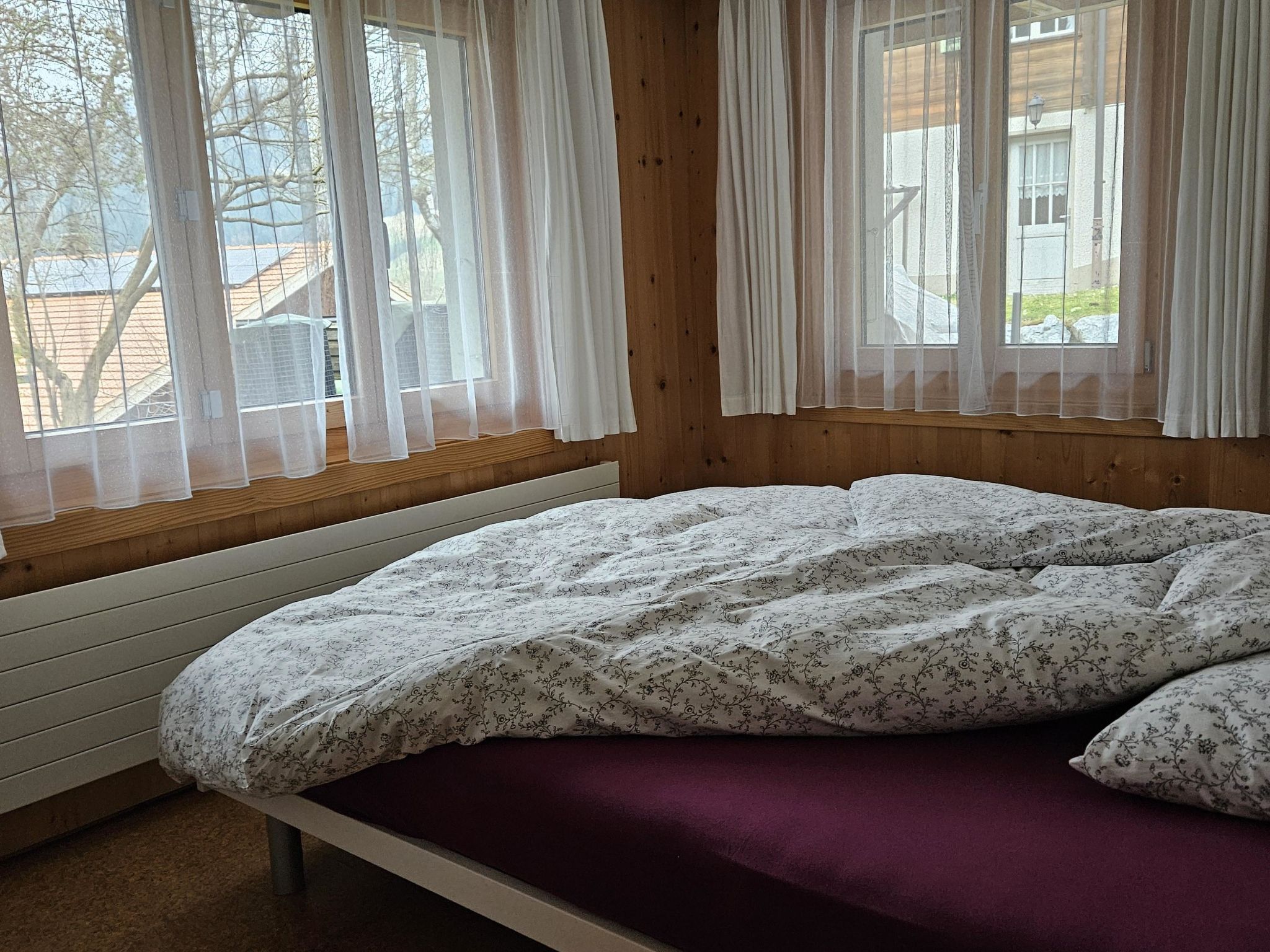 70 m2. Weitere Angaben des Anbieters: 4-Zimmerwohnung (70m2) im Tiefparterre eines 1970 erbauten 2-Familienhauses. Ruhige Lage mit schöner Aussicht. Nahe Tennisplatz, Wald, Wanderwegen, Schwimmbad und Skipiste Rinderberg. Waschmaschine und Trockner in der Liegenschaft zur gemeinschaftlichen Nutzung vorhanden. Aussensitzplatz und Liegewiese vorhanden. 700m bis ins Dorfzentrum. 2 ungedeckte Parkplätze stehen zur Verfügung. Wohn-/Esszimmer, Küche (u. a. ausgestattet mit Filterkaffeemaschine, Toaster, Fondue- und Raclette-Set), Bad, Heizungsraum mit WC und Lavabo. Radio/Satelliten-TV/Video/DVD-Gerät sowie WiFi. Grill im Garten. 1 Doppelschlafzimmer mit 2 Betten (2x90x200cm) mit Schrank, 1 Doppelschlafzimmer mit 2 Betten (2x80x200cm) mit Schrank und 1 Schlafzimmer mit 1 Etagenbett (je 90x190cm) und 1 Einzelbett (90x190cm) mit Schrank. Kinderbett (70x120cm) inkl. Bettwäsche und Kinderhochstuhl vorhanden. Nichtraucher-Wohnung! INKLUSIVE: Elektrizität, Heizung, Wasser, Waschmaschine, Wäschetrockner, 1-2 ungedeckte Parkplätze, WiFi, Kinderhochstuhl, Küchen-, Badezimmer- und Bettwäsche (Erstausstattung) sowie Endreinigung und Kurtaxen. EXKLUSIVE: Filterkaffee, Kinderbett (70x120cm) inkl. Bettwäsche à CHF 10.00 pro Aufenthalt. ***Haustiere nicht erlaubt***.