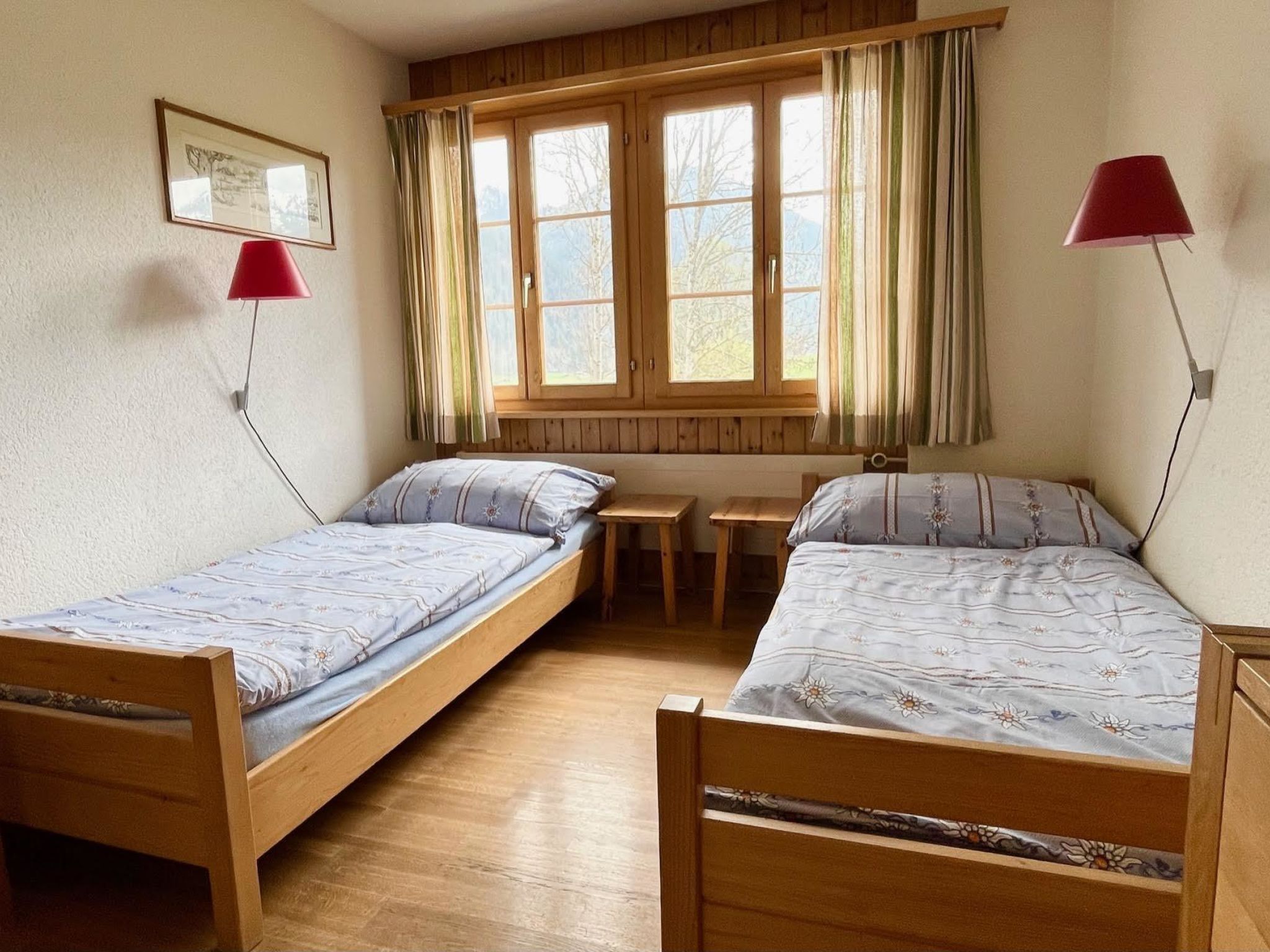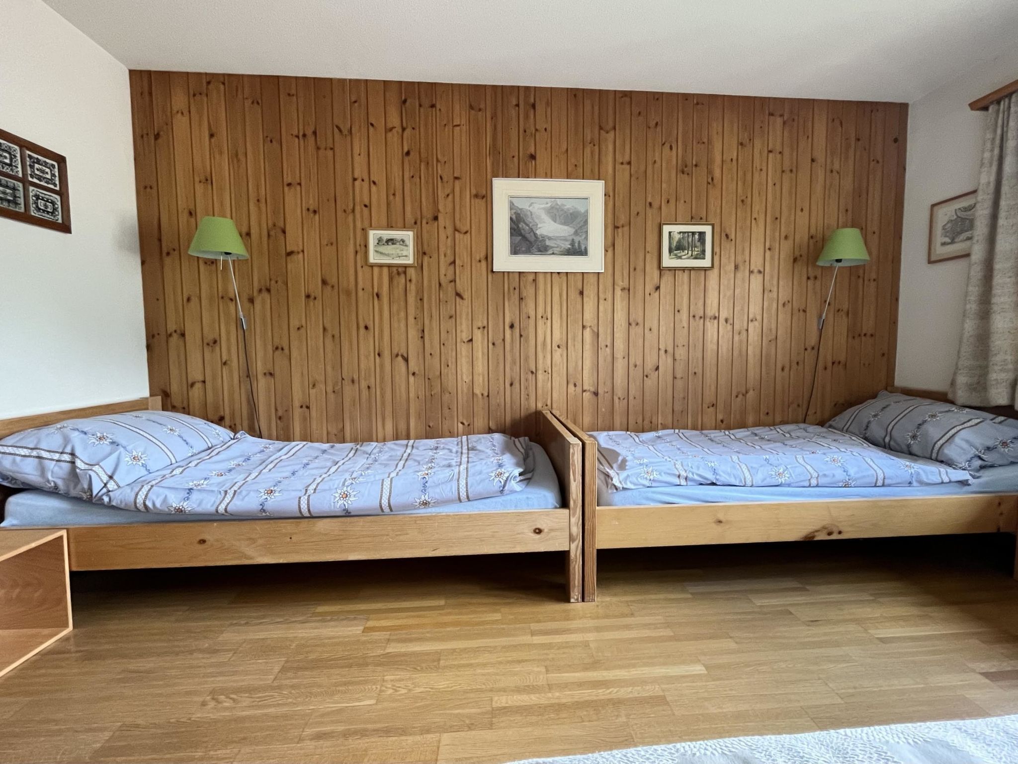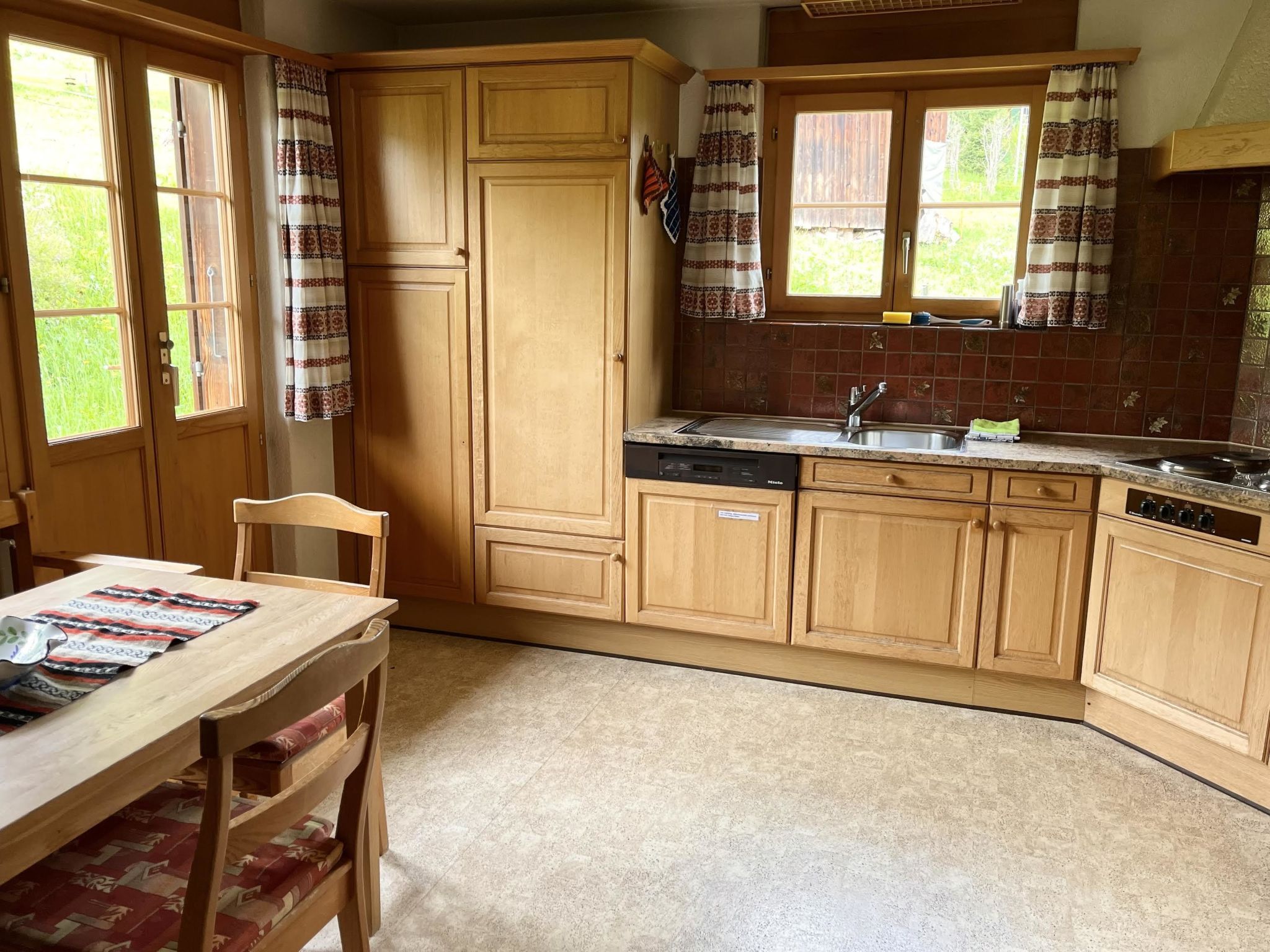 117 m2. Weitere Angaben des Anbieters: 4-Zimmerwohnung (117m2) im Erdgeschoss eines Chalets (Baujahr 1984). Ruhige Lage mit schöner Aussicht. 5 Minuten vom Dorfzentrum entfernt. Parkplatz beim Haus. Grosse Terrasse mit Gartensitzplatz, Balkon. Skiraum sowie Waschküche mit Waschmaschine stehen im Untergeschoss zur gemeinschaftlichen Benutzung zur Verfügung. Separate Küche mit Esstisch, Geschirrspüler, Kapsel-Kaffeemaschine (Delizio) sowie Fondue- und Raclette-Set. Grosses Wohnzimmer mit Cheminée und Esstisch, TV/Telefon/Radio, WiFi. 1 Badezimmer mit Badewanne/Dusche und WC. 1 Schlafzimmer mit 2 Einzelbetten (2x100x190cm). 1 Schlafzimmer mit 3 Einzelbetten (3x90x190cm), 1 Unterziehbett (90x190cm) sowie 1 Badezimmer mit Dusche/WC. 1 Schlafzimmer mit 2 zusammengeschobenen Einzelbetten (2x90x190cm). Kinderbett (70x140cm), Reisekinderbett inkl. Bettwäsche und Kinderhochstuhl vorhanden. INKLUSIVE: Elektrizität, Heizung, Wasser, Parkplatz, Cheminéeholz, Waschmaschine, WiFi, Kinderbett (70x140cm) inkl. Bettwäsche, Kinderhochstuhl, Küchen-, Badezimmer- und Bettwäsche (Erstausstattung) sowie Endreinigung und Kurtaxen. EXKLUSIVE: Kapseln für Kaffeemaschine (Delizio), Filterkaffee. Telefongesprächstaxen. CHF 20.00 pro Aufenthalt für ein Haustier. ***Haustiere willkommen*** Wichtig: In den meisten Ferienwohnungen ist nur ein Haustier (in der Regel ein Hund) erlaubt. Weitere bzw. andere Haustiere müssen vor der Buchung angefragt werden.