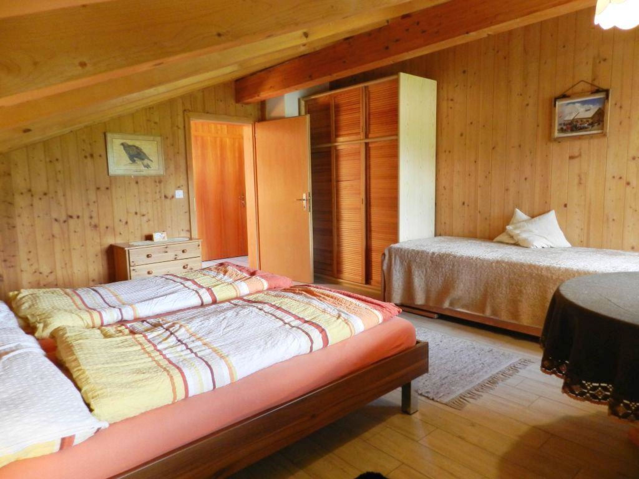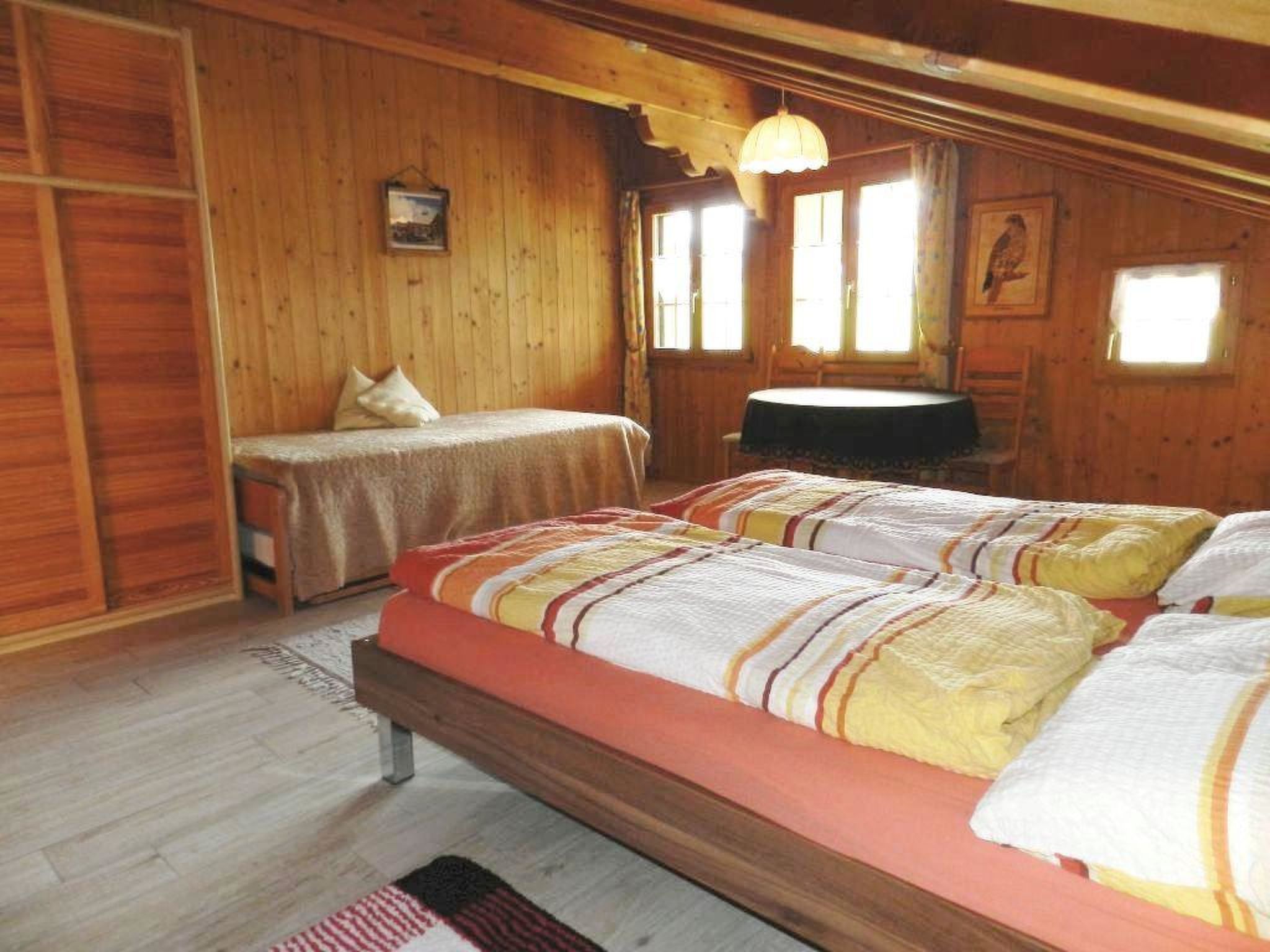 70 m2. Weitere Angaben des Anbieters: 2.5-Zimmer-Nichtraucher-Dachwohnung (70m2) im 2. Stock eines 1990 erbauten Chalets in Mannried (knapp 2.5 km vom Dorfzentrum Zweisimmen entfernt). Ruhige Lage mit schöner Aussicht zum Rinderberg und auf die umliegende Bergwelt. Eine möblierte Terrasse befindet sich vor dem Chalet. 1 gedeckter Parkplatz steht zur Verfügung. Waschmaschine und Wäschetrockner stehen im Erdgeschoss auf Anfrage zur Verfügung. Auf Anfrage bieten die Vermieter am An- und Abreisetag einen kostenlosen Transfer vom/zum Bahnhof Zweisimmen an. Wohn-/Esszimmer mit offener Küche (u.a. ausgestattet mit Keramikherd, Backofen, Mikrowelle, Geschirrspülmaschine, Filterkaffeemaschine (Martello) sowie Fondue- und Raclette-Set), Esstisch, Schwedenofen, Radio und TV. 1 Schlafzimmer mit 1 Doppelbett (2x90x200cm), 1 Einzelbett (90x200cm). 1 Badezimmer mit Badewanne und WC. WiFi vorhanden. Kinderbett (70x140cm) inkl. Bettwäsche und Kinderhochstuhl vorhanden. INKLUSIVE: Elektrizität, Heizung, Wasser, 1 gedeckter Parkplatz, WiFi, Kinderbett (70x140cm) inkl. Bettwäsche, Kinderhochstuhl, Küchen-, Badezimmer- und Bettwäsche (Erstausstattung) sowie Kurtaxen und Endreinigung. EXKLUSIVE: Waschmaschine und Wäschetrockner gegen Entgelt à CHF 2.00 pro Waschgang. Filterkaffee, Kapseln für die Kaffeemaschine (Martello). Cheminée-Holz und Kapseln für die Kaffeemaschine kann bei den Vermietern gekauft werden (nur Holzvorrat für 1. Feuerung ist inklusive). ***Haustiere nicht erlaubt***.