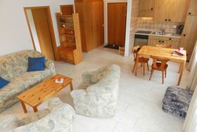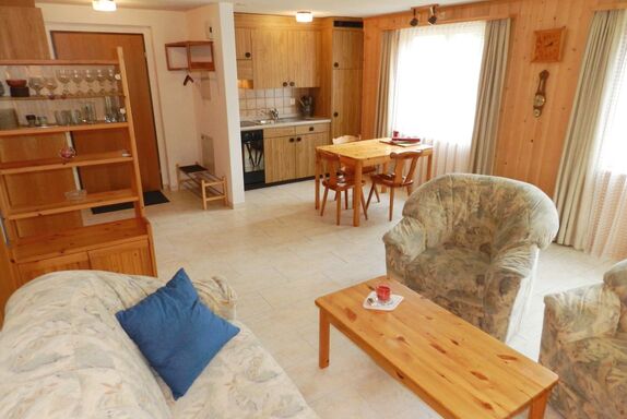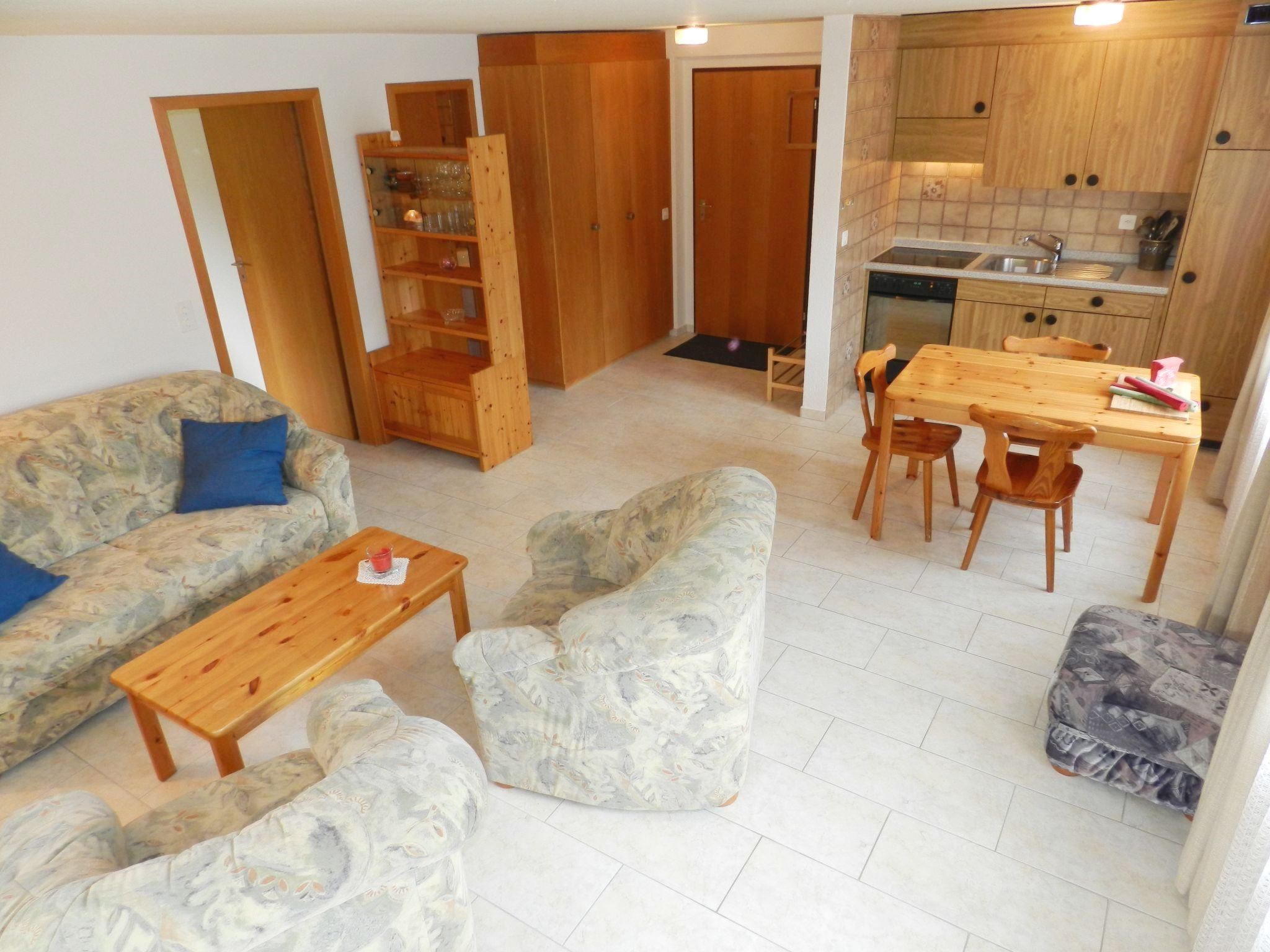 56 m2. Weitere Angaben des Anbieters: 2.5-Zimmerwohnung (56m2) an ruhiger und sonniger Lage im Erdgeschoss eines im Jahre 1984 erbauten Mehrfamilienchalets. Nur 5 Gehminuten ins Dorfzentrum von Zweisimmen. Möblierter Aussensitzplatz mit davorliegendem Rasen. 1 ungedeckter Parkplatz und ein Abstellraum für Sportgeräte sind vorhanden. Die Waschküche mit Waschmaschine und Wäschetrockner zur gemeinschaftlichen Benutzung steht nur auf Anfrage und gegen separate Bezahlung zur Verfügung. Zweisimmen ist ein idealer Ausgangspunkt für Sommer- und Winterferien. Wohn-/Esszimmer mit Esstisch, Bettsofa (140x190cm, für max. 1 Erwachsenen oder 2 Kinder), 2 Sesseln, TV (Swisscom) und offener Küche (u.a. ausgestattet mit Backofen, Kühlschrank mit Gefrierfach, Kapsel-Kaffeemaschine (Dolce Gusto), Toaster, Wasserkocher sowie Raclette- und Fondue-Set). 1 Schlafzimmer mit 2 zusammengeschobenen Einzelbetten (2x90x200cm). 1 Badezimmer mit Badewanne und WC. WiFi. INKLUSIVE: Elektrizität, Heizung, Wasser, 1 ungedeckter Parkplatz (angeschrieben mit dem Namen Glauser), WiFi, Küchen-, Badezimmer- und Bettwäsche (Erstausstattung) sowie Kurtaxen und Endreinigung. EXKLUSIVE: Waschmaschine und Wäschetrockner nur auf Anfrage. Kapseln für Kaffeemaschine (Dolce Gusto). ***Haustiere nicht erlaubt*** ***Kaution: CHF/EUR 200.00 bei Anreise direkt vor Ort bar beim Schlüsselhalter zu bezahlen***.