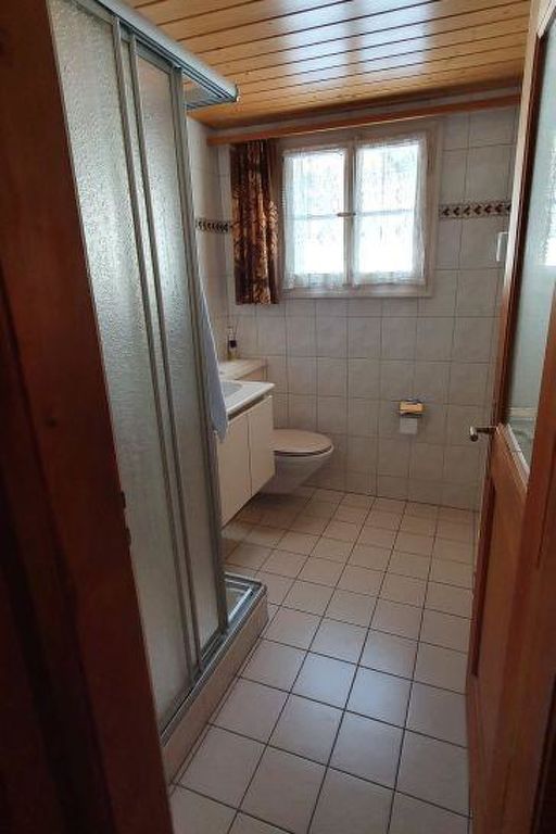100 m2. Weitere Angaben des Anbieters: 5-Zimmerwohnung (100m2) in einem heimeligen Chalet in Zentrumsnähe von Zweisimmen. 7 Gehminuten zum Bahnhof oder der Gondelbahn Rinderberg. Ruhige und sonnige Lage. Der Aussensitzplatz direkt vor der Küche und der grosse Balkon bieten einen schönen Ausblick ins Tal und auf die Berge. Der Parkplatz ist direkt vor dem Haus. Die Waschmaschine (CHF 5.00) und der Wäschetrockner stehen zur gemeinschaftlichen Benutzung zur Verfügung. Die Ferienwohnung Am Ryschbächli, welche von den selben Vermietern angeboten wird, liegt in nur 20m Entfernung. Erdgeschoss: Küche mit Essecke und kompletten Ausstattung mit Kaffeemaschine (Kaffeebohnen De Longhi), Geschirrspüler, Fondue- und Raclette-Set und direktem Zugang zum Gartensitzplatz. Wohnzimmer mit TV. 1 Schlafzimmer mit 2 zusammengeschobenen Einzelbetten (2x90x200cm) mit Zugang zum grossen Balkon. 1. Stock: 3 weitere Schlafzimmer, davon 1 Schlafzimmer mit Doppelbett (180x200cm), 1 Schlafzimmer mit 2 Einzelbetten (2x90x200cm) und 1 Schlafzimmer mit Einzelbett (120x200cm). Auf jeder Etage hat es ein Badezimmer mit WC und Dusche. WiFi. INKLUSIVE: Elektrizität, Heizung, Wasser, WiFi, 1 Parkplatz, Wäschetrockner im Haus mitbenutzbar, Badezimmer-, Küchen- und Bettwäsche (Erstausstattung), Kaffeemaschine (De Longhi Kaffeebohnen). EXKLUSIVE: Waschmaschine gegen Entgelt à CHF 5.00 pro Waschgang im Haus mitbenutzbar. ***Haustiere nicht erlaubt***.