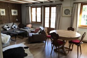 70 m2. Weitere Angaben des Anbieters: Wunderhübsche 3-Zimmer Wohnung in idyllisch gelegenem Chalet mit schöner Aussicht. Gehobener Einrichtungsstandard. Grosses, gemütliches Wohnzimmer mit Cheminee. Idealer Ausgangspunkt zum Skifahren, Wandern oder einfach zum Ausspannen. Im Sommer mit einladendem Schwimmteich. Frisch renovierte Wohnung mit schönem grossen Wohnzimmer mit Cheminée, TV, DVD, Internet und Essplatz. 2 Doppelschlafzimme, Bettsofa, kleine Küche mit Kaffeemaschine, Mikrowelle, Koch- und Backgelegenheit. ÖV inklusive im Simmental und Saanenland mit der SIMMENTAL CARD: Übernachtungsgäste in der Ferienregion Lenk-Simmental fahren mit einer gültigen Gästekarte kostenlos mit dem öffentlichen Verkehr für Ausflüge. Inkl. Internet (Wifi), Elektrizität, Heizung, Garage, Wasser, Küchen- und Badezimmerwäsche, Bettwäsche, Endreinigung, sowie ein Korb Cheminéeholz. Exkl. Weiteres Cheminéeholz nach Aufwand. Das Reisekinderbettchen wird kostenlos, ohne Bettinhalt, zur Verfügung gestellt. Der Bettinhalt muss von den Gästen selber mitgebracht werden.