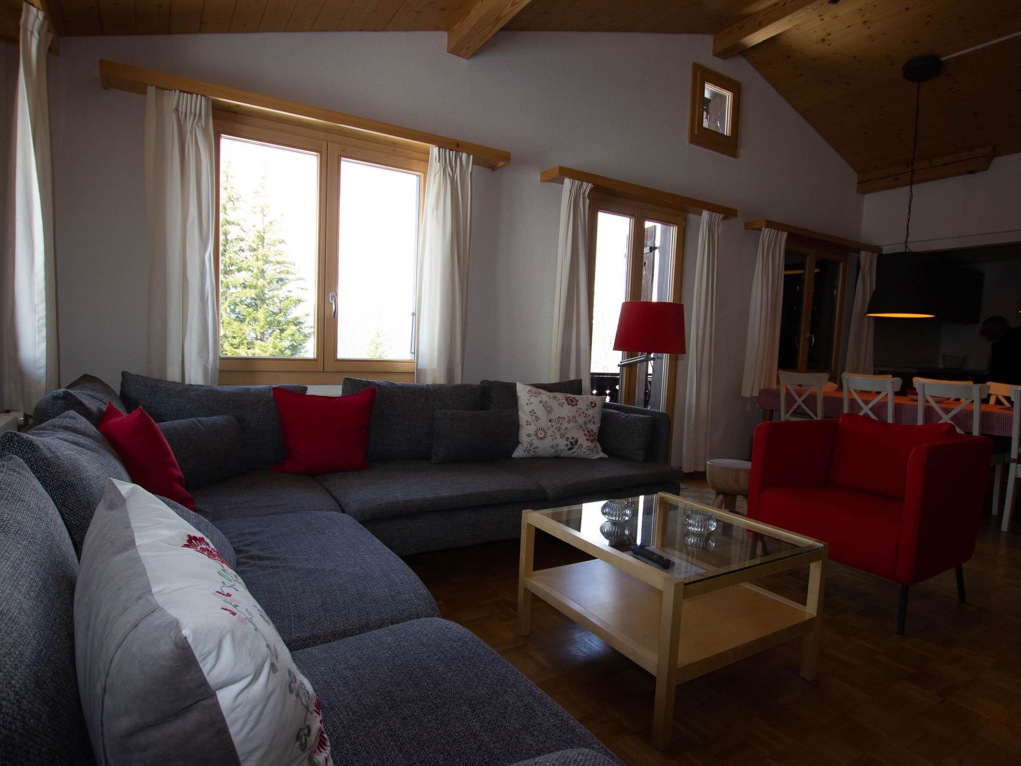 140 m2. Weitere Angaben des Anbieters: 5-Zimmer-Wohnung in einem Einfamilienhaus auf 1600m über Meer im Gebiet Brandegg. An ruhiger und idyllischer Lage mit Blick auf den Wildstrubel und das Betelberg-Skigebiet. Ab Bahnhof Lenk fahren regelmässig Busse, im Sommer und im Winter, auf den Bühlberg. Die Bushaltestelle befindet sich 200m vom Haus entfernt. Im Winter können Sie mit den Skiern bis zum Haus fahren. Das Einfamilienhaus wurde im Herbst 2008 neu renoviert. Die Wohnung hat eine schöne Wohnküche, ein Wohnzimmer mit Cheminée, 4 Doppelschlafzimmer mit je 2 Einzelbetten (aneinander gereiht). In einem Schlafzimmer bietet ein ausziehbaren Couch zusätzlich 2 weiteren Personen eine Schlafgelegenheit. Die Wohnung verfügt über zwei Badezimmer mit Dusche/WC. Im EG befinden sich 2 Schlafzimmer und 1 Badezimmer; im 1. Stock befindet sich die Küche, ein grosser Esstisch, das Wohnzimmer, 2 Schlafzimmer und 1 Badezimmer. Ein schöner Balkon und eine Terrasse sind ebenfalls vom 1. Stock aus erreichbar. Ganz neu befindet sich eine Infrarot-Sauna für 3-4 Personen im Chalet Möösli! ÖV inklusive im Simmental und Saanenland mit der SIMMENTAL CARD: Übernachtungsgäste in der Ferienregion Lenk-Simmental fahren mit einer gültigen Gästekarte kostenlos mit dem öffentlichen Verkehr für Ausflüge. Im Mietzins sind der Strom, die Heizkosten und 3 Aussenparkplätze, Holz für das Cheminée, die Bett- und Frottierwäsche, Küchenwäsche sowie die Endreinigung inbegriffen. Filterkaffeemaschine vorhanden. Die Holzkohle für den Grill müssen Sie selber besorgen.