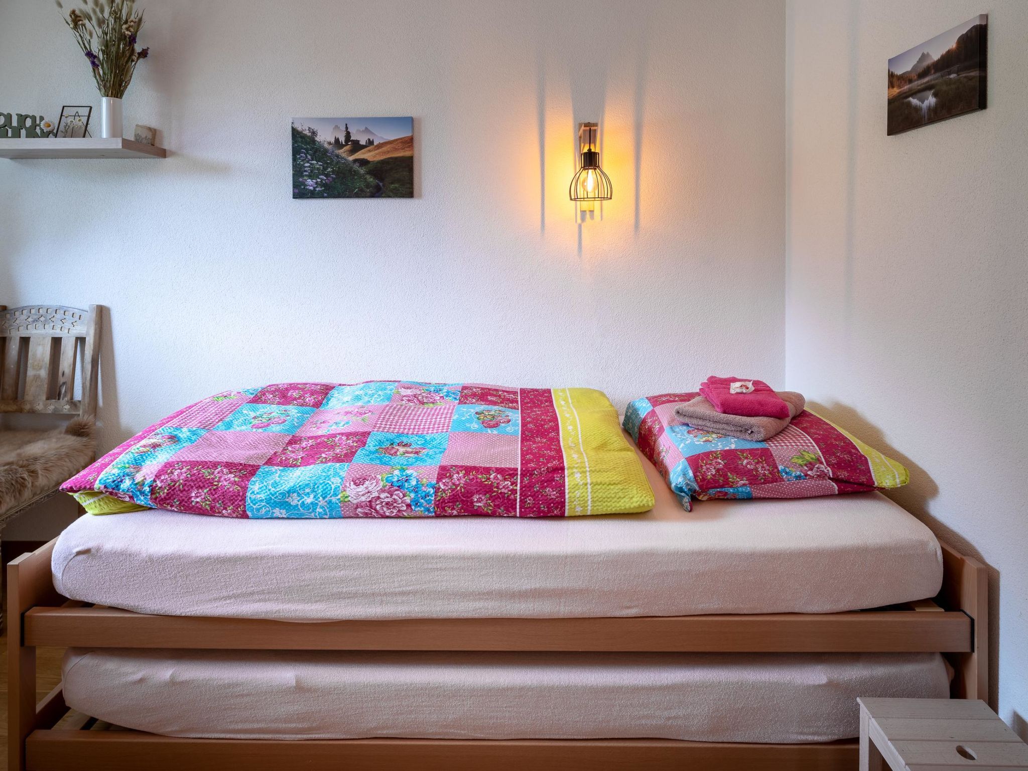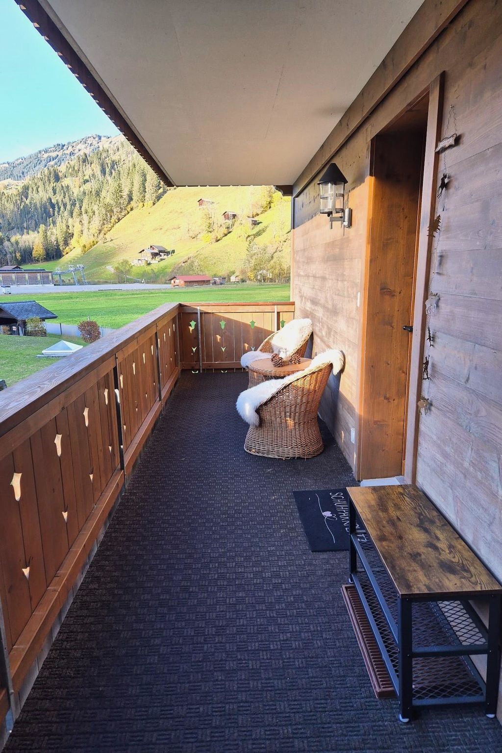 63 m2. Weitere Angaben des Anbieters: 3 1/2-Zimmer-Wohnung in einem Mehrfamilien-Chalet mit Lift an ruhiger und idyllische Lage mit herrlichem Bergpanorama vom Balkon aus. Ideale Lage zum Wandern und Skifahren. Die Wohnung befindet sich nahe bei den Simmenfällen. Die Langlaufloipe führt direkt vor dem Haus durch. Nur 5 Gehminuten bis zur Talstation der Gondelbahn Stand-Xpress, (Metschbahn) welche Sie bequem ins Ski- und Wanderparadies Adelboden - Lenk führt und ein idealer Standort auch für Fallschirmsegler ist. Eine Whirlpool - Wanne zum Entspannen werden Sie antreffen. Schöne 3.5 Zimmer-Ferienwohnung in einem Mehrfamilienhaus im 1. Stock links. Die Wohnung eignet sich für 4 Personen und ist ausgestattet mit Wohn-/Esszimmer, Schwedenofen, Sofa, Swisscom TV, DVD Player und Radio. Küche mit Geschirrspüler, Filter-Kaffeemaschine und Nespresso Kaffeeemaschine. Elternschlafzimmer mit einem Doppelbett (160x200 cm). Zweites Schlafzimmer mit zwei Einzelbetten (90x200 cm). Badezimmer mit Sprudelwanne/Dusche. Separates WC (Trennwand zum Badezimmer). Die Wohnung verfügt über einen Balkon mit einem Tisch und vier Stühlen. Das Rauchen auf dem Balkon ist erlaubt. Im Winter stehen zwei Kinderschlitten zur Verfügung. ÖV inklusive im Simmental und Saanenland mit der SIMMENTAL CARD: Übernachtungsgäste in der Ferienregion Lenk-Simmental fahren mit einer gültigen Gästekarte kostenlos mit dem öffentlichen Verkehr für Ausflüge. Die Unterkunft Schöne 3.5 Zimmer-Ferienwohnung in einem Mehrfamilienhaus im 1. Stock links. Die Wohnung eignet sich für 4 Personen und ist ausgestattet mit Wohn-/Esszimmer, Schwedenofen, Sofa, Swisscom TV, DVD Player und Radio. Küche mit Geschirrspüler, Filter-Kaffeemaschine und Nespresso Kaffeemaschine. Elternschlafzimmer mit einem Doppelbett (160x200 cm). Zweites Schlafzimmer mit zwei Einzelbetten (90x200 cm). Badezimmer mit Sprudelwanne/Dusche. Separates WC (Trennwand zum Badezimmer). Die Wohnung verfügt über einen Balkon mit einem Tisch und vier Stühlen. Das Rauchen auf dem Balkon ist erlaubt. Im Winter stehen zwei Kinderschlitten zur Verfügung. ÖV inklusive im Simmental und Saanenland mit der SIMMENTAL CARD: Übernachtungsgäste in der Ferienregion Lenk-Simmental fahren mit einer gültigen Gästekarte kostenlos mit dem öffentlichen Verkehr für Ausflüge vom 1. Mai bis 31. Oktober. Ausserhalb der Sommermonate stehen weiterhin alle Buslinien an der Lenk gratis zur Verfügung. Weitere wichtige Hinweise Inkl. Elektrizität, Heizung, Aussenparkplatz und Garagenplatz, Lift, Bett-, Küchen- und Badezimmerwäsche, WIFI, Swisscom TV. Küche: Toaster, Fondue- und Raclette Set, Nespresso- und Filter Kaffeemaschine. Kinder: Ein Kinderreisebett mit Matratze steht auf Anfrage zur Verfügung (bitte bei der Buchung vermerken). Ebenso können ein Kinderhochstuhl mit Tischli, und 3 Kindervelos benutzt werden. Die Wohnung verfügt zusätzlich über einen Schwedenofen und eine Whirlpoolwanne. 2 Erwachsenen-Velos stehen zur Verfügung.