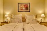 Im separaten Schlafzimmer befinden sich ein Doppelbett und eine freundliche und moderne Holzeinrichtung. Hier ist Platz für 1 Kinderbett.