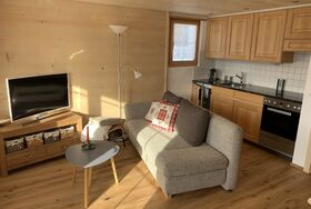 45 m2. Weitere Angaben des Anbieters: Das Chalet Meieli ist oberhalb der Lenk auf 1500 M.ü.M. gelegen. Hier haben Sie eine wunderbare Aussicht in die Berge und Sommer und Winter Sonne bis zum Sonnenuntergang. Die Nichtraucher-Wohnung liegt im Parterre und ist seit Beginn 2021 frisch renoviert. Sie verfügt über ein Schlafzimmer mit einem Doppelbett, ein modernes Bad und einen Wohnraum mit Küche. Eine Nespresso-Kaffeemaschine ist vorhanden, ebenso Kabelfernseher und WiFi. Die Wohn- und Schlafräume sind mit Holzböden und heimeligem Wandtäfter ausgestattet. Alles ist neu möbliert. Im Sommer warten viele einfache oder auch anspruchsvollere Wanderungen um entdeckt zu werden. Im Winter erwartet Sie ein tolles Skigebiet, das Sie mit dem Auto oder dem Bus in 5 Minuten erreichen. Im Hochsommer geniessen Sie bis nach 21.00 Uhr die Sonne auf dem Gartensitzplatz. Das Dorfzentrum ist ca. 4,5 km entfernt und kann via gratis Ortsbus (Gästekarte) auch mit öffentlichen Verkehrsmitteln erreicht werden (200m Distanz zur Haltestelle). Wohn-Essraum im Alpenstil, Eichenparkett, TV/Radio mit Satellit, Küchenzeile mit Glaskeramik, Backofen, Kühlschrank, Nespressomaschine, modernes Badezimmer mit Dusche und WC, Schlafzimmer mit Doppelbett, Gartensitzplatz mit Gartenmöbeln, Parkplatz vor dem Haus. Die Wohnung wurde Ende 2020 vollständig renoviert und neu möbliert. ÖV inklusive im Simmental und Saanenland mit der SIMMENTAL CARD: Übernachtungsgäste in der Ferienregion Lenk-Simmental fahren mit einer gültigen Gästekarte kostenlos mit dem öffentlichen Verkehr für Ausflüge. Inkl. Küchenwäsche und Badezimmerwäsche, Bettwäsche, Endreinigung.
