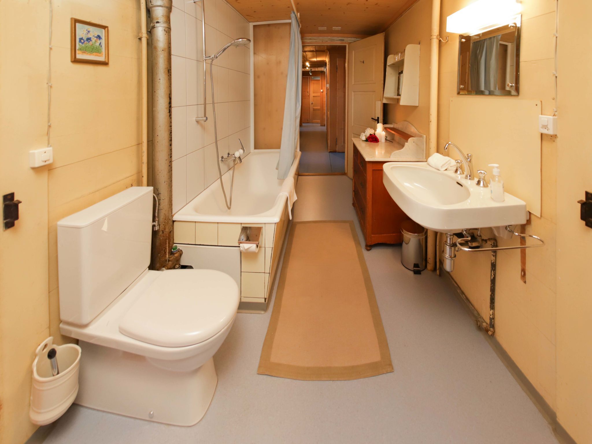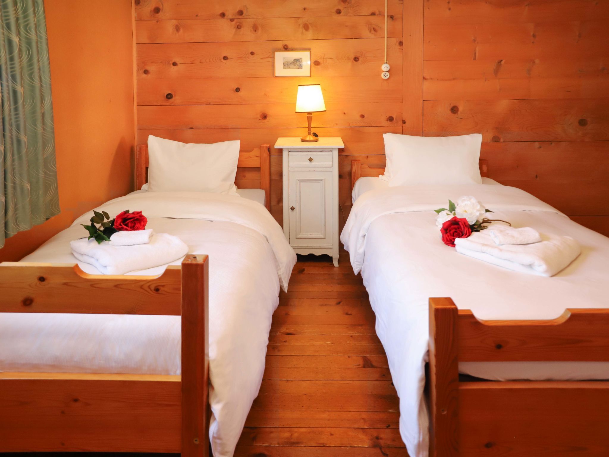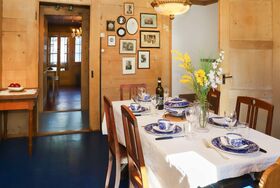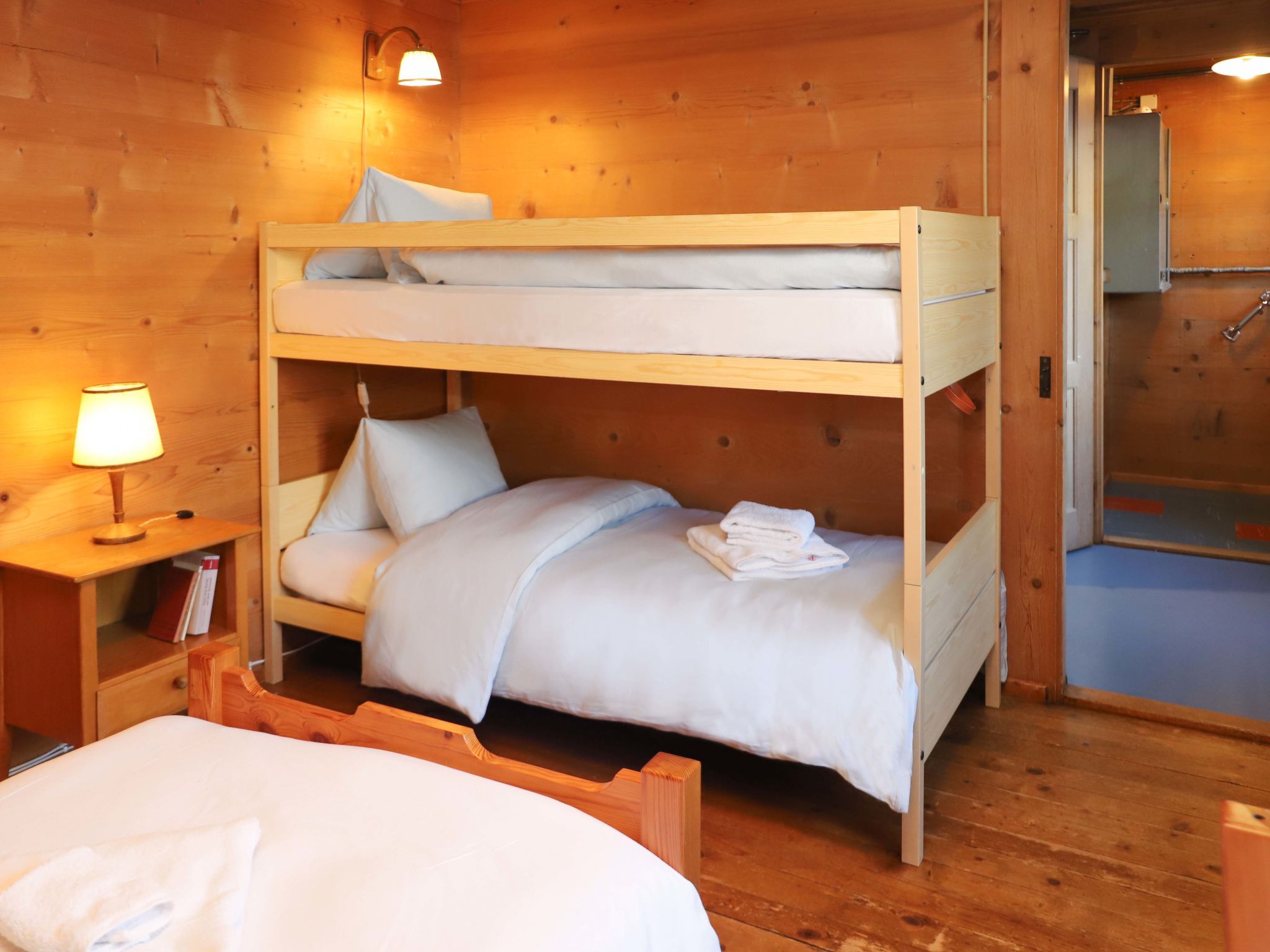 4-Zimmer-Wohnung 90 m2 im 1. Stock. Geräumig, einfach und geschmackvoll eingerichtet: Wohnzimmer mit Kachelofen. Esszimmer mit Esstisch. 1 Zimmer mit 1 Doppelbett (2 x 90 cm, Länge 200 cm). 1 grosses Zimmer mit 2 Betten (90 cm, Länge 200 cm), 1 x 2 Etagenbetten (90 cm, Länge 200 cm). Grosse Küche (4 Kochplatten, Backofen, Toaster, Wasserkocher, elektrische Kaffeemaschine, Racletteofen, Fondue Set (Käse)). Ausgang zum Gartensitzplatz. Sep. WC, Bad/Dusche/WC. Holzheizung. Heizung nicht in allen Räumen. Holzdielenboden. Gartensitzplatz, Westlage. Abstellkammer. Herrliche Sicht auf die Berge, die Skipiste und die Landschaft. Zur Verfügung: Babybett (extra), Haartrockner, Holz (extra). Internet (Wireless LAN, gratis). Parkplatz (1 Auto) beim Haus, im Winter in 40 m. Bitte beachten: geeignet für Familien. Nichtraucher-Haus. Rauchmelder, Feuerlöscher.