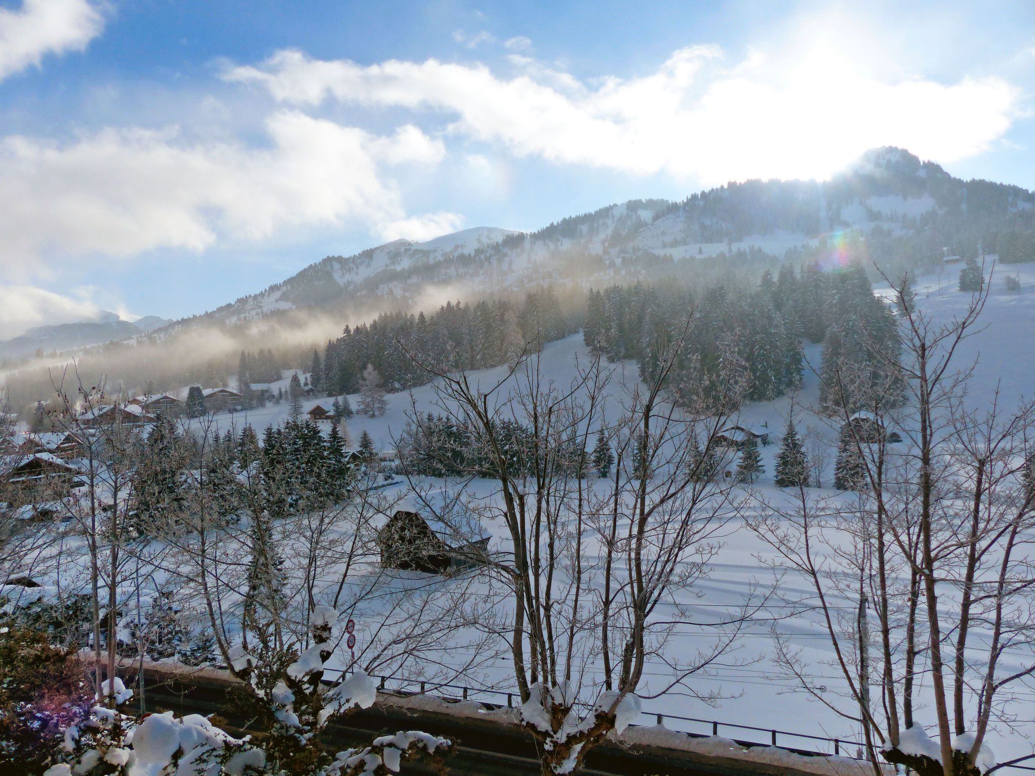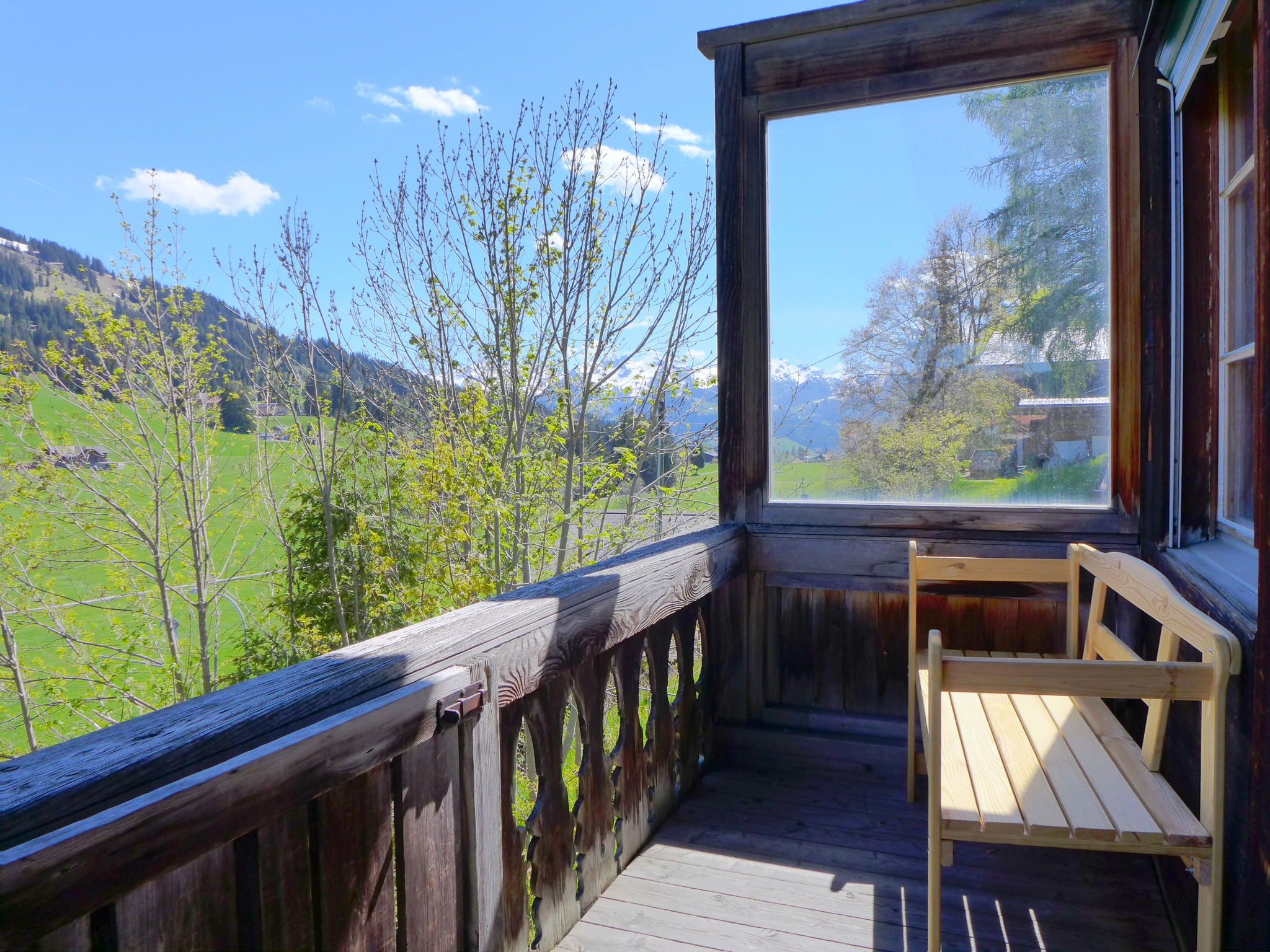 Saanenmöser 8 km von Gstaad: Sehr schönes, historisches Chalet Chalet Ahorni, auf 3 Stockwerken, Baujahr 1920, umgeben von Wiesen. 2 Wohnungen im Ferienhaus. Sonnige, erhöhte Lage am Hang, 1 km vom Skigebiet. Im Hause: Skiraum, Zentralheizung. 40 m lange schmale Zufahrt bis zum Haus (Naturweg). Parkplatz beim Haus, im Winter 40 m. Einkaufsgeschäft, Lebensmittelgeschäft, Restaurant 400 m, Bushaltestelle, Bahnstation 500 m. Golfplatz (18 Loch) 1 km, Tennis 500 m, Wanderwege ab Haus 50 m, Gondelbahn, Skisportanlagen 700 m, Skischule, Langlaufloipe 600 m, Kinderspielplatz 600 m. Nahe gelegene Sehenswürdigkeiten: Gstaad. Bekannte Skigebiete sind gut erreichbar: Hornberg, Glacier 3000. Wandergebiete: Lauenensee, Simmentaler Hausweg. Bitte beachten: Hauptstrasse in der Nähe. Es ist ein altes Holzhaus und deshalb ziemlich hellhörig.