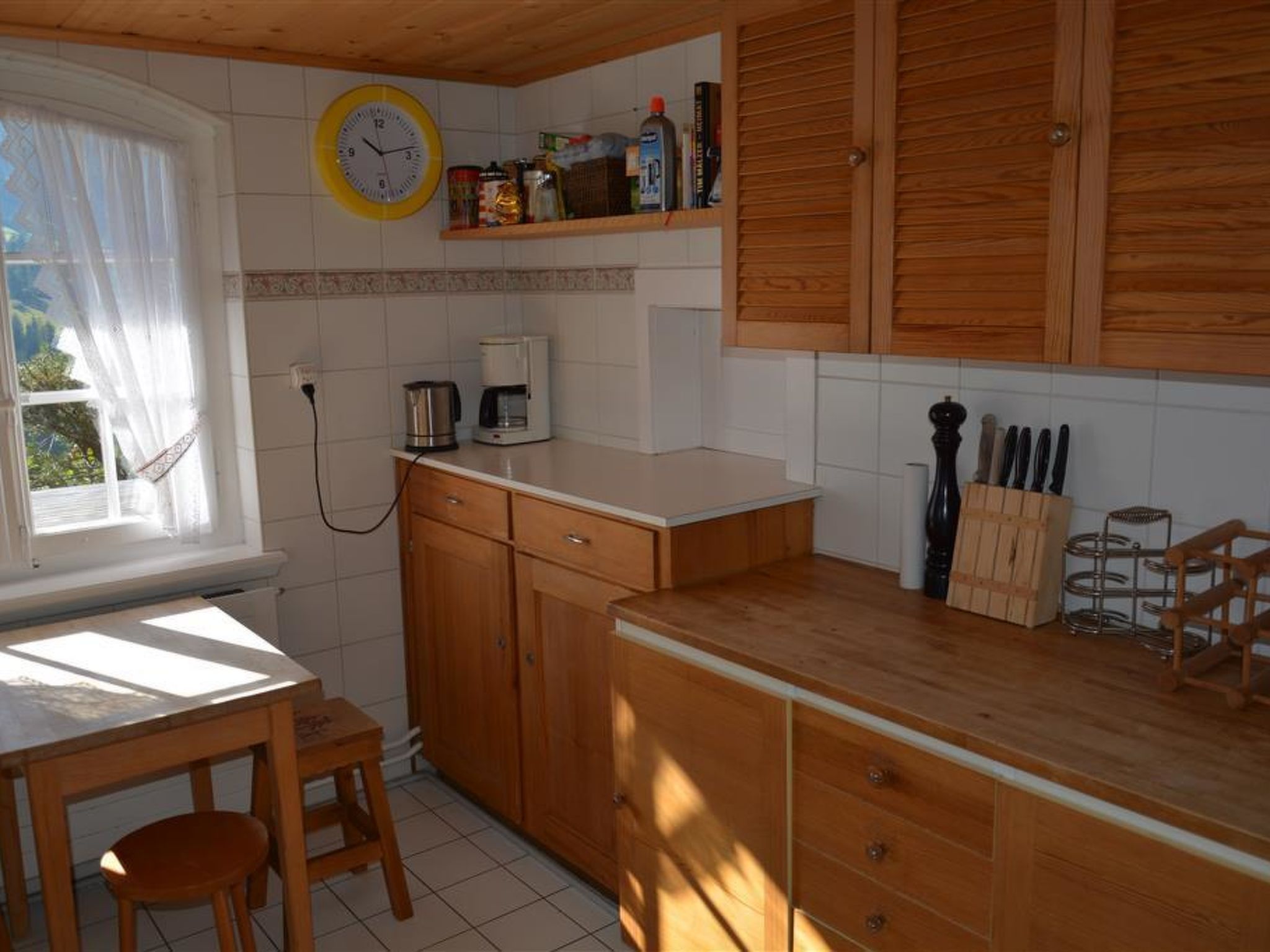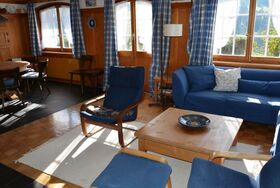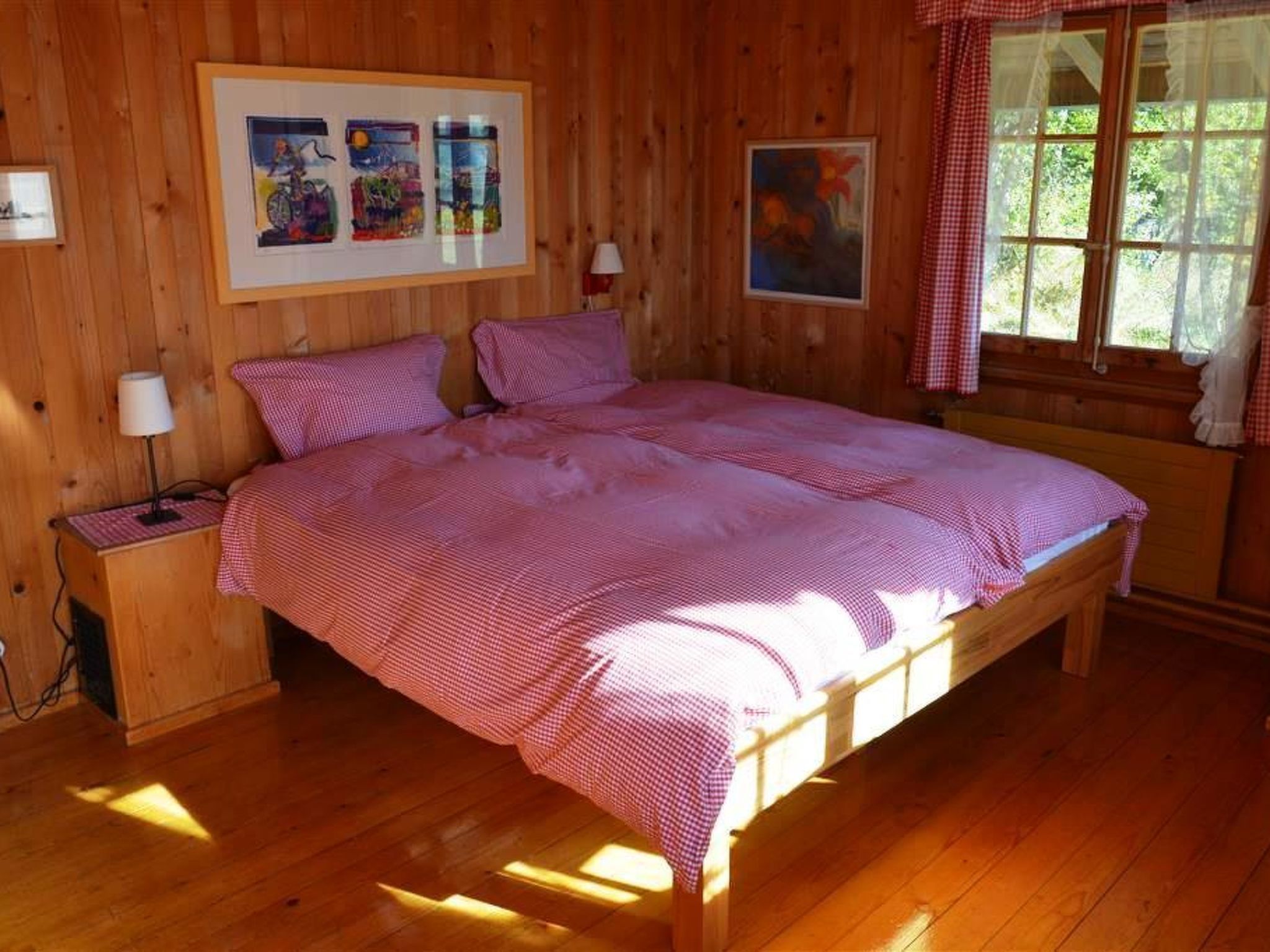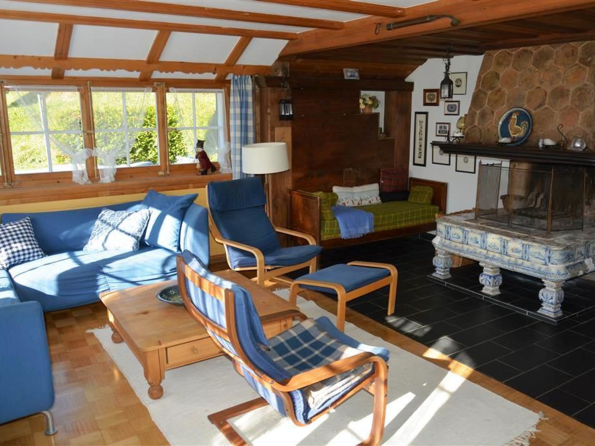 110 m2. Weitere Angaben des Anbieters: Alleinstehendes Chalet (110m2) an ruhiger, sehr sonniger Lage mit schöner Aussicht Richtung Hornberg. Zum Chalet führt eine Treppe mit ca. 240 Treppenstufen! Das Chalet wurde 1949 erbaut und ist in sehr gutem Zustand. Ein Aussenparkplatz in der Nähe steht zur Verfügung. Waschküche mit Waschmaschine und Wäschetrockner stehen zur Verfügung. 7-Zimmerchalet mit Küche/Esszimmer u. a. ausgestattet mit Fondue-, Raclette-Set und Filter-Kaffeemaschine. Wohnzimmer mit Radio, TV, Telefon. WiFi. 2 Badezimmer und separatem WC. 5 Schlafzimmer: 1 Grandlit, 1 Doppelzimmer, 2 Einzelzimmer, 1 niedriges 3-Bettzimmer im Dachgeschoss, geeignet für Kinder. Kinderbett (60x120cm) exkl. Bettwäsche vorhanden. Das Cheminée im Wohnzimmer darf von Gästen nicht benutzt werden. Aufteilung der Zimmer: Im EG = Wohnzimmer + Küche + 1 Dusche + 1 separates WC Im 1st. OG = 2x Doppelzimmer und 2x Einzelzimmer + 1 Bad mit WC Im 2ten. OG (Dachboden) = 3 Einzelbetten, die für Kinder gedacht sind INKLUSIVE: Elektrizität, Heizung, Wasser, 2 Parkplätze unten an der Hauptstrasse neben dem Abfallcontainer, Waschmaschine, Wäschetrockner, WiFi, Küchen-, Badezimmer- und Bettwäsche (Erstausstattung), Kinderbett (60x120cm, exkl. Bettwäsche) sowie Endreinigung und Kurtaxen. EXKLUSIVE: Filterkaffee. Telefongesprächstaxen. ***Kaution: CHF/EUR 500.00 bei Anreise direkt vor Ort bar beim Schlüsselhalter zu hinterlegen*** ***Haustiere willkommen*** Wichtig: In den meisten Ferienwohnungen ist nur ein Haustier (in der Regel ein Hund) erlaubt. Weitere bzw. andere Haustiere müssen vor der Buchung angefragt werden.