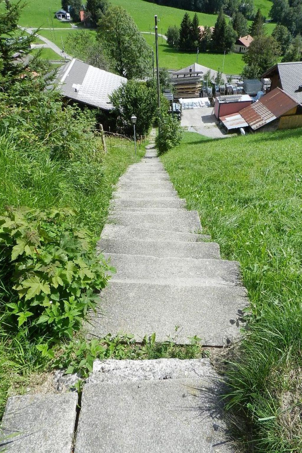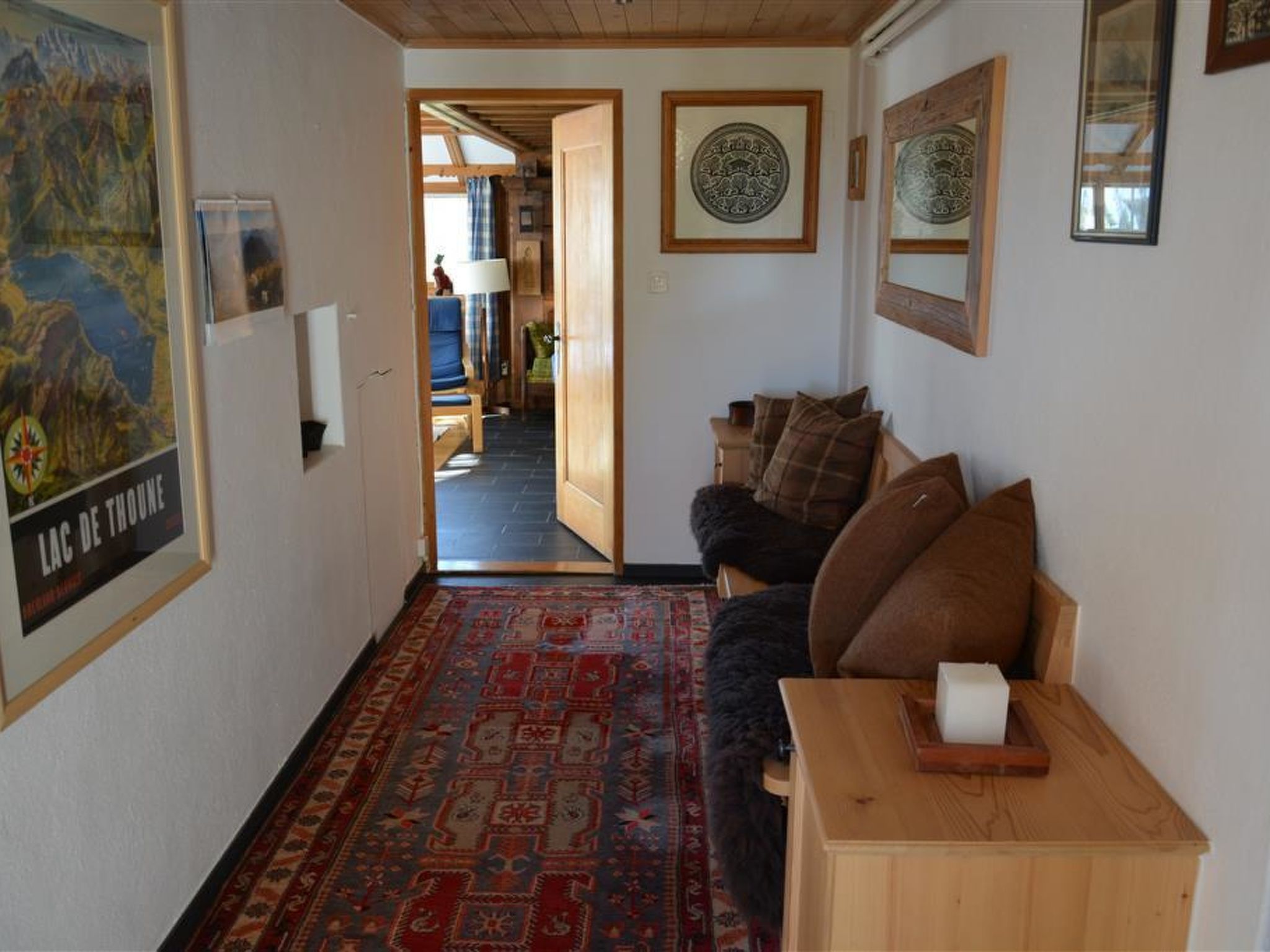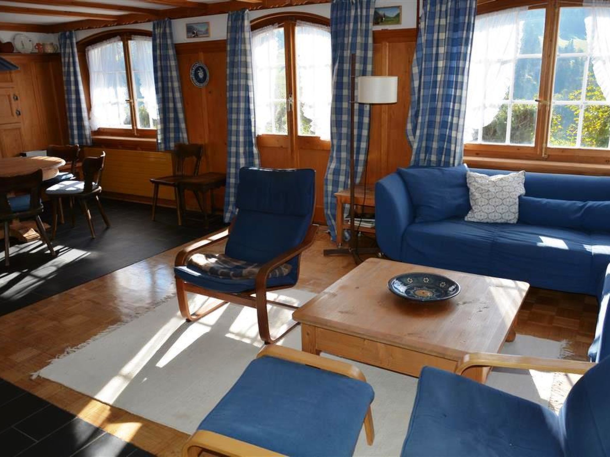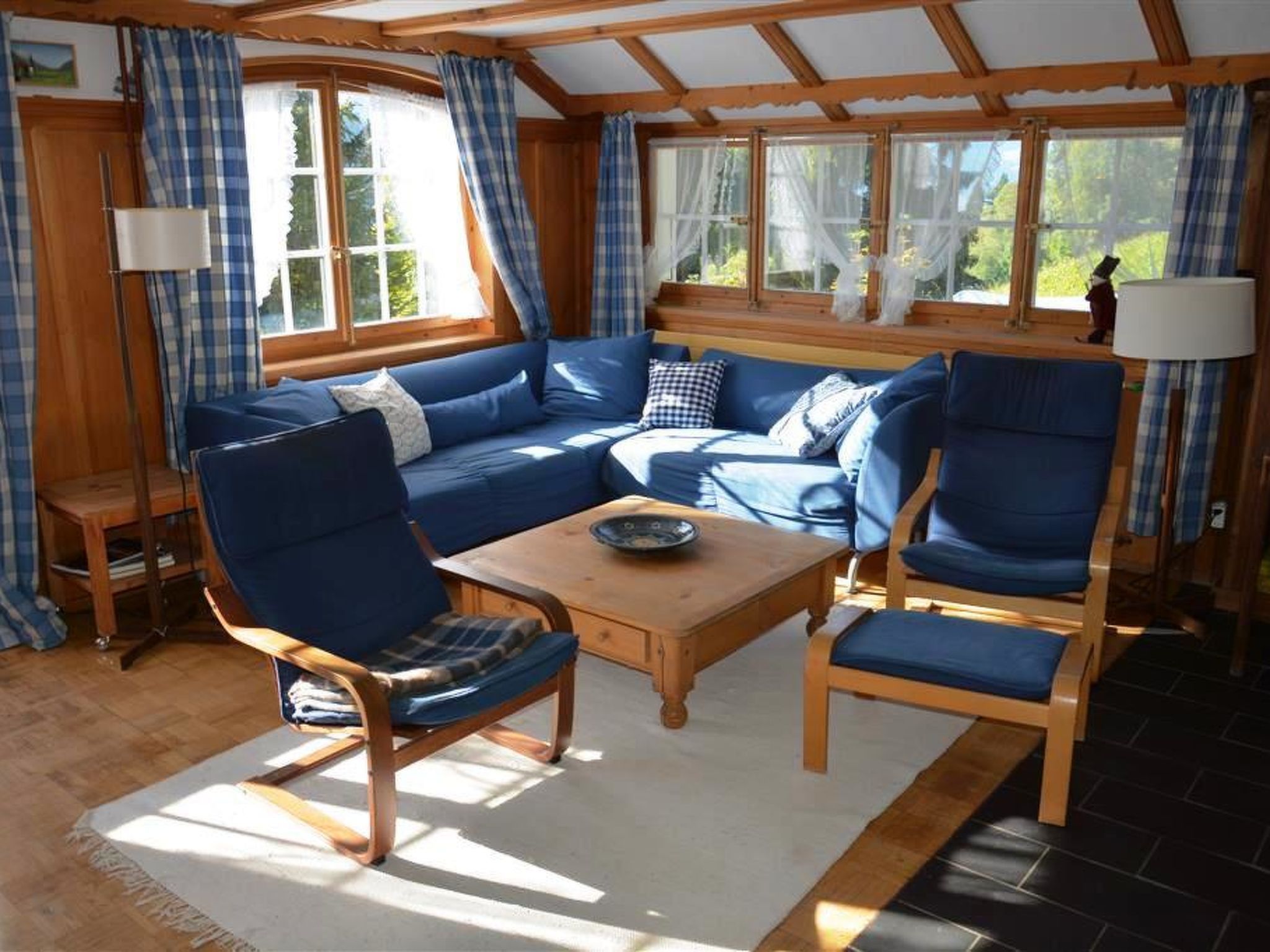 110 m2. Weitere Angaben des Anbieters: Alleinstehendes Chalet (110m2) an ruhiger, sehr sonniger Lage mit schöner Aussicht Richtung Hornberg. Zum Chalet führt eine Treppe mit ca. 240 Treppenstufen! Das Chalet wurde 1949 erbaut und ist in sehr gutem Zustand. Ein Aussenparkplatz in der Nähe steht zur Verfügung. Waschküche mit Waschmaschine und Wäschetrockner stehen zur Verfügung. 7-Zimmerchalet mit Küche/Esszimmer u. a. ausgestattet mit Fondue-, Raclette-Set und Filter-Kaffeemaschine. Wohnzimmer mit Radio, TV, Telefon. WiFi. 2 Badezimmer und separatem WC. 5 Schlafzimmer: 1 Grandlit, 1 Doppelzimmer, 2 Einzelzimmer, 1 niedriges 3-Bettzimmer im Dachgeschoss, geeignet für Kinder. Kinderbett (60x120cm) exkl. Bettwäsche vorhanden. Das Cheminée im Wohnzimmer darf von Gästen nicht benutzt werden. Aufteilung der Zimmer: Im EG = Wohnzimmer + Küche + 1 Dusche + 1 separates WC Im 1st. OG = 2x Doppelzimmer und 2x Einzelzimmer + 1 Bad mit WC Im 2ten. OG (Dachboden) = 3 Einzelbetten, die für Kinder gedacht sind INKLUSIVE: Elektrizität, Heizung, Wasser, 2 Parkplätze unten an der Hauptstrasse neben dem Abfallcontainer, Waschmaschine, Wäschetrockner, WiFi, Küchen-, Badezimmer- und Bettwäsche (Erstausstattung), Kinderbett (60x120cm, exkl. Bettwäsche) sowie Endreinigung und Kurtaxen. EXKLUSIVE: Filterkaffee. Telefongesprächstaxen. ***Kaution: CHF/EUR 500.00 bei Anreise direkt vor Ort bar beim Schlüsselhalter zu hinterlegen*** ***Haustiere willkommen*** Wichtig: In den meisten Ferienwohnungen ist nur ein Haustier (in der Regel ein Hund) erlaubt. Weitere bzw. andere Haustiere müssen vor der Buchung angefragt werden.
