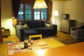 64 m2. Weitere Angaben des Anbieters: Schön eingerichtete 3-Zimmerwohnung im 1. Stock eines ruhig und idyllisch gelegenen Ferienchalets (64m2) mit 5 Wohnungen (Baujahr 1986). Grosser Balkon, Südseite. Grosser Skiraum sowie Waschküche mit Waschmaschine und Wäschetrockner stehen zur gemeinschaftlichen Benutzung zur Verfügung. Fernsicht auf Seehorn und Spillgerten. 1 Garage (Nr. 5) und 1 offener Parkplatz vorhanden. Ruhig gelegene 3-Zimmerwohnung. 2010 renoviert und neu möbliert. Wohnzimmer mit Sofa, TV, Radio mit MP3 Anschluss. WiFi. Offene Küche (u. a. ausgestattet mit Kapsel-Kaffeemaschine und Fondue-Set), Kühlschrank mit separatem Gefrierschrank. 1 Schlafzimmer mit Doppelbett (140x200cm), 1 Schlafzimmer mit Etagenbett (90x190cm) und 1 Einzelbett (90x200cm). Bad mit Badewanne/WC. Kinderbett (unterschiedliche Grössen) inkl. Bettwäsche und Kinderhochstuhl auf Anfrage beim Schlüsselhalter erhältlich. INKLUSIVE: Elektrizität, Heizung, Wasser, WiFi, Kinderhochstuhl, Küchen-, Badezimmer- und Bettwäsche (Erstausstattung) sowie Endreinigung und Kurtaxen. EXKLUSIVE: Cheminée-Holz muss selber mitgebracht werden. Kinderbett (unterschiedliche Grössen vorhanden) inkl. Bettwäsche ist auf Anfrage beim Schlüsselhalter à CHF 50.00 pro Aufenthalt. Waschmaschine à CHF 20.00 pro Waschgang und Wäschetrockner à CHF 30.00 pro Trockengang. Kaffee-Kapseln. ***Kaution: CHF/EUR 250.00 bei Anreise direkt vor Ort bar beim Schlüsselhalter zu hinterlegen*** ***Haustiere nicht erlaubt***.
