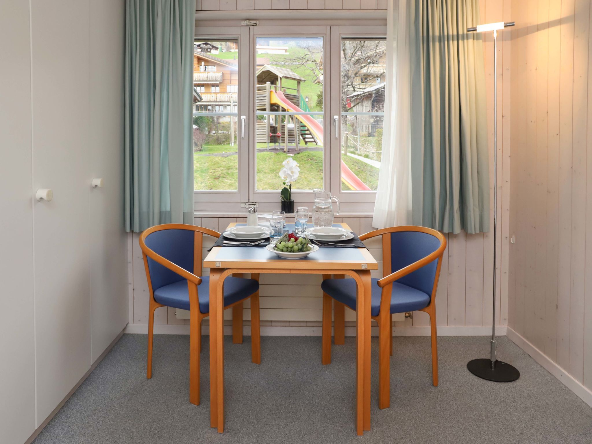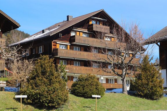 Schönried 8 km von Gstaad: Einfaches Appartementhaus auf 4 Stockwerken. Im Ort, zentrale, sonnige Lage. Im Hause: Zentralheizung, Waschmaschine, Wäschetrockner (zur Mitbenutzung, extra), Trockenraum. Einkaufsgeschäft, Restaurant 200 m, Bäckerei 50 m, Bushaltestelle Schönried, Schulhaus 100 m, Bahnstation Schönried 400 m. Golfplatz 4.5 km, Tennis 200 m, Wanderwege ab Haus 20 m, Luftseilbahn 100 m, Skisportanlagen 500 m, Skischule 200 m, Kinderspielplatz 50 m. Nahe gelegene Sehenswürdigkeiten: Gstaad, Chateau d'Oex, Golden Pass Panoramic, Maison Cailler. Bekannte Skigebiete sind gut erreichbar: Glacier 3000, Horneggli. Bekannte Seen in der Umgebung sind gut erreichbar: Lauenensee. Wandergebiete: Saanenland, Pays d'Enhaut. Bitte beachten: Hauptstrasse in der Nähe. Die Ferienresidenz besteht aus den 3- und 4-stöckigen Chalets Arlette, Monique und Suzanne.