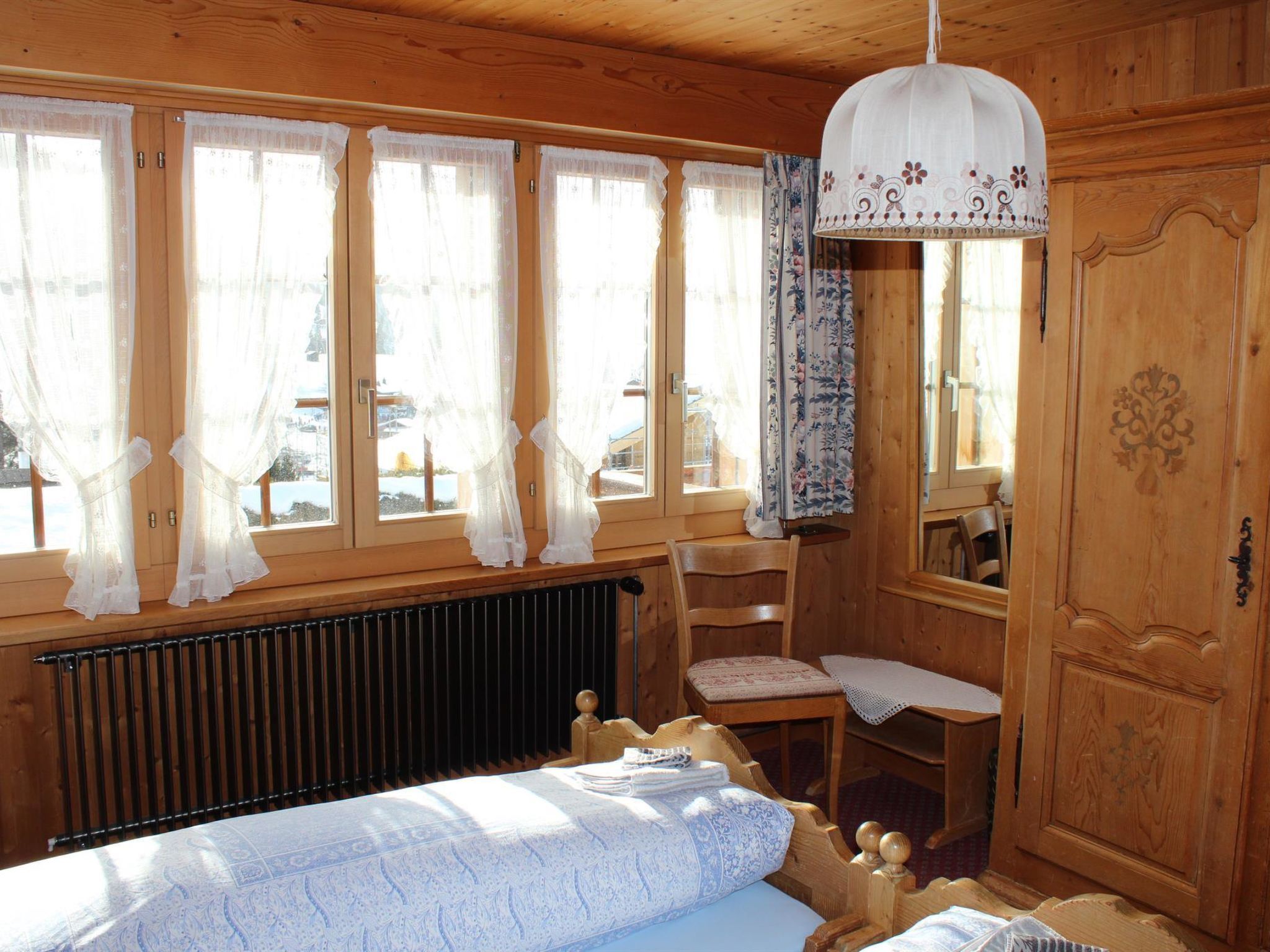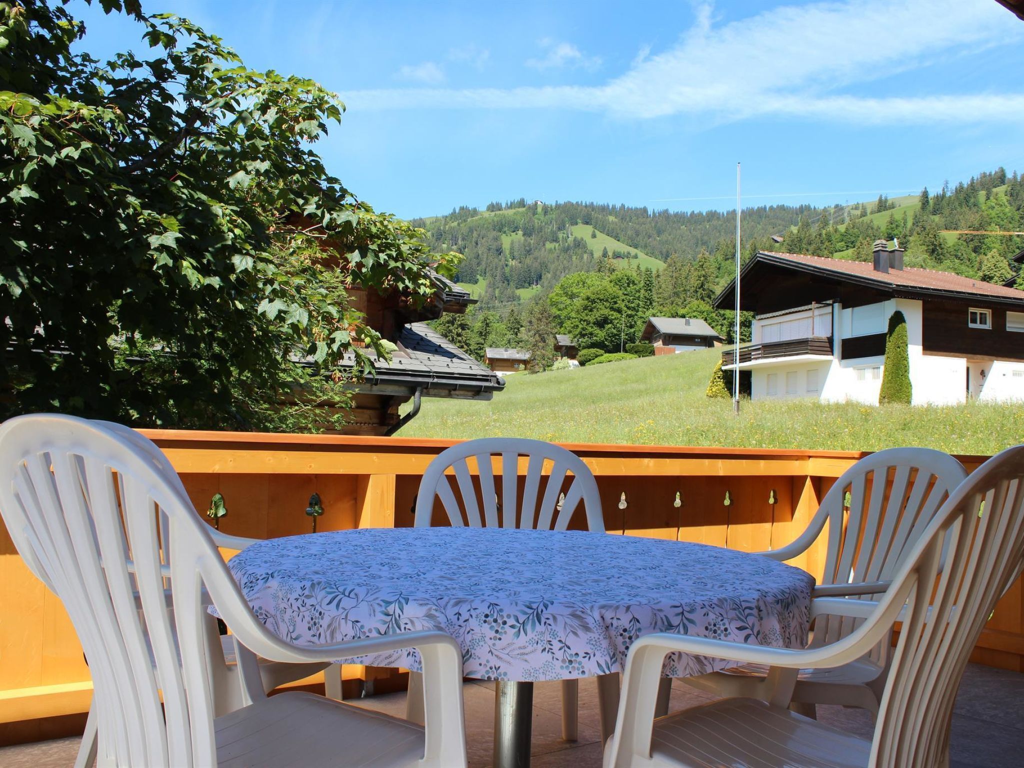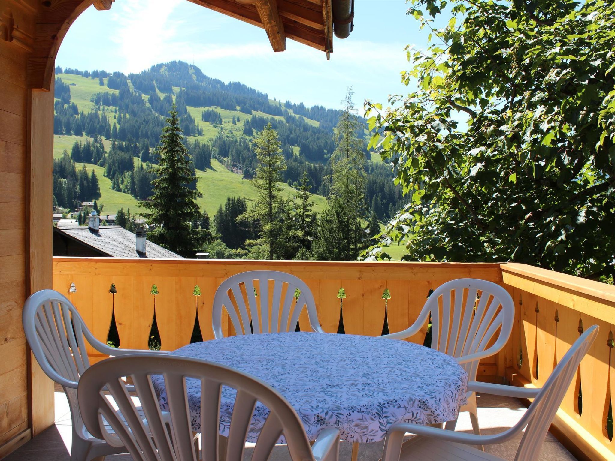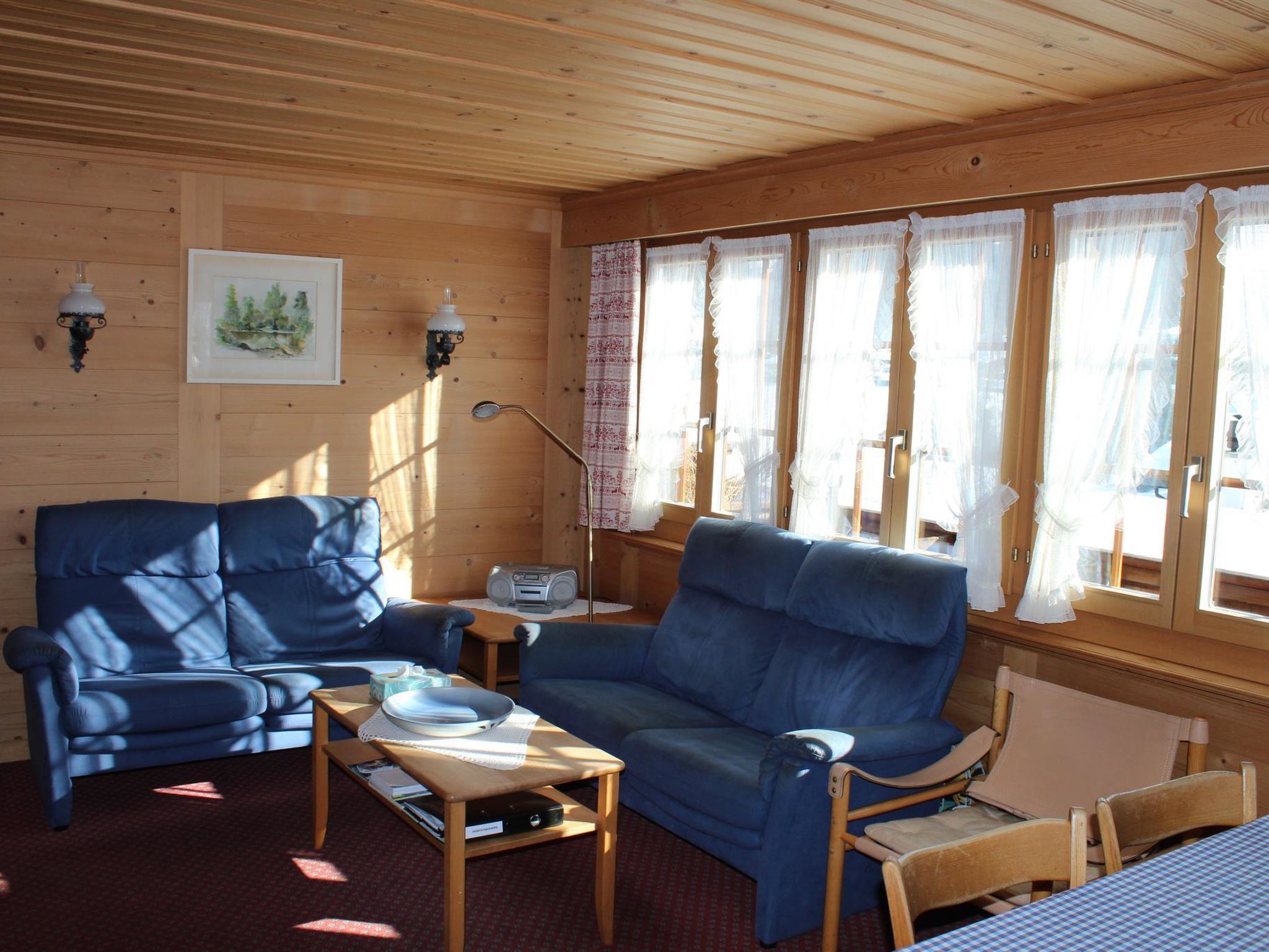 88 m2. Weitere Angaben des Anbieters: 5-Zimmer-Duplexwohnung, 88m2 (1./2. Stock) in einem renovierten Chalet mit Komfort und ruhiger Lage. Schön angelegter Garten lädt zum Spielen und Ruhen ein (mit Spielplatz). Grosser Balkon. Garage/Parkplatz. Ladestation für Elektroautos verfügbar (Abrechnung nach Verbrauch, Bezahlung an Schlüsselhalter bei Abreise). 1. Stock: 1 Wohn-/Esszimmer mit TV, Radio und Telefon. Küche u.a. ausgestattet mit Geschirrspüler, Fondue- und Raclette-Set. Waschmaschine und Wäschetrockner. 1 Schlafzimmer mit 2 Betten (90x190cm). Bad/WC. WiFi. 2. Stock: 1 Schlafzimmer mit 2 Betten (2x90x190cm). 1 Schlafzimmer mit 2 Betten (90x190cm). 1 Schlafzimmer mit 1 Bett (90x190cm). WC. Kinderbett (70x140cm) inkl. Bettwäsche und Kinderhochstuhl vorhanden. INKLUSIVE: Elektrizität, Heizung, Wasser, Garage, Parkplatz, WiFi, Waschmaschine, Trockner, Kinderbett (70x140cm) inkl. Bettwäsche, Kinderhochstuhl, Küchen-, Badezimmer- und Bettwäsche (Erstausstattung) sowie Endreinigung und Kurtaxen. EXKLUSIVE: Filterkaffee. Kapseln für Kaffeemaschine (Nespresso). Telefongesprächstaxen. Ladestation für Elektroautos. ***Haustiere nicht erlaubt***.