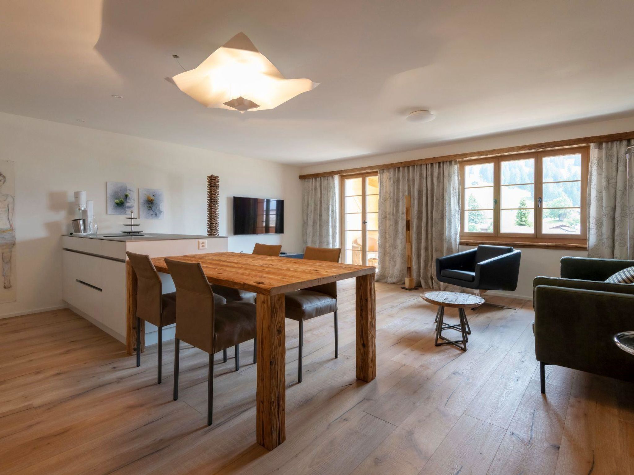 70 m2. Weitere Angaben des Anbieters: Komplett neue, geschmackvoll und komfortabel eingerichtete 2.5-Zimmerwohnung (70m2) im 1. Stock eines 2019 erbauten, mit Lift ausgestatteten und äusserst zentral gelegenen Mehrfamilienchalets. 1 möblierter Balkon (zugänglich via Wohn-/Esszimmer, Ausrichtung Süd/West) sowie 1 unmöblierter Balkon (zugänglich via Schlafzimmer, Ausrichtung Norden) gehören zur Wohnung. Im Untergeschoss befindet sich eine eigene Waschküche mit Waschmaschine, Wäschetrockner und Abstellraum. Ein Skiraum (mit Wachsstation) zur gemeinschaftlichen Benutzung und 1 reservierter Parkplatz in der Einstellhalle (Nr. 23) mit Lademöglichkeit für Elektrofahrzeuge stehen ebenfalls zur Verfügung. Die Wohnung liegt im Herzen von Schönried und eignet sich sowohl für Sommer- wie auch für Winterferien. In unmittelbarer Gehdistanz zur Wohnung befindet sich alles was man sich für einen unkomplizierten Ferienaufenthalt wünscht: Bahnhof, Molkerei, Metzgerei, Bäckerei mit Lebensmittelgeschäft, diverse Restaurants, zwei Sportgeschäfte sowie der Sessellift Horneggli. Die Wohnung Grace vereint rustikalen Charme mit modernstem Komfort. Wohn-/Esszimmer mit grossflächiger offener Küche (u.a. ausgestattet mit Induktionsherd, Backofen, Tellerwärmschublade, Kühlschrank, Gefrierschrank, Weinkühler, Geschirrspülmaschine, Kapsel-Kaffeemaschine (Nespresso) sowie Fondue- und Raclette-Set), Esstisch, Sofa und TV (Swisscom). 1 Schlafzimmer mit 1 Doppelbett (2x100x200cm) und direktem Zugang ins Badezimmer mit Dusche/WC. Zusätzlich 1 separates WC. Die ganze Wohnung verfügt über eine in allen Räumlichkeiten (inkl. Badezimmer) individuell regulierbare Bodenheizung. WiFi sowie Sonos Musiksystem (kabelloses Musikvergnügen via WiFi) in Wohn- und Schlafzimmer. INKLUSIVE: Elektrizität, Heizung, Wasser, 1 Parkplatz (Nr. 23) in der Einstellhalle, Waschmaschine, Wäschetrockner, WiFi, Küchen-, Badezimmer- und Bettwäsche (Erstausstattung) sowie Kurtaxen und Endreinigung. EXKLUSIVE: Kapseln für Kaffeemaschine (Nespresso) à CHF 00.50 pro Kapsel beim Vermieter erhältlich. ***Kaution: CHF/EUR 300.00 bei Anreise direkt vor Ort bar beim Schlüsselhalter zu hinterlegen*** ***Haustiere willkommen*** Wichtig: In den meisten Ferienwohnungen ist nur ein Haustier (in der Regel ein Hund) erlaubt. Weitere bzw. andere Haustiere müssen vor der Buchung angefragt werden.