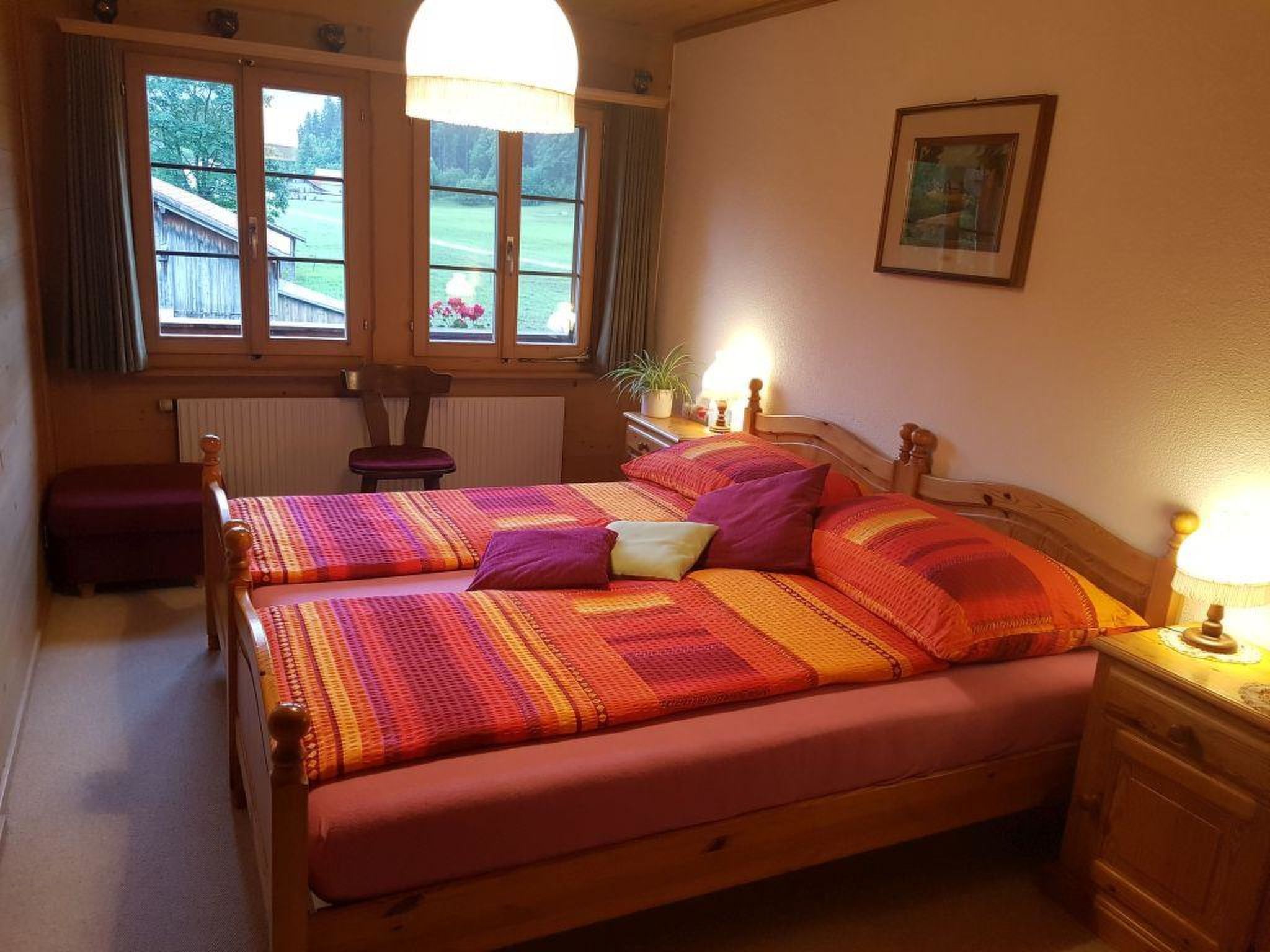 45 m2. Weitere Angaben des Anbieters: 2-Zimmerwohnung (45m2) im 2. Stock eines 4-Familienhauses (Baujahr 1986). Waschküche mit Waschmaschine stehen auf Anfrage zur gemeinschaftlichen Benutzung zur Verfügung. Ruhige Lage im Grünen. In der Nähe der Reithalle und dem Fluss Saane gelegen. 2-Zimmerwohnung (50 m2). 1 Schlafzimmer mit Doppelbett (2x90x200cm), Wohn-/Esszimmer, Küche (u.a. ausgestattet mit Kapsel-Kaffeemaschine (Royal), Fondue- und Raclette-Set), Dusche/WC, TV, Radio und WiFi. Kinderbett (60x120cm) inkl. Bettwäsche und Kinderhochstuhl vorhanden. INKLUSIVE: Elektrizität, Heizung, Wasser, Parkplatz, WiFi, Kinderhochstuhl, Bett-, Küchen- und Badezimmerwäsche (Erstausstattung) sowie Endreinigung und Kurtaxen. EXKLUSIVE: Waschmaschine auf Anfrage. Kinderbett (60x120cm) inkl. Bettwäsche à CHF 20.00 pro Aufenthalt. ***Rauchen auf dem Balkon erlaubt*** ***Haustiere nicht erlaubt***.