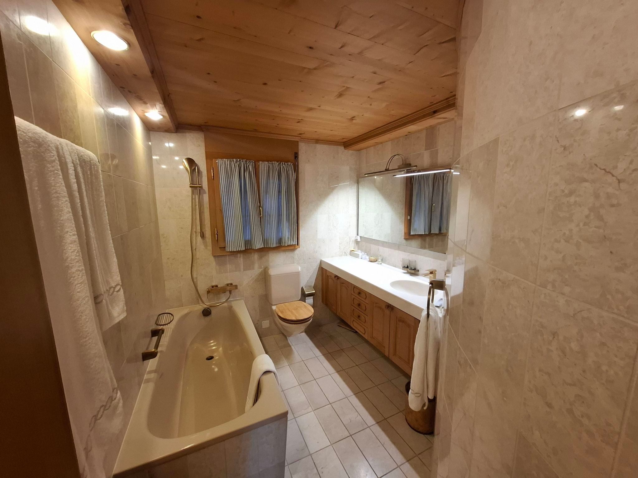 95 m2. Weitere Angaben des Anbieters: Sehr zentral gelegene 4.5-Zimmerwohnung (95m2) im 1. Stock eines Mehrfamilienchalets. Grosser Balkon mit direkter Sicht auf Tennisplatz/Eisbahn/Beach-Volleyballplatz. Wunderbare Aussicht auf Gstaad und die Bergwelt. Waschküche mit Waschmaschine und Wäschetrockner stehen zur gemeinschaftlichen Benutzung zur Verfügung. 1 Einstellhallenplatz in der Tiefgarage. Helles Wohn-/Esszimmer mit offener Küche (u.a. ausgestattet mit Glaskeramikherd und Dampfabzug, Kühlschrank mit Gefrierfach, Backofen, Mikrowelle, Geschirrspüler, Wasserkocher, Kapsel-Kaffeemaschine (Nespresso), Raclette- und Fondue-Set), Esstisch, Sitzgruppe, TV, Radio und DVD-Player. 1 Schlafzimmer mit 2 Einzelbetten (je 90x200cm). 1 Schlafzimmer mit 2 zusammengeschobenen Einzelbetten (je 90x200cm). 1 Schlafzimmer mit 1 Etagenbett (90x200cm). 1 Badezimmer mit Badewanne/WC. 1 Badezimmer mit Dusche/WC. Abstellraum (in Garage). WiFi. INKLUSIVE: Elektrizität, Heizung, Wasser, Garage (1 Parkplatz Nr. 3), WiFi, Waschmaschine, Wäschetrockner, Küchen-, Badezimmer- und Bettwäsche (Erstausstattung) sowie Endreinigung und Kurtaxen. EXKLUSIVE: Kapseln für Kaffeemaschine (Nespresso). Spezialpreis bei Langzeitmiete (Preise auf Anfrage). ***Haustiere willkommen*** Wichtig: In den meisten Ferienwohnungen ist nur ein Haustier (in der Regel ein Hund) erlaubt. Weitere bzw. andere Haustiere müssen vor der Buchung angefragt werden. ***Kaution: CHF/EUR 300.00 bei Anreise direkt vor Ort bar beim Schlüsselhalter zu bezahlen***.