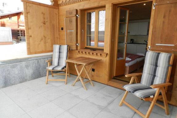 16 m2. Weitere Angaben des Anbieters: Gemütliches 2-Bett Studio im 1. Stock, Neubau 2012. Idealer Ausgangspunkt zum Wandern. 1 offener Parkplatz steht zur Verfügung. Waschmaschine und Wäschetrockner stehen im Untergeschoss zur Verfügung. Studio mit eigenem Badezimmer (Dusche/WC) und Kochnische sowie Doppelbett (2x90x200cm). Ideal für 2 Personen. In wenigen Schritten gelangt man auf die grosszügige Dachterrasse zur gemeinsamen Benutzung. Gerade richtig zum Verweilen und Ausruhen. Kinderbett und Kinderhochstuhl auf Anfrage vorhanden. INKLUSIVE: Elektrizität, Heizung, Wasser, Parkplatz, WiFi, Küchen-, Badezimmer- und Bettwäsche (Erstausstattung), Filterkaffee sowie Endreinigung und Kurtaxen. EXKLUSIVE: Waschmaschine à CHF 8.00 pro Waschgang, Wäschetrockner à CHF 6.00 pro Wäsche. ***Haustiere nicht erlaubt***.