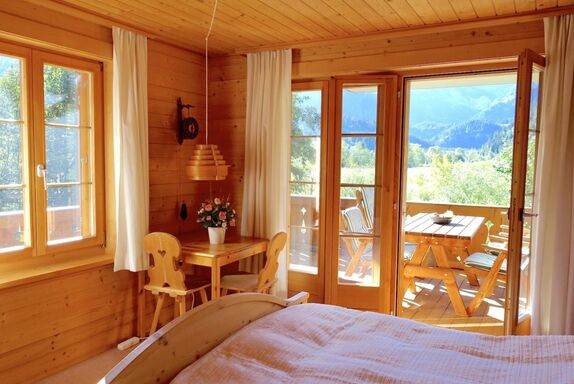 100 m2. Weitere Angaben des Anbieters: Charmante 4-Zimmerwohnung (100m2) in einem Chalet mit drei Wohnungen in Lauenen bei Gstaad. Wunderschöne, unverbaute Sicht auf die umliegende Bergwelt, direkt angrenzend an Naturschutzgebiet. Herrliche Wanderung zum nahegelegenen Lauenensee möglich. Ruhige Lage, in unmittelbarer Nähe der Wanderwege, des Skilifts, der Langlaufloipen, sowie in Fussdistanz zum Dorfzentrum. Grosser, sonniger Balkon mit direktem Zugang zum eigenen Gartensitzplatz mit Gartenmöbeln und Grill. Einzelgarage und mehrere Parkplätze vorhanden. Waschküche mit Waschmaschine und Wäschetrockner stehen im Untergeschoss zur gemeinschaftlichen Benutzung zur Verfügung. Geschmackvoll eingerichtetes Wohnzimmer mit Sofaecke, Cheminée und direktem Zugang zum Balkon. TV (Flachbildschirm), Radio und WiFi. Wohnküche mit grossem Tisch, Backofen, Kochherd, Kühlschrank mit Gefrierfach, Kapsel-Kaffeemaschine (Nespresso), Toaster, Wasserkocher, Tee-Set, Fondue-Chinoise-, Käsefondue- und Raclette-Set. 1 Schlafzimmer mit 1 Doppelbett (160x190cm) inklusive direktem Zugang zum Balkon. 1 Schlafzimmer mit 1 Doppelbett (160x190cm), 1 Schlafzimmer mit 2 Einzelbetten (2x90x190cm). Diese Betten können zu einem Doppelbett zusammengeschoben werden. Badezimmer mit WC und Badewanne. Badezimmer mit Dusche und WC. Diverse Bücher und Gesellschaftsspiele zur freien Benützung. INKLUSIVE: Elektrizität, Heizung, Wasser, Einzelgarage, Parkplatz, Cheminée-Holz, Waschmaschine, Wäschetrockner, WiFi, Küchen-, Badezimmer- und Bettwäsche (Erstausstattung), Endreinigung sowie Kurtaxen. EXKLUSIVE: Kapseln für Nespresso Kaffeemaschine (einige werden vom Vermieter zur Verfügung gestellt). ***Haustiere willkommen*** Wichtig: In den meisten Ferienwohnungen ist nur ein Haustier (in der Regel ein Hund) erlaubt. Weitere bzw. andere Haustiere müssen vor der Buchung angefragt werden.