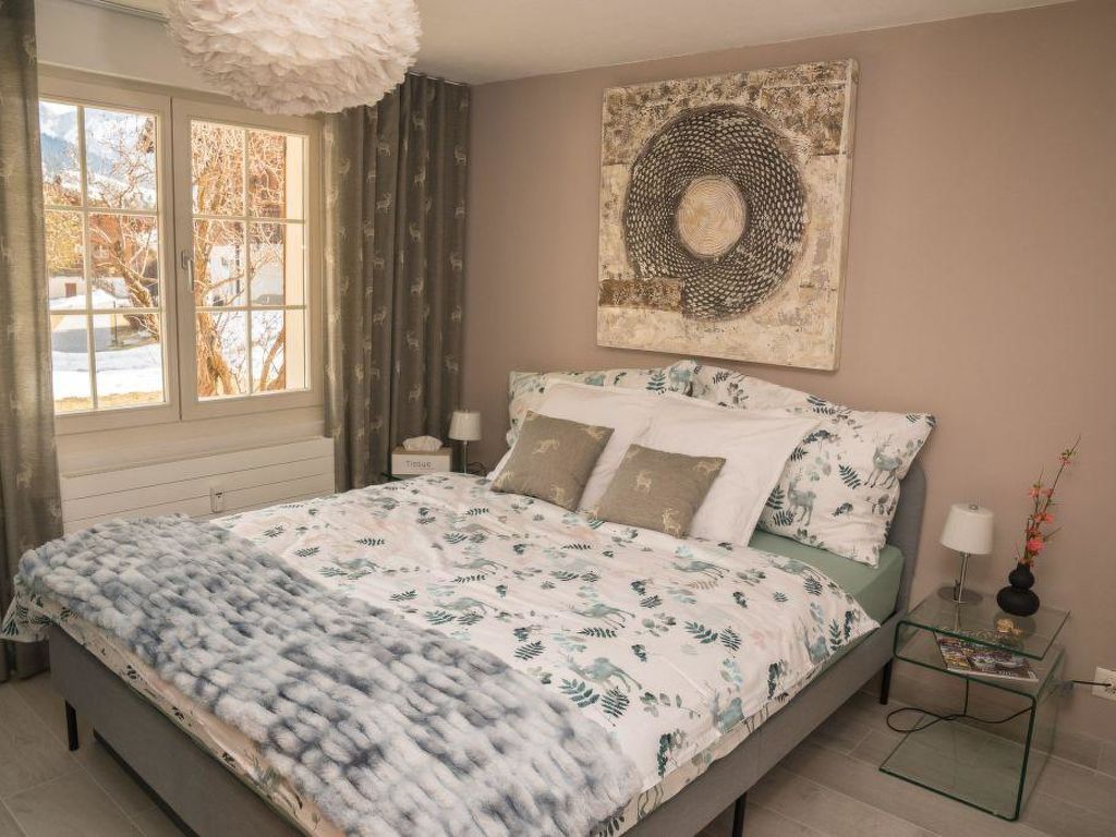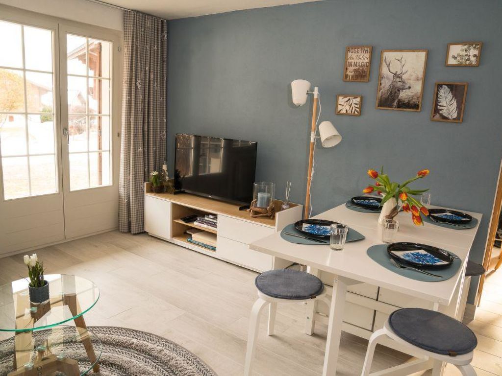 55 m2. Weitere Angaben des Anbieters: 3.5-Zimmerwohnung (55m2) im Erdgeschoss eines Chalets in Feutersoey, in der Nähe von Gstaad. Ruhige und sonnige Lage mit grossartiger Aussicht auf die Berge des Wildhorn-Massivs, welche Sie direkt von der Terrasse aus geniessen können. In 2 Gehminuten erreichen Sie die Bushaltestelle, den Dorfladen, sowie einen Spielplatz auf dem Schulhausareal. Der Einstieg in die Langlaufloipe ist ebenfalls nur ca. 100m entfernt. Eine Waschmaschine und Wäschetrockner stehen im Haus zur gemeinschaftlichen Benutzung zur Verfügung. Dem Mieter steht ein reservierter Platz (Nr. 1) in der Tiefgarage zur Verfügung. Stilvoll eingerichtete und gepflegte 3.5 Zimmerwohnung im Erdgeschoss. Voll ausgestattete Küche inklusive Kinderhochstuhl. Eine Kapsel-Kaffeemaschine (Nespresso), Fondue-Set, Raclette-Set und eine Mikrowelle stehen zur Verfügung. Das erste Schlafzimmer hat ein Queen-Bett (160x200cm), zwei Nachttische mit Lampen und einen grossen Schiebetürenschrank. Das zweite Schlafzimmer ist praktisch eingerichtet für eine optimale Platznutzung mit einem 2-in 1 Bett (2x90x200cm), bei welchem das eine Bett unter das andere geschoben werden kann. Dies bietet Flexibilität, um ein Babybett (69x127cm) hineinzustellen, welches auf Anfrage inkl. Bettwäsche verfügbar ist. Das Badezimmer ist mit einer geräumigen Dusche ausgestattet. WiFi und ein Smart-TV stehen zur Verfügung. INKLUSIVE: Elektrizität, Heizung, Wasser, 1 Einstellhallenplatz (Nr. 1), WiFi, Kinderbett (69x127cm), inkl. Bettwäsche, Kinderhochstuhl, Küchen-, Badezimmer- und Bettwäsche (Erstausstattung) sowie Kurtaxen und Endreinigung. EXKLUSIVE: Waschmittel und Münzen für Waschmaschine und Wäschetrockner. Kapseln für Kaffeemaschine (Nespresso). ***Haustiere nicht erlaubt***.