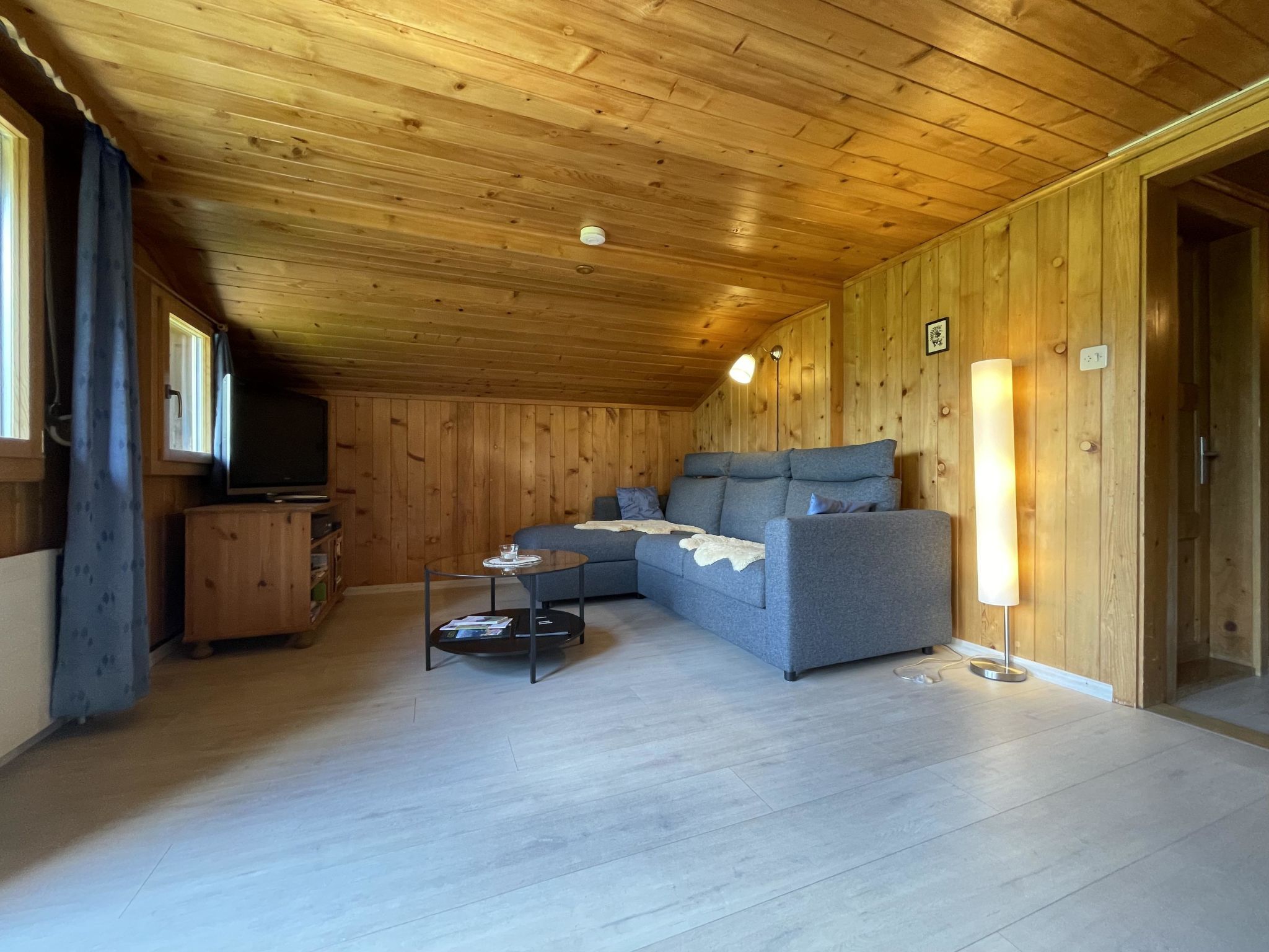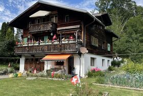 80 m2. Weitere Angaben des Anbieters: Gemütliche 4 1/2-Zimmer-Dachwohnung mit teilweiser Dachschräge (80m2) in einem Zweifamilien-Chalet. Sehr ruhig und sonnig gelegen mit beeindruckender Aussicht auf die Bergwelt und das Dorf. Idealer Ausgangspunkt zum Wandern. Einkaufsmöglichkeit im Dorf vorhanden. Balkon und Garten mit grossem Umschwung. Ein Parkplatz steht zur Verfügung, ein weiterer auf Anfrage. Gemütliche 4 1/2-Zimmer-Dachwohnung mit teilweiser Dachschräge. Raumhöhe 2.00 Meter ausserhalb Dachschräge. 1 Schlafzimmer mit Doppelbett (2x90x200cm) und Kleiderschrank. 1 Schlafzimmer mit zwei Einzelbetten (90x200cm), offene Garderobe und Kommode. 1 kleines Zimmer mit 1 Bett (90x190cm) und Kommode. Bad/WC. Separate Küche u.a. ausgestattet mit Backofen, Geschirrspüler, Kapsel-Kaffeemaschine (Delizio), Fondue- und Raclette-Set. Wohnzimmer mit Esstisch, Sofa, TV/Radio und DVD Blu-ray. WiFi. INKLUSIVE: Wasser, Elektrizität, Heizung, Parkplatz, WiFi, Bett-, Badezimmer- und Küchenwäsche (Erstausstattung) sowie Endreinigung und Kurtaxen. EXKLUSIVE: Kapseln für Kaffeemaschine (Delizio). ***Haustiere nicht erlaubt***.