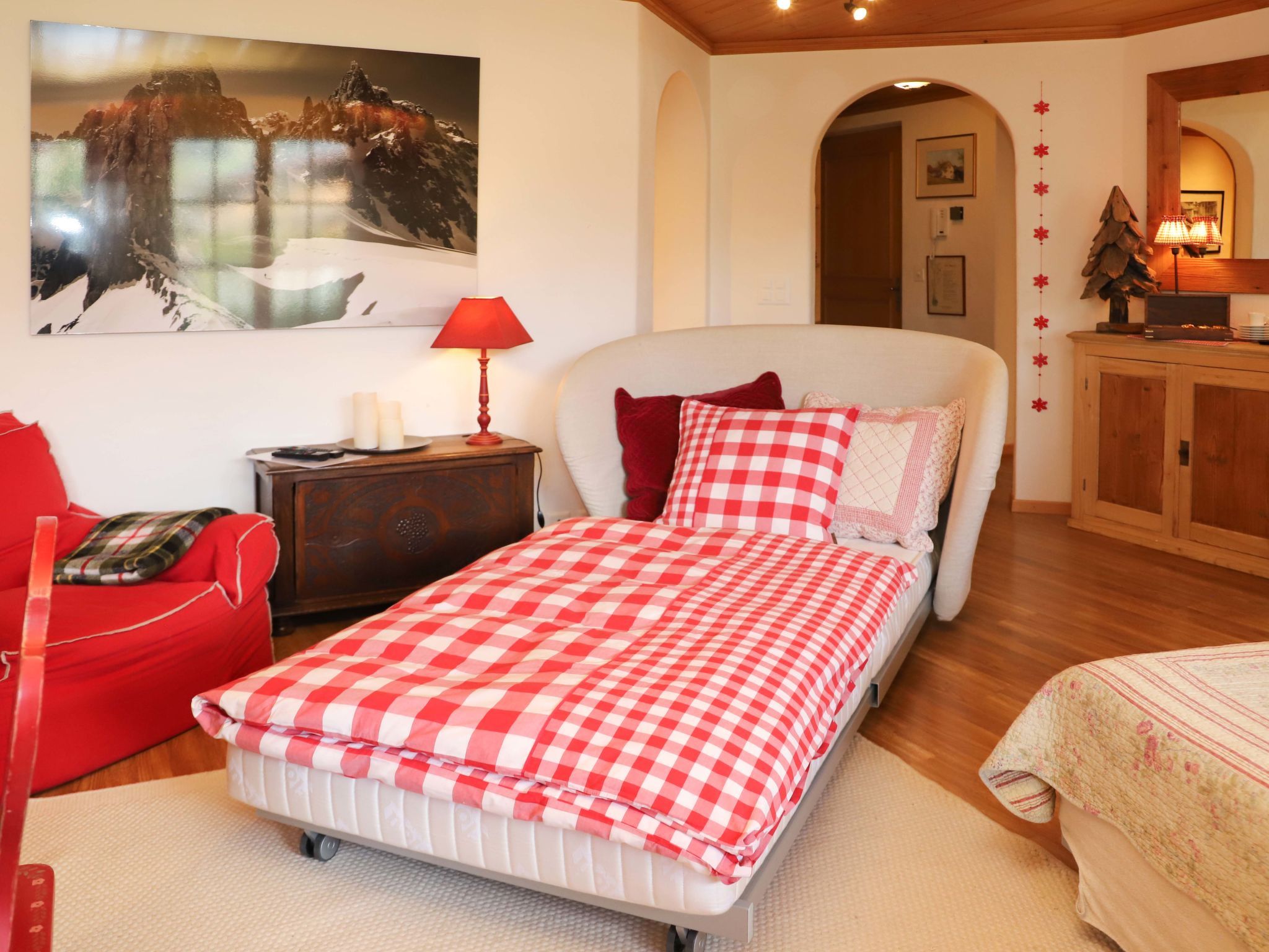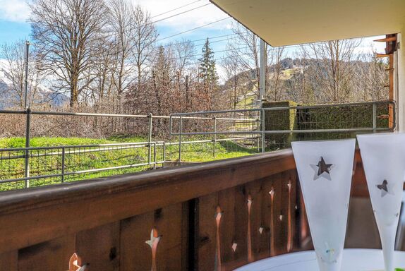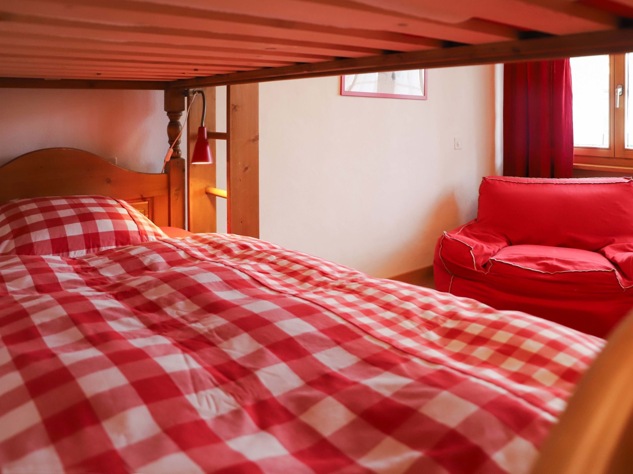 Marie-Soleil Est, 2-Zimmer-Wohnung 40 m2, im Erdgeschoss. Geräumig, komfortabel und gemütlich eingerichtet: offenes Wohn-/Esszimmer mit 2 Diwanbetten, Esstisch und Kabel-TV (Flachbildschirm), elektrischem Rollladen. Ausgang zum Balkon. 1 Zimmer mit 2 x 2 Etagenbetten (90 cm, Länge 190 cm). Offene Küche (Backofen, Geschirrspüler, 4 Glaskeramikplatten, Wasserkocher, elektrische Kaffeemaschine, Fondue Set (Käse)). Dusche/WC. Fussbodenheizung. Kleiner Balkon, Ostlage. Balkonmöbel. Schöne Sicht auf die Landschaft. Zur Verfügung: Haartrockner. Internet (Wireless LAN, gratis). Parkplatz (überdacht, 1 Auto). Bitte beachten: Nichtraucher-Unterkunft.