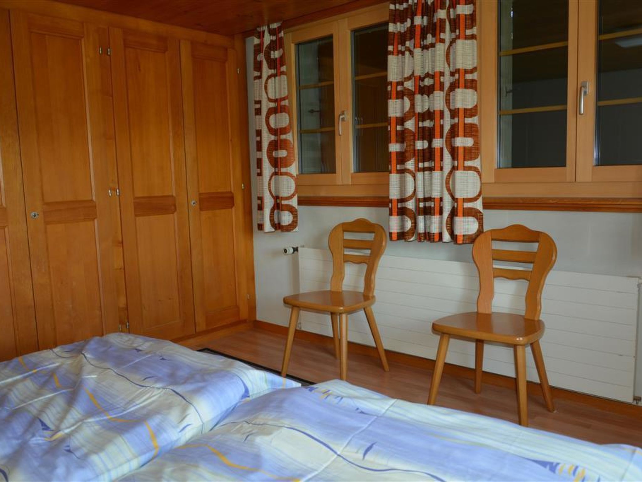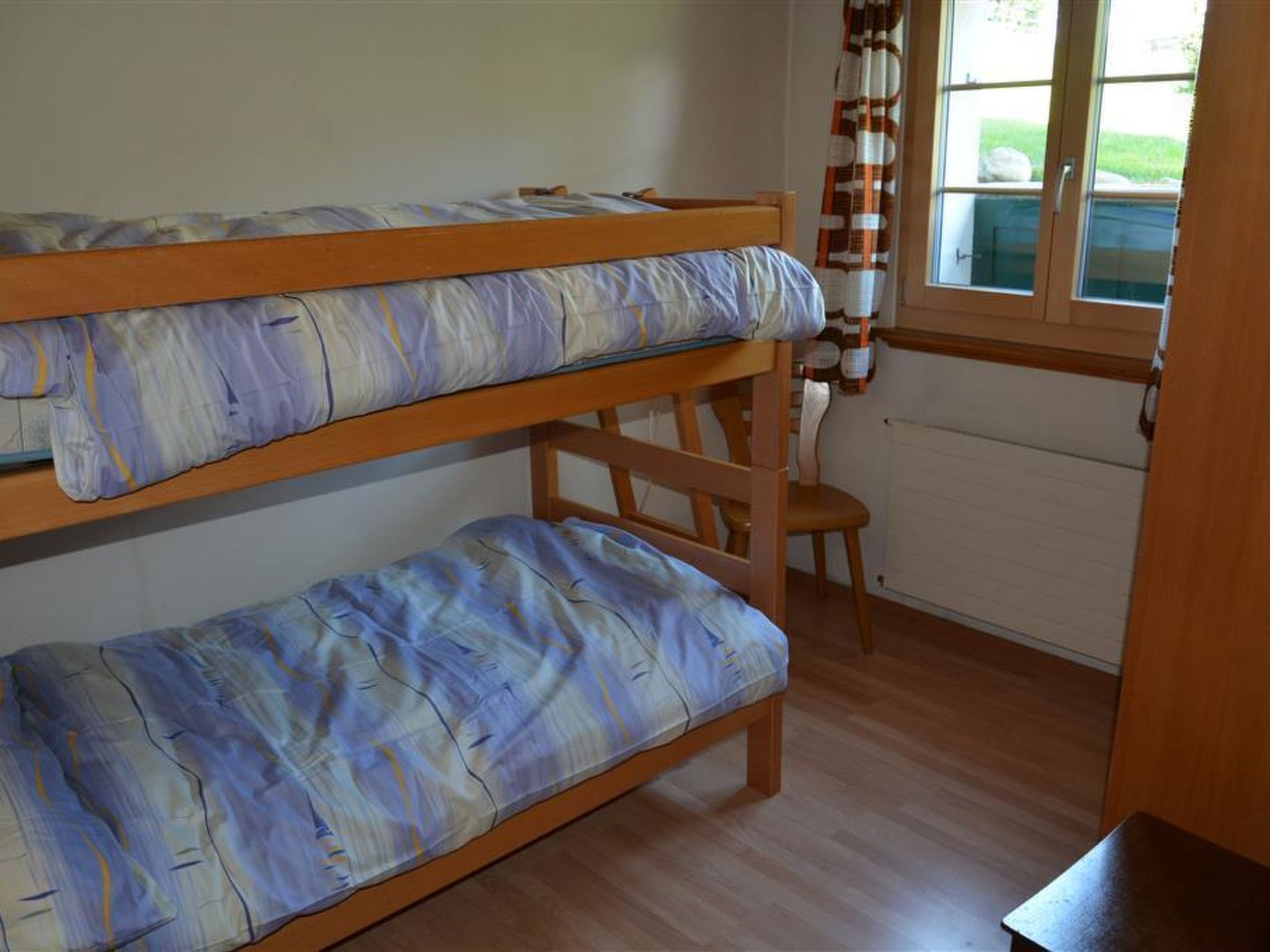 56 m2. Weitere Angaben des Anbieters: 3-Zimmerwohnung (56m2) im Erdgeschoss eines 3-Familienhauses. Garten mit Liegewiese und möbliertem Gartensitzplatz. Ruhige und sonnige Lage mit herrlicher Aussicht aufs Saanenland. Parkplatz vorhanden. Zu Ihrer Sicherheit und zum Schutz des Grundstücks möchten wir Sie darauf hinweisen, dass sich Überwachungskameras an den Außenbereichen des Hauses befinden. Wohnzimmer mit ausziehbarem Sofa, Satelliten-TV. Wohnküche u. a. ausgestattet mit Esstisch, Filterkaffeemaschine und Fondue-Set. 1 Doppelschlafzimmer (2x90x190cm). 1 Schlafzimmer mit 1 Etagenbett (2x90x190cm). 1 Badezimmer mit Bad/WC. Kinderbett (70x140cm) inkl. Bettwäsche vorhanden. INKLUSIVE: Elektrizität, Heizung, Wasser, Parkplatz, Kinderbett (70x140cm) inkl. Bettwäsche, Küchen-, Badezimmer- und Bettwäsche (Erstausstattung) sowie Endreinigung und Kurtaxen. EXKLUSIVE: Filterkaffee. Telefongesprächstaxen. ***Haustiere nicht erlaubt***.
