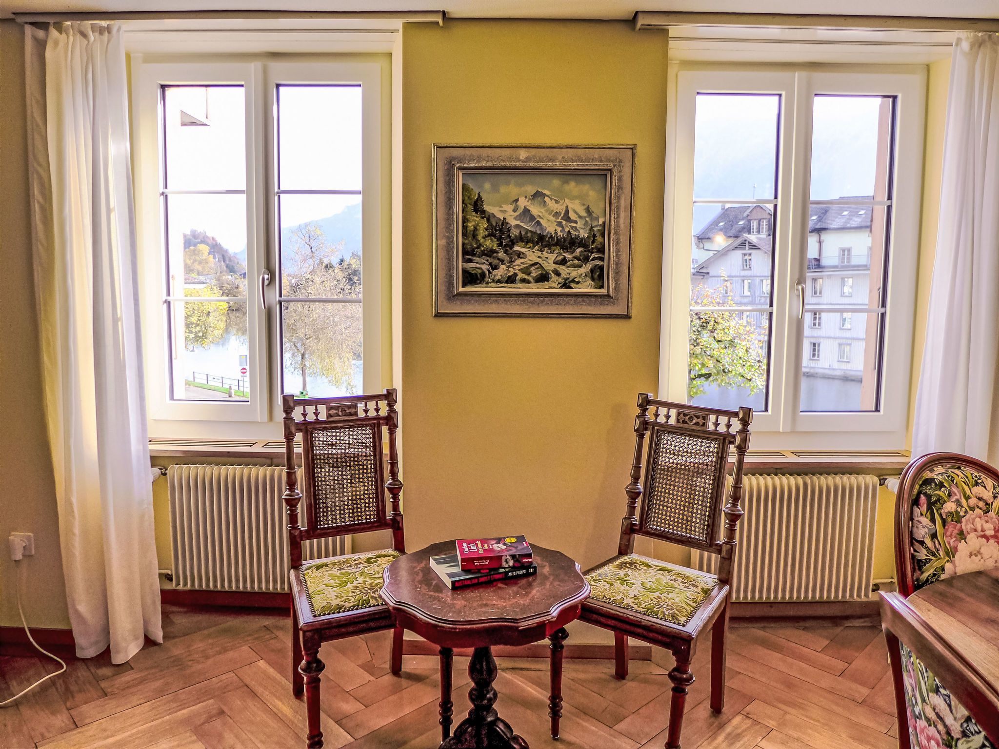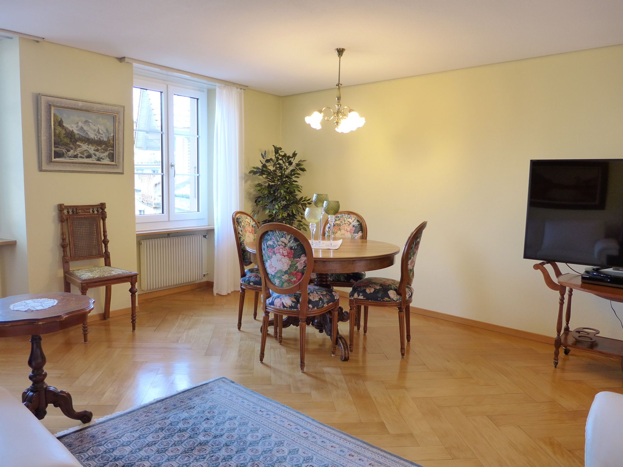 Historisches Mehrfamilienhaus Bieri-Haus, auf 3 Stockwerken. Im Ortszentrum von Unterseen, 500 m vom Zentrum von Interlaken, belebte, sonnige Lage, im Herzen der Stadt. Im Hause: Zentralheizung. Einkaufsgeschäft 500 m, Supermarkt 350 m, Restaurant 100 m, Bäckerei 100 m, Bushaltestelle 50 m, Bahnstation Interlaken West 700 m, Freibad 800 m, Hallenbad. Golfplatz (18 Loch) 3 km, Tennis 1.1 km, Tennishalle 750 m, Minigolf 800 m, Wanderwege ab Haus 50 m, Skisportanlagen 15 km, Kinderspielplatz 150 m. Nahe gelegene Sehenswürdigkeiten: Jungfraujoch, Freilichtmuseum Ballenberg, Beatushöhlen. Bekannte Skigebiete sind gut erreichbar: Jungfrau Ski Region. Bekannte Seen in der Umgebung sind gut erreichbar: Thunersee, Brienzersee.