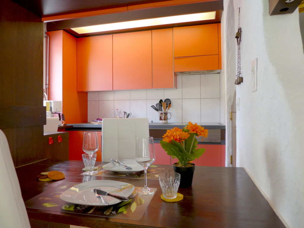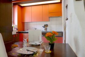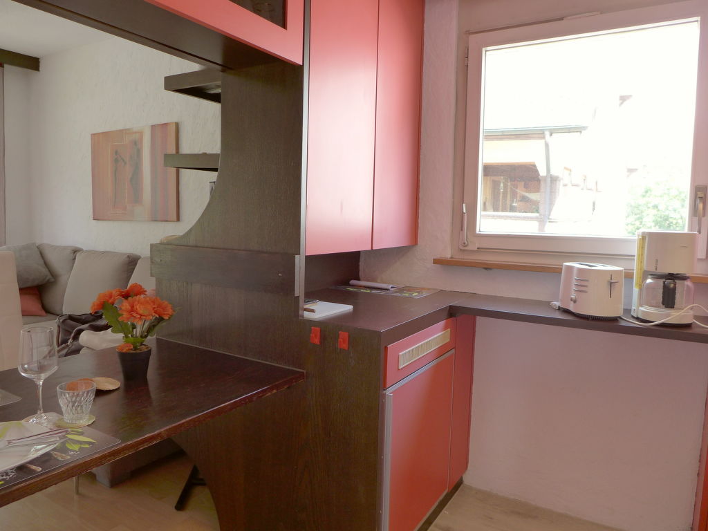 Harder, 2-Zimmer-Wohnung 46 m2 im 2. Stock. Einfach und gemütlich eingerichtet: Wohn-/Esszimmer mit Esstisch, Kabel-TV, Radio und CD. Ausgang zum Balkon. 1 Zimmer mit 1 Doppelbett (160 cm). Offene Küche (3 Kochplatten, Mikrowelle, Tiefkühler, elektrische Kaffeemaschine). Bad/Dusche/WC. Kleiner Balkon 4 m2, Nordlage und Westlage. Balkonmöbel. Seitliche Sicht auf die Landschaft und die Ortschaft. Zur Verfügung: Internet (WLAN, gratis). Parkplatz Nr. 16 (extra, überdacht). Bitte beachten: Nichtraucher-Unterkunft. Maximal 1 Haustier/Hund erlaubt.