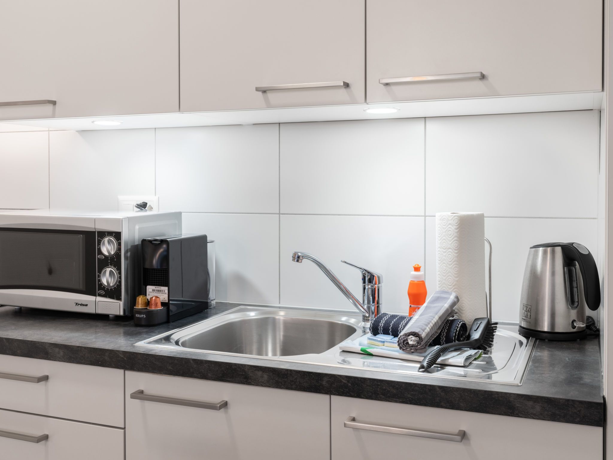 Victoria View, 2-Zimmer-Wohnung 40 m2 im 3. Stock. Objekt geeignet für 2 Erwachsene. Hell, vollständig renoviert im Jahre 2015, geschmackvoll eingerichtet: Wohn-/Esszimmer 20 m2 mit Esstisch, Kabel-TV, Internationale TV-Sender, Flachbildschirm, Radio und Klimaanlage. Ausgang zum Balkon. 1 Doppelzimmer 12 m2 mit 1 franz. Bett (1 x 160 cm, Länge 200 cm), Klimaanlage. Offene Küche (Backofen, Geschirrspüler, 4 Glaskeramikplatten, Mikrowelle, elektrische Kaffeemaschine). Dusche/WC. E-Heizung. Kleiner Balkon 8 m2. Balkonmöbel. Sehr schöne Sicht auf die Berge und die Ortschaft. Zur Verfügung: Haartrockner. Internet (Wireless LAN, gratis). Bitte beachten: Nichtraucher-Unterkunft, kein Parkplatz. Rauchmelder.