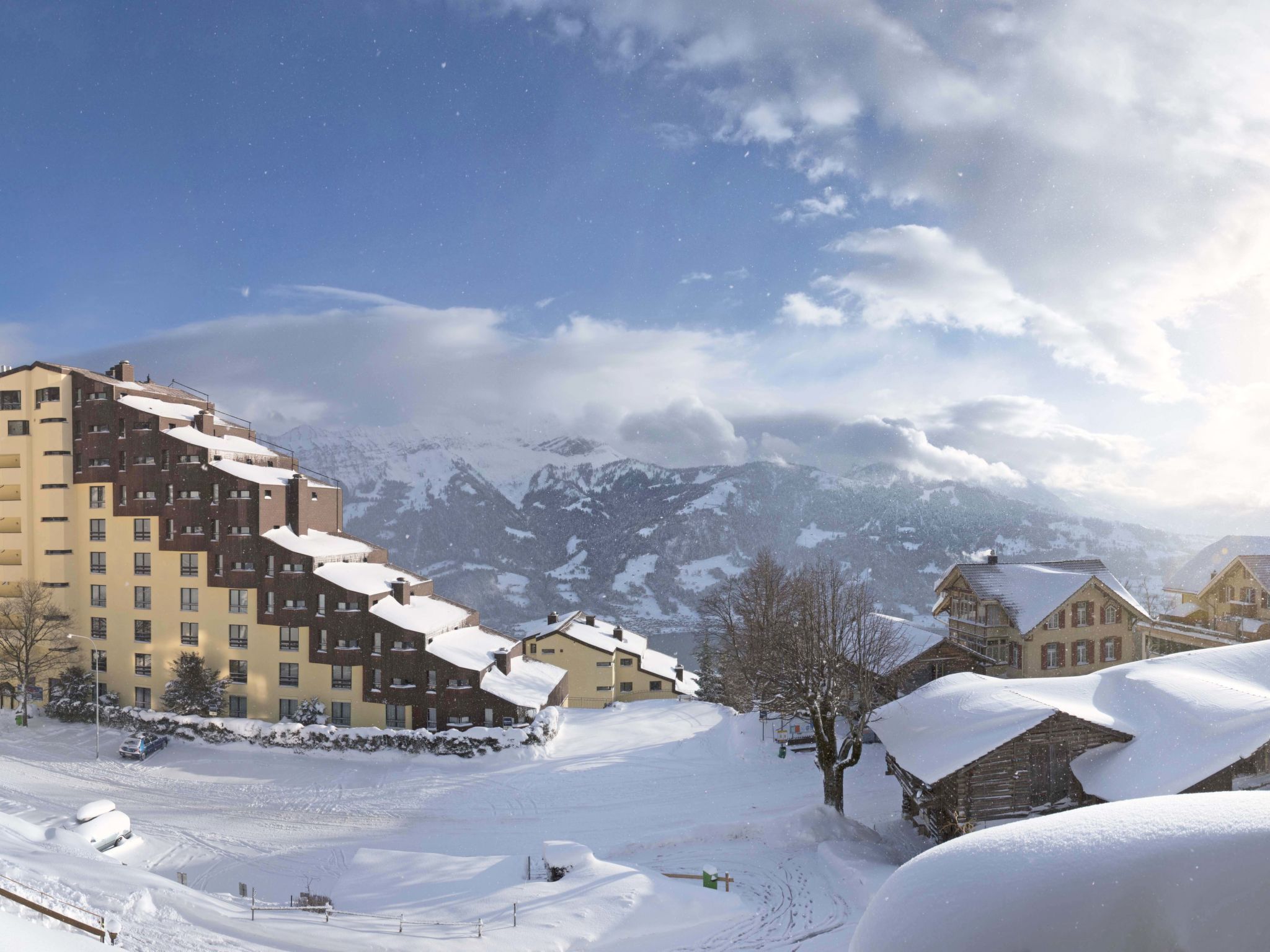Modernes, komfortables Apart-Hotel Dorint Hotel Blüemlisalp. Ausserhalb des Ortes, 2 km vom Zentrum, ruhige, sonnige Lage am Hang. Zur Mitbenutzung: grosser Garten, Hallenbad. Kinderspielplatz. In der Anlage: Empfang, Restaurant, Bar, Frühstücksraum, Aufenthaltsraum, Sauna, Massage (extra). Infrarotwärmekabine, Ruheraum, Wellnessbereich, Tischtennis, Billard, Spielzimmer, Fahrstuhl, Einstellraum für Fahrräder, Sonnenterrasse, Skiraum, Zentralheizung, Waschmaschine, Wäschetrockner (zur Mitbenutzung, extra). Wäschewechsel 1 mal wöchentlich. Frühstück möglich (extra). Parkplatz (im Winter extra), Gemeinschaftsgarage. E-Ladestation. Bushaltestelle 10 m, Bahnstation Interlaken West 12 km, Freibad 14 km. Golfplatz (18 Loch) 14 km, Minigolf 50 m, Wanderwege ab Haus, Gondelbahn 650 m, Skisportanlagen 650 m, Skibushaltestelle 10 m. Nahe gelegene Sehenswürdigkeiten: Beatushöhlen, Interlaken, Jungfraujoch. Bekannte Skigebiete sind gut erreichbar: Jungfrau-Region. Bekannte Seen in der Umgebung sind gut erreichbar: Thuner- und Brienzersee. Wandergebiete: Niederhorn, Hohgant, Via Jacobi. Bitte beachten: Weitere Unterkünfte sind buchbar.