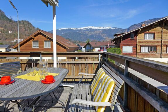 Carina, 4-Zimmer-Wohnung 150 m2 im 1. Stock. Geräumig und hell, sehr komfortabel und geschmackvoll eingerichtet: offenes grosses Wohn-/Esszimmer 45 m2 mit Panoramafenster mit offenem Kamin, Esstisch und Kabel-TV (Flachbildschirm), Radio, Stereoanlage, DVD und elektrischem Rollladen. Ausgang zum Balkon, Richtung Süden. 1 grosses Zimmer mit Panoramafenster mit 1 Doppelbett (2 x 90 cm, Länge 200 cm), TV und elektrischem Rollladen. Ausgang zur Terrasse. 1 Zimmer mit 1 Doppeldiwanbett (2 x 90 cm, Länge 200 cm). 1 Zimmer mit 1 Doppelbett (180 cm, Länge 200 cm). Grosse, offene Küche (Backofen, Geschirrspüler, 4 Glaskeramikplatten, Mikrowelle, elektrische Kaffeemaschine, Racletteofen, Fondue Set (Käse)). 2 Duschen/Bidet/WC. Fussbodenheizung. Balkon 10 m2, Südlage, grosse Terrasse 70 m2, Nordlage und Westlage. Terrassenmöbel, Balkonmöbel, Liegestühle. Herrliche Sicht auf die Berge und die Landschaft. Zur Verfügung: Haartrockner, Holz (extra). Internet (WLAN). Parkplatz, Garage. Bitte beachten: Nichtraucher-Unterkunft. Maximal 1 Haustier/Hund erlaubt.