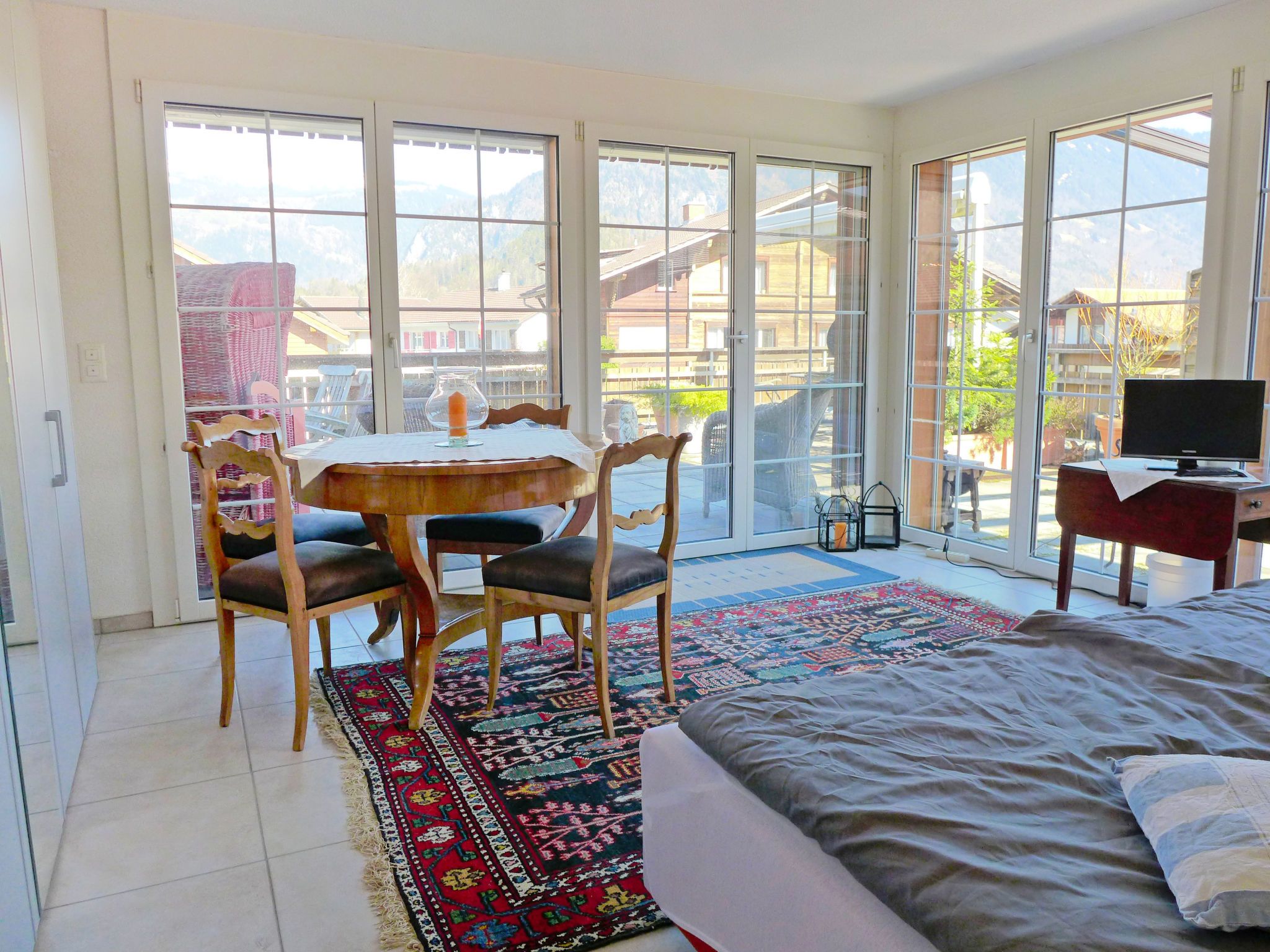 Wilderswil 4 km von Interlaken: Komfortables Mehrfamilienhaus. Im Ort, ruhige, sonnige Lage in einem Wohnquartier. Im Hause: Skiraum, Zentralheizung. Wäschewechsel (zusätzlich extra). Handtuchwechsel (zusätzlich extra). Einkaufsgeschäft 200 m, Supermarkt, Restaurant 300 m, Bushaltestelle Kirchgasse 140 m, Bahnstation Wilderswil 350 m, Freibad 4 km, Hallenbad 4 km. Golfplatz (18 Loch) 6 km, Tennis 1 km, Minigolf 4 km, Reitstall 1 km, Wanderwege ab Haus, Radweg 200 m, Bergeisenbahn 300 m, Skisportanlagen 12 km, Eisfeld 2 km. Nahe gelegene Sehenswürdigkeiten: Jungfraujoch, Schilthorn Piz Gloria, Tell-Freilichspiele, Ballenberg Freilichtmuseum. Bekannte Skigebiete sind gut erreichbar: Wengen Kleine Scheidegg, Grindelwald First, Mürren Schilthorn. Bekannte Seen in der Umgebung sind gut erreichbar: Thunersee, Brienzersee. Wandergebiete: Jungfrau Region. Bitte beachten: Gratis Skibus.
