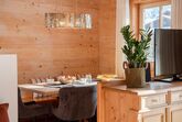 Der offene Wohn-, Ess- und Kochbereich erstreckt sich über rund 40 m² – mit moderner Küche, großer Esstafel und viel Platz zum Beisammensein. An kalten Tagen genießen Sie die behagliche Atmosphäre am offenen Kamin.