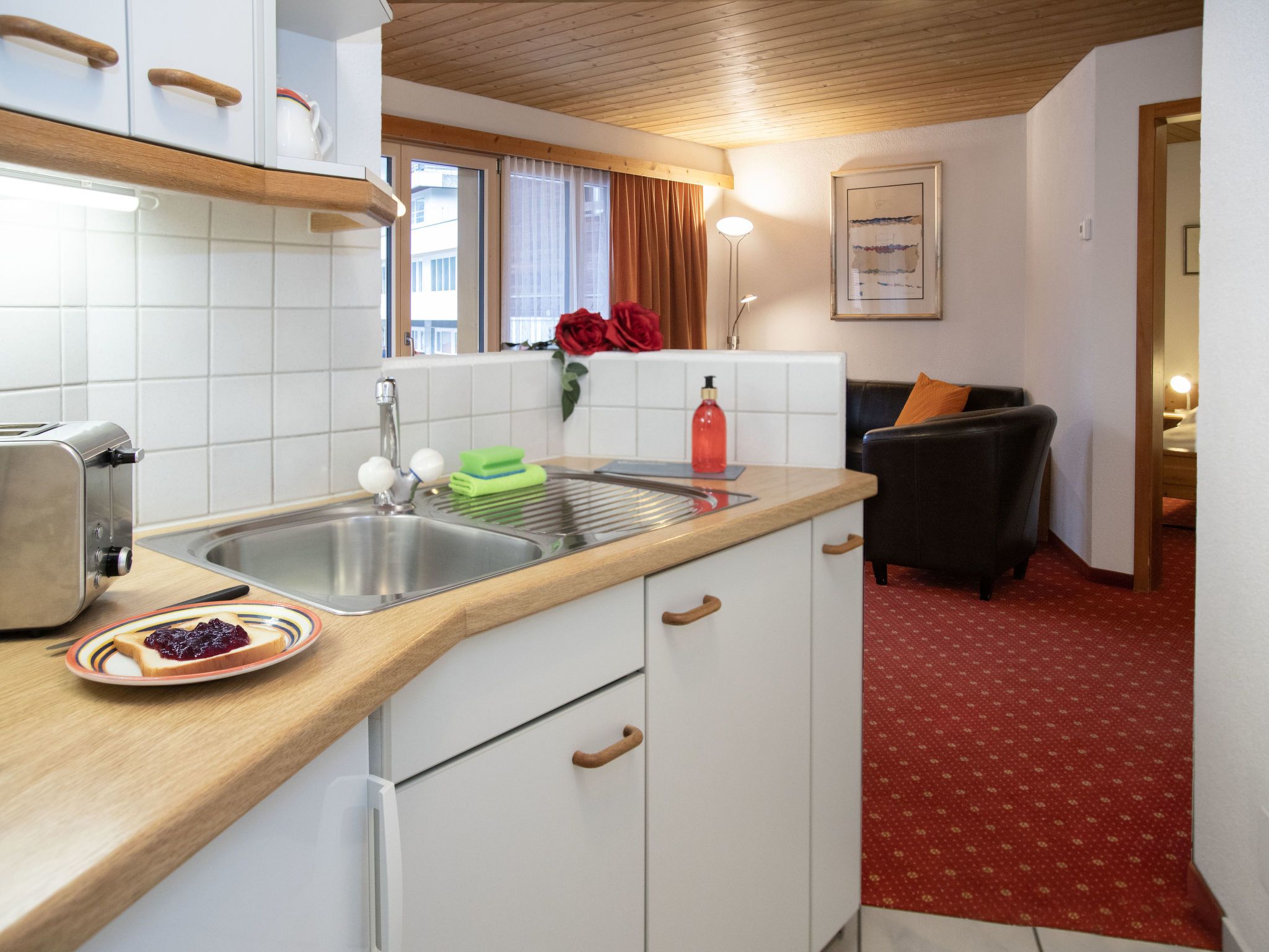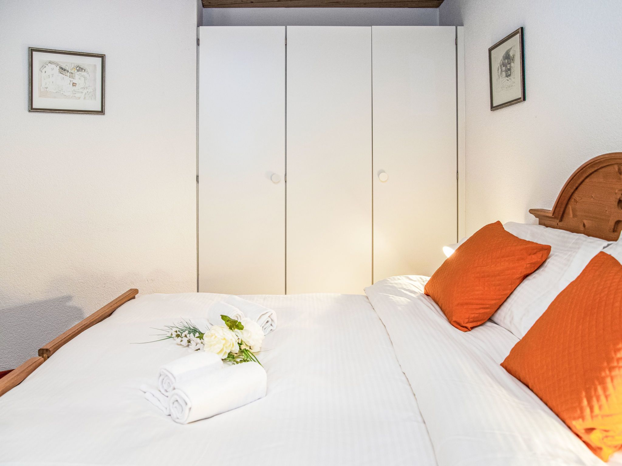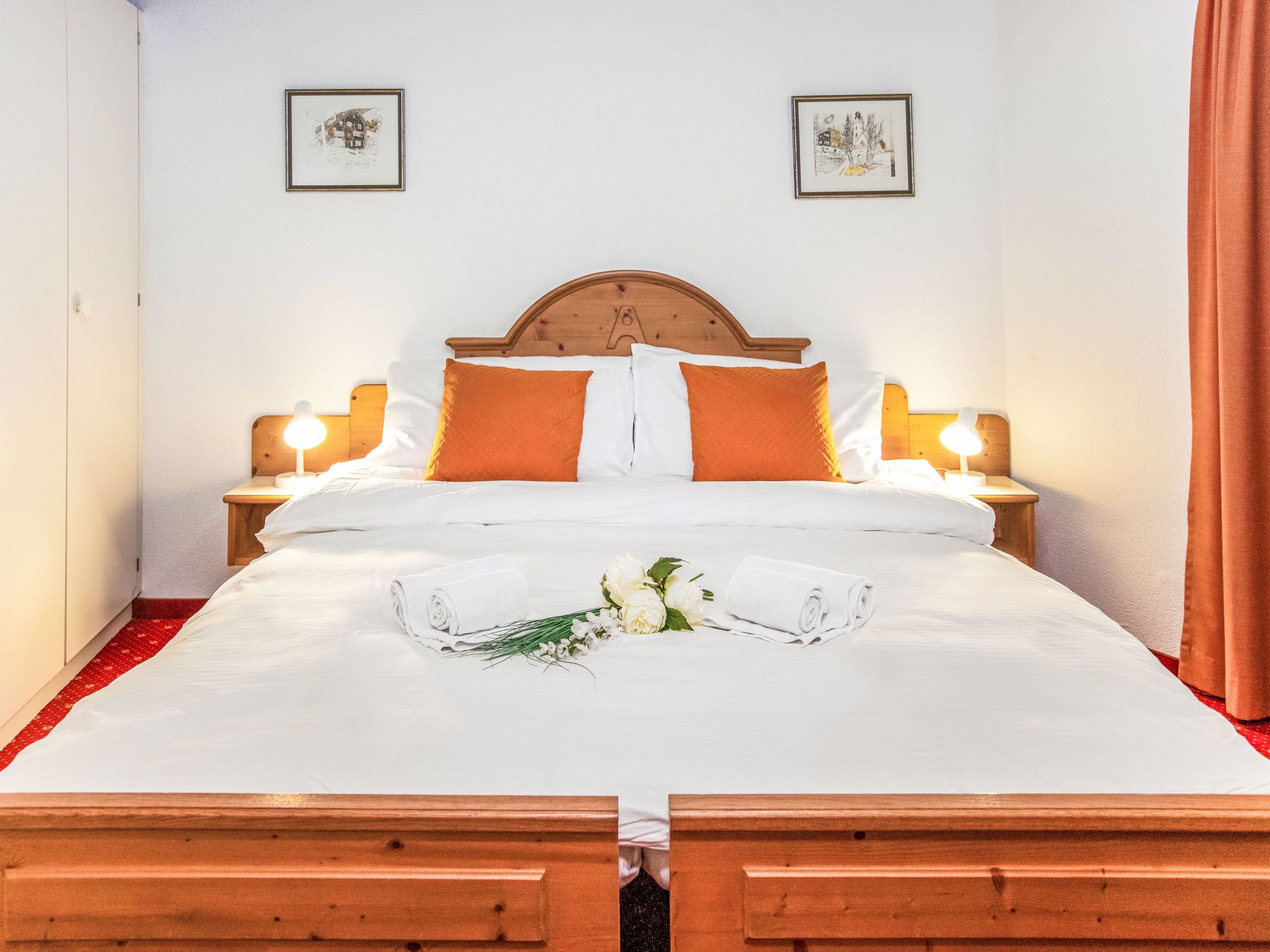 2-Zimmer-Wohnung 48 m2 im 1. Stock, Südlage. Wohn-/Esszimmer mit Kabel-TV (Flachbildschirm). Ausgang zum Balkon, Richtung Süden. 1 Doppelzimmer. Offene Küche (Backofen, 4 Glaskeramikplatten, Toaster, Wasserkocher, elektrische Kaffeemaschine). Bad/WC. Balkonmöbel. Schöne Sicht auf die Berge. Zur Verfügung: Haartrockner. Internet (Wireless LAN, gratis). Bitte beachten: Nichtraucher-Unterkunft. Maximal 1 Haustier/Hund erlaubt. Ein Fondue Set (Fleisch oder Käse) sowie ein Raclette Ofen kann an der Rezeption ausgeliehen werden.