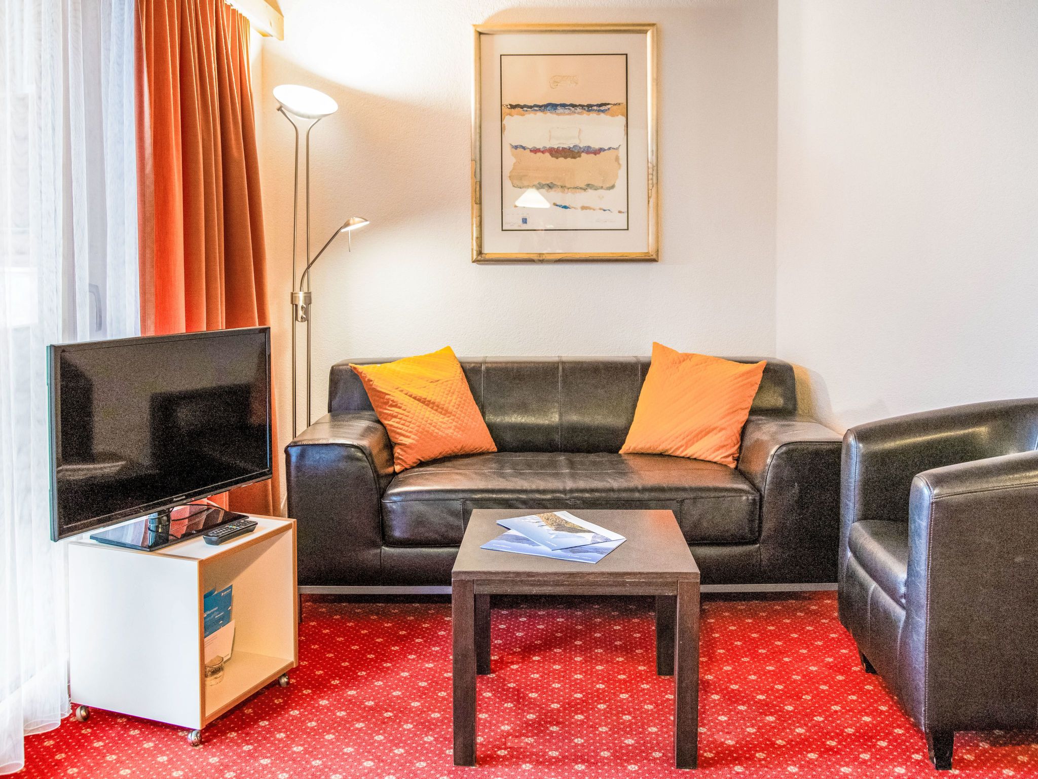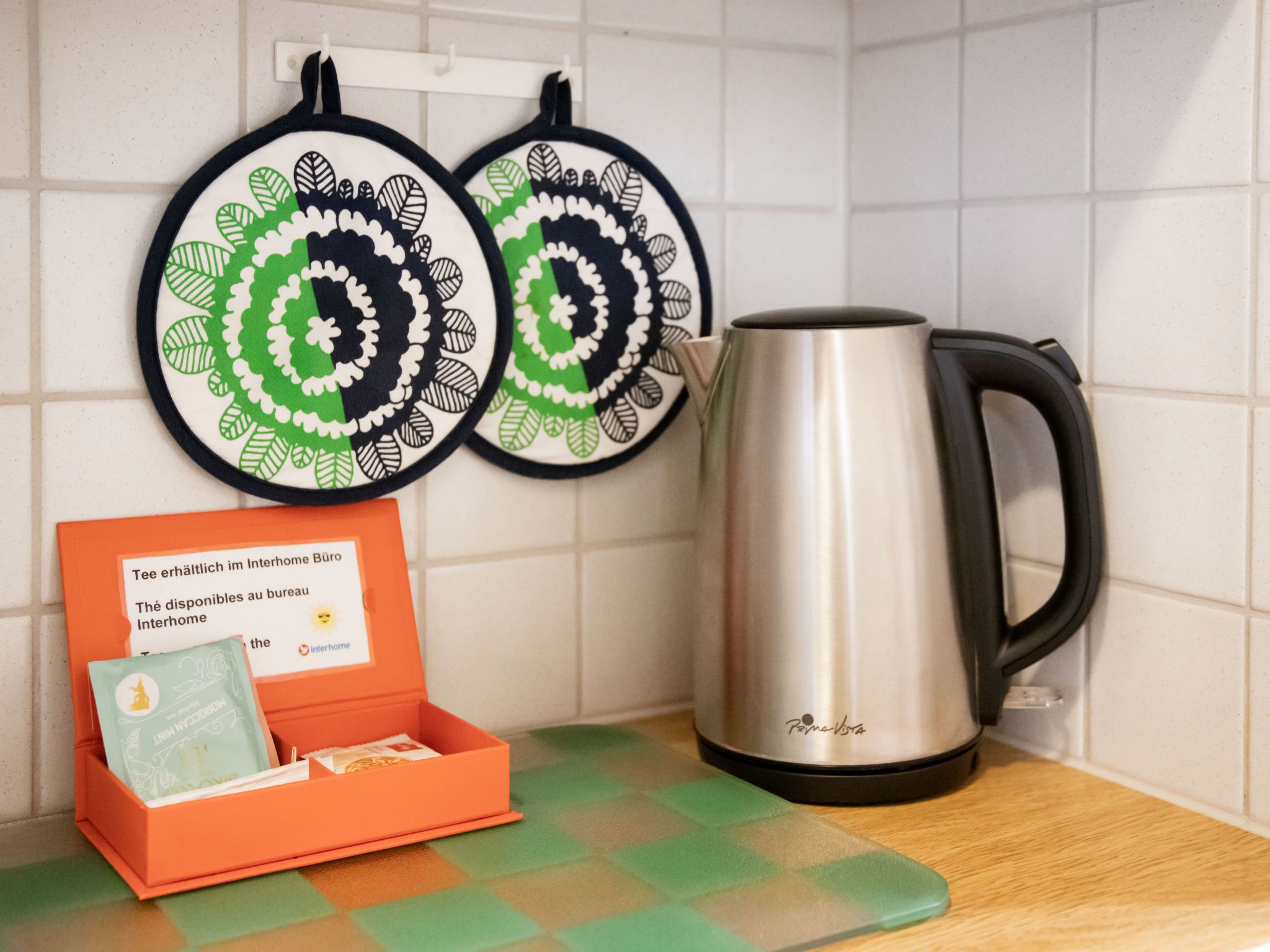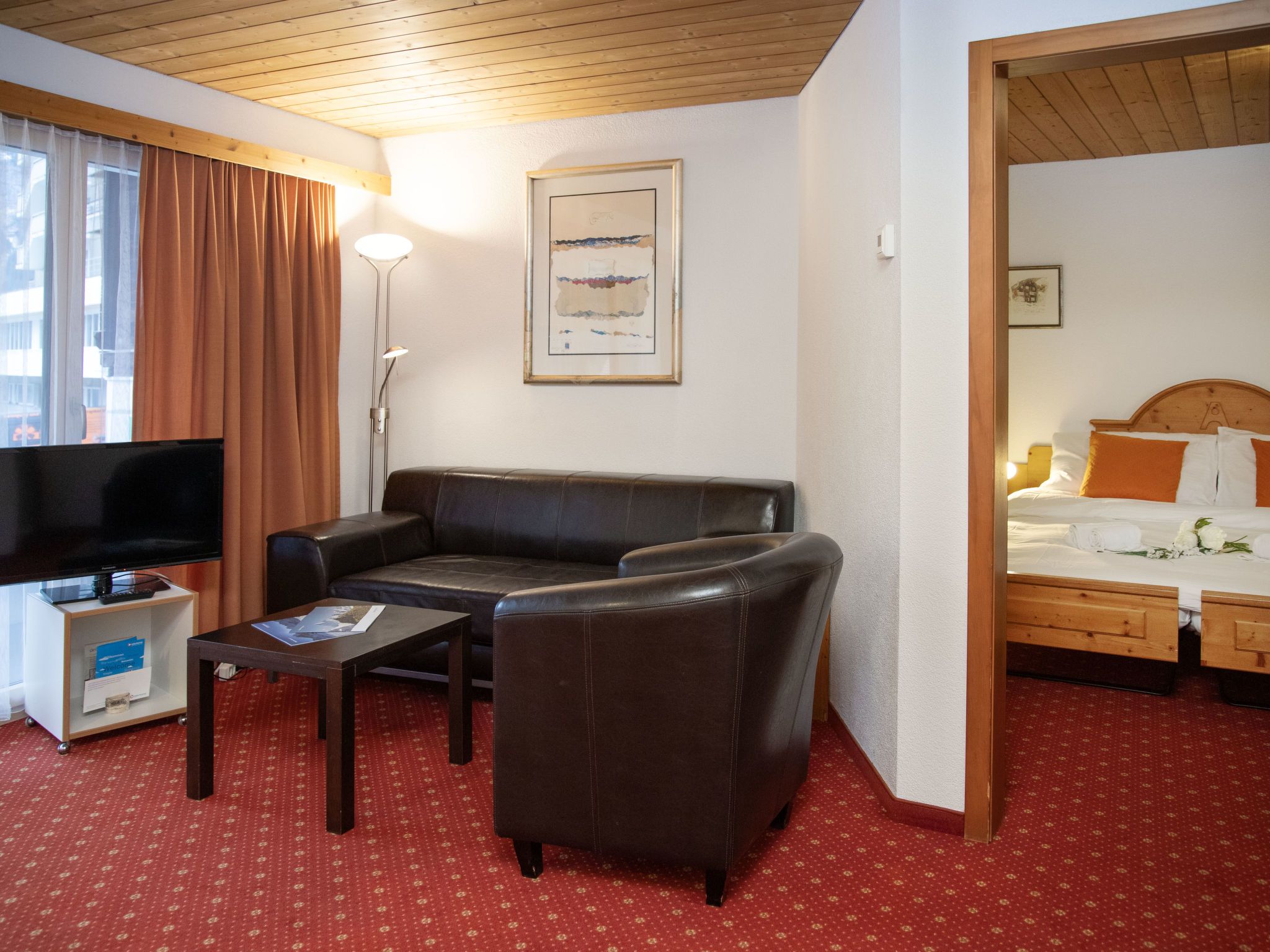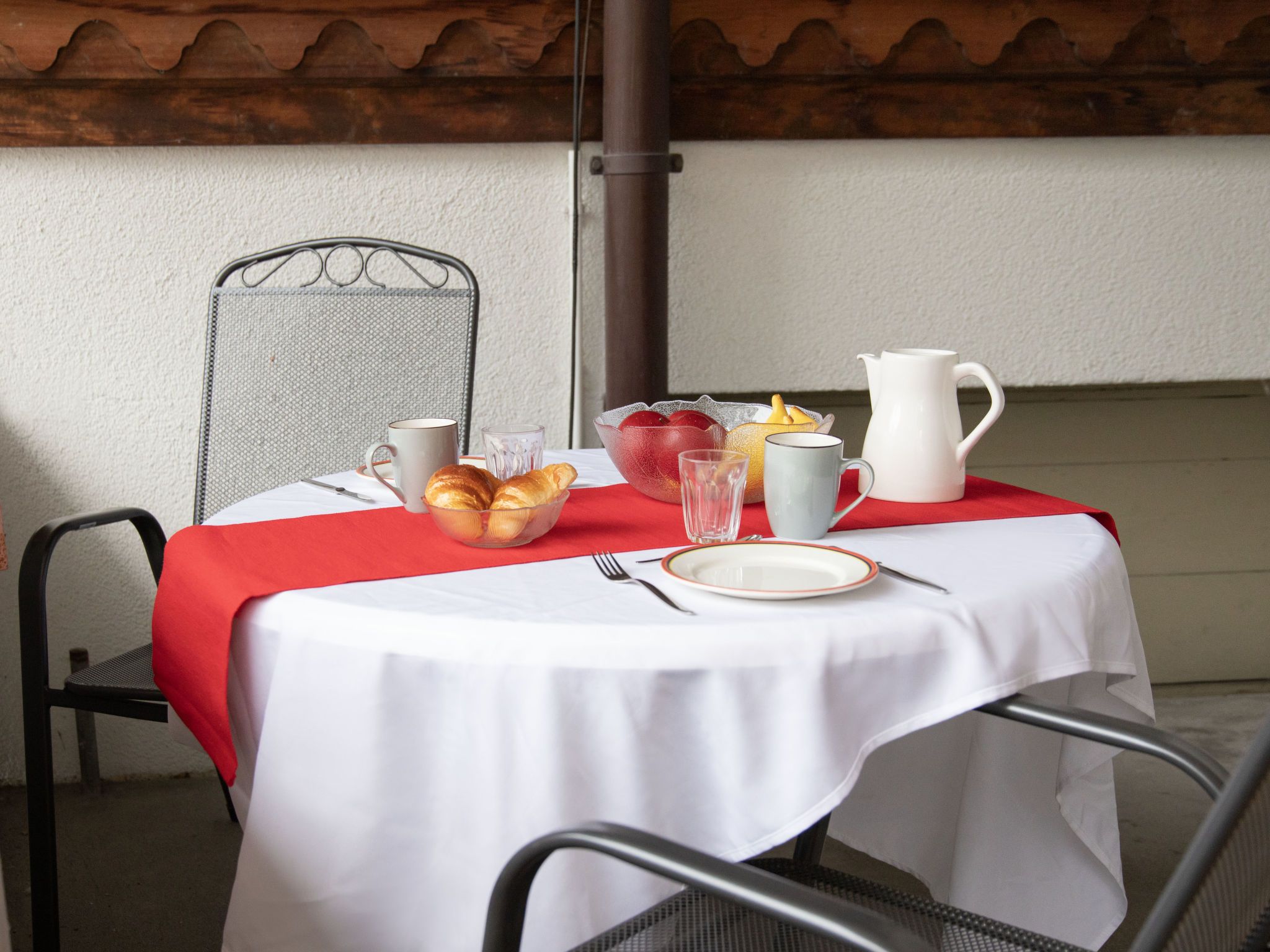 2-Zimmer-Wohnung 48 m2 im 1. Stock, Südlage. Wohn-/Esszimmer mit Kabel-TV (Flachbildschirm). Ausgang zum Balkon, Richtung Süden. 1 Doppelzimmer. Offene Küche (Backofen, 4 Glaskeramikplatten, Toaster, Wasserkocher, elektrische Kaffeemaschine). Bad/WC. Balkonmöbel. Schöne Sicht auf die Berge. Zur Verfügung: Haartrockner. Internet (Wireless LAN, gratis). Bitte beachten: Nichtraucher-Unterkunft. Maximal 1 Haustier/Hund erlaubt. Ein Fondue Set (Fleisch oder Käse) sowie ein Raclette Ofen kann an der Rezeption ausgeliehen werden.
