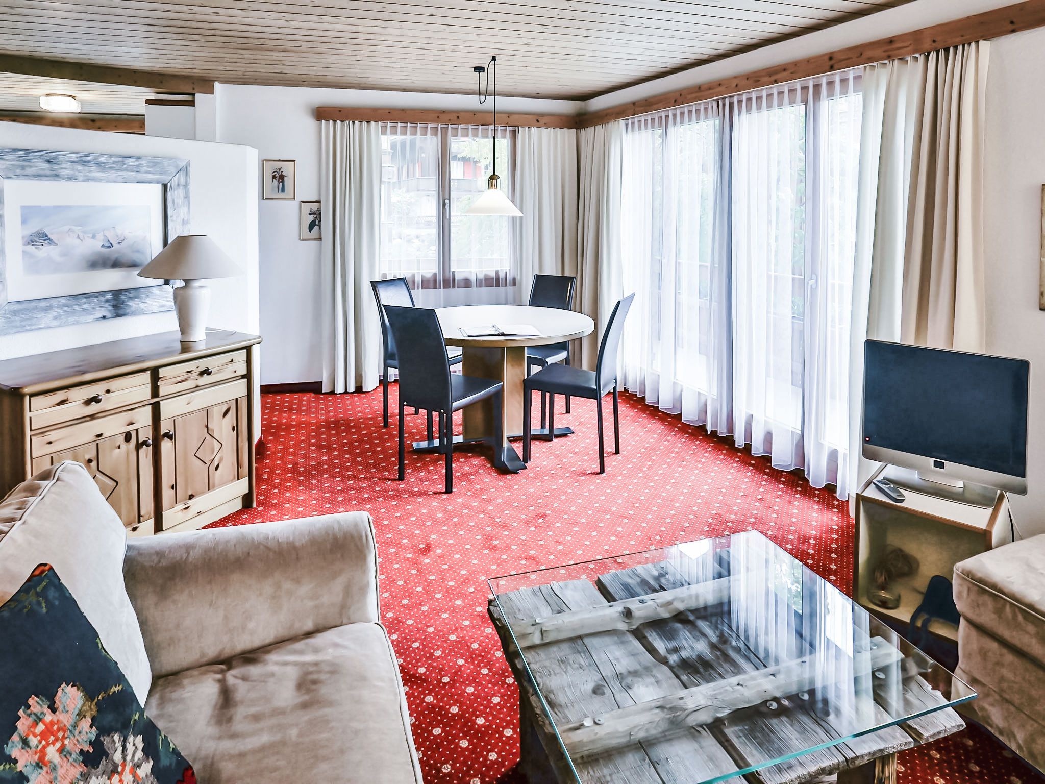 2-Zimmer-Wohnung 56 m2. Schön und gemütlich eingerichtet: Wohn-/Esszimmer mit Kabel-TV (Flachbildschirm). 1 Doppelzimmer. Offene Küche (Backofen, Geschirrspüler, 4 Glaskeramikplatten, Toaster, Wasserkocher, elektrische Kaffeemaschine). Bad, sep. WC. Balkon, Südlage und Nordlage. Sicht auf die Berge und Eiger. Zur Verfügung: Haartrockner. Internet (Wireless LAN, gratis). Bitte beachten: Nichtraucher-Unterkunft. Maximal 1 Haustier/Hund erlaubt. Ein Fondue Set (Fleisch oder Käse) sowie ein Raclette Ofen kann an der Rezeption ausgeliehen werden.