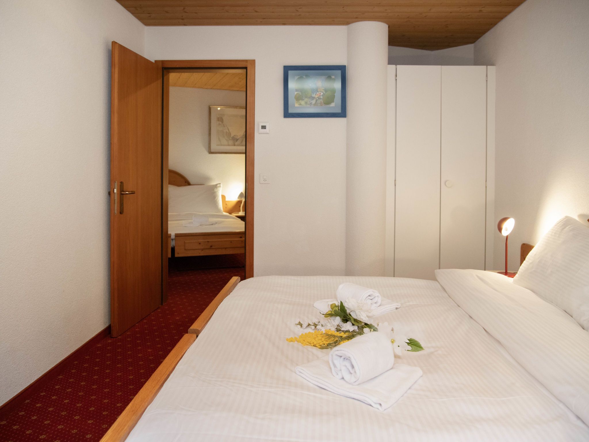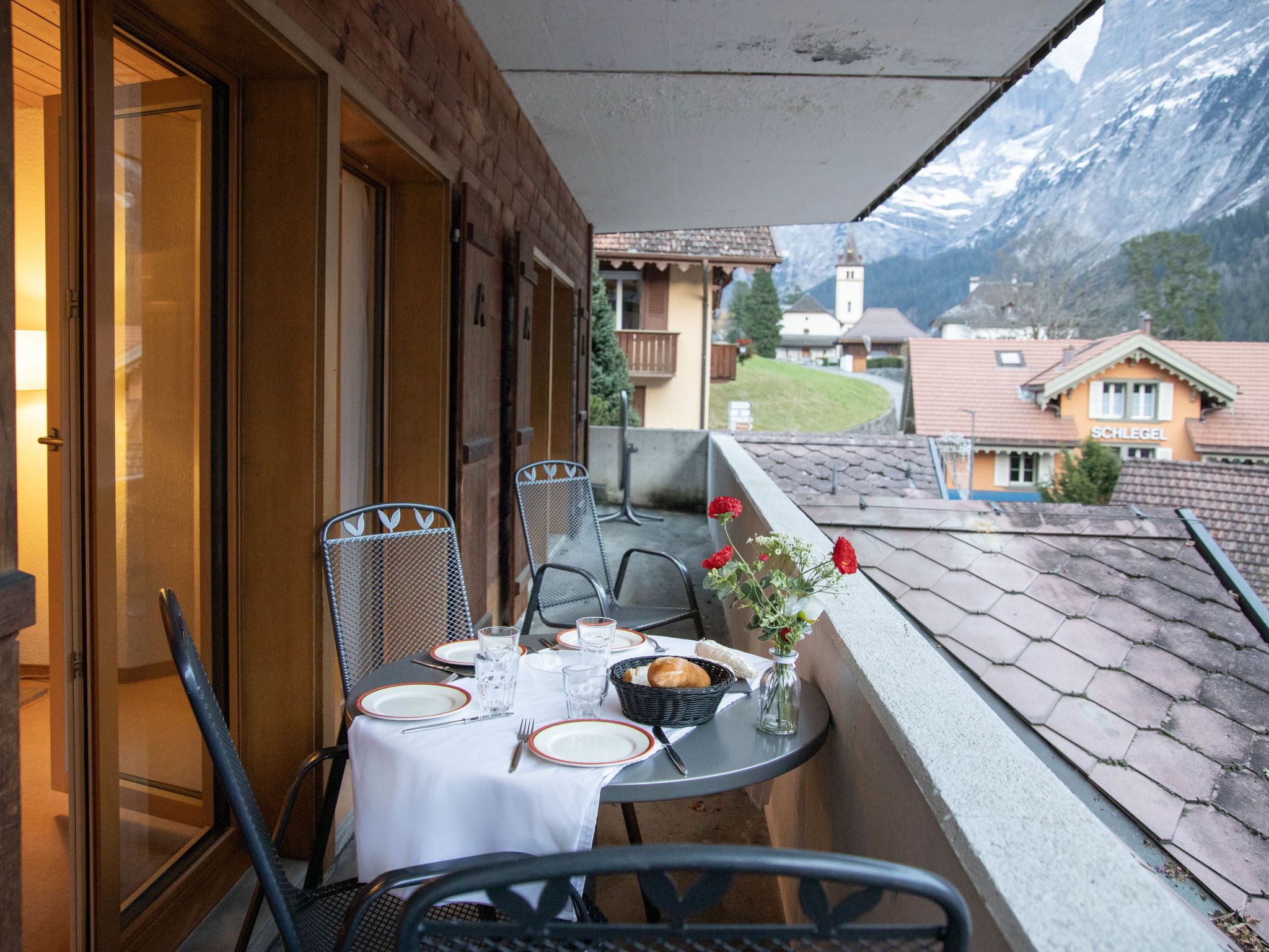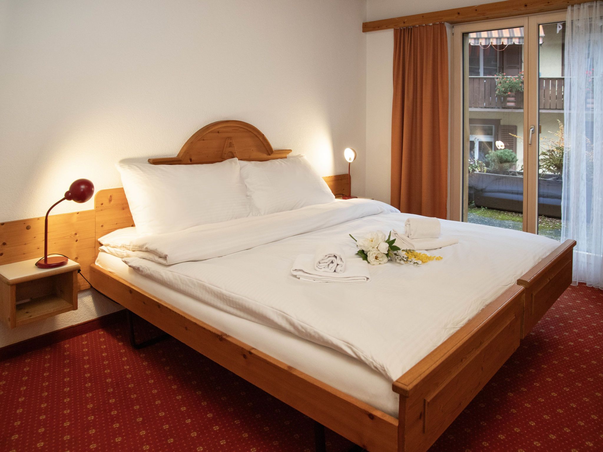 2-Zimmer-Wohnung 53 m2 im 1. Stock, Südostlage. Wohn-/Esszimmer mit 2 Betten und Kabel-TV (Flachbildschirm). 1 Doppelzimmer. Offene Küche (Backofen, 4 Glaskeramikplatten, Toaster, Wasserkocher, elektrische Kaffeemaschine). Bad/WC. Kleiner Balkon, Südlage, Terrasse. Terrassenmöbel. Schöne Sicht auf die Berge und Eiger. Zur Verfügung: Haartrockner. Internet (Wireless LAN, gratis). Bitte beachten: Nichtraucher-Unterkunft. Maximal 1 Haustier/Hund erlaubt. Ein Fondue Set (Fleisch oder Käse) sowie ein Raclette Ofen kann an der Rezeption ausgeliehen werden.