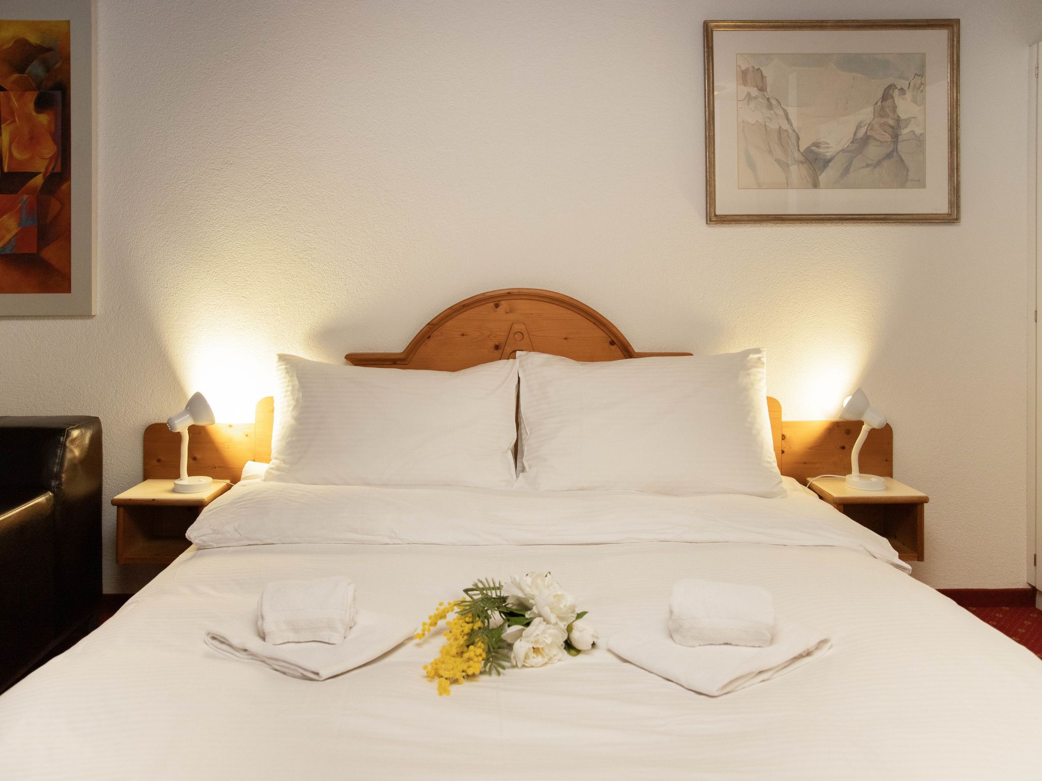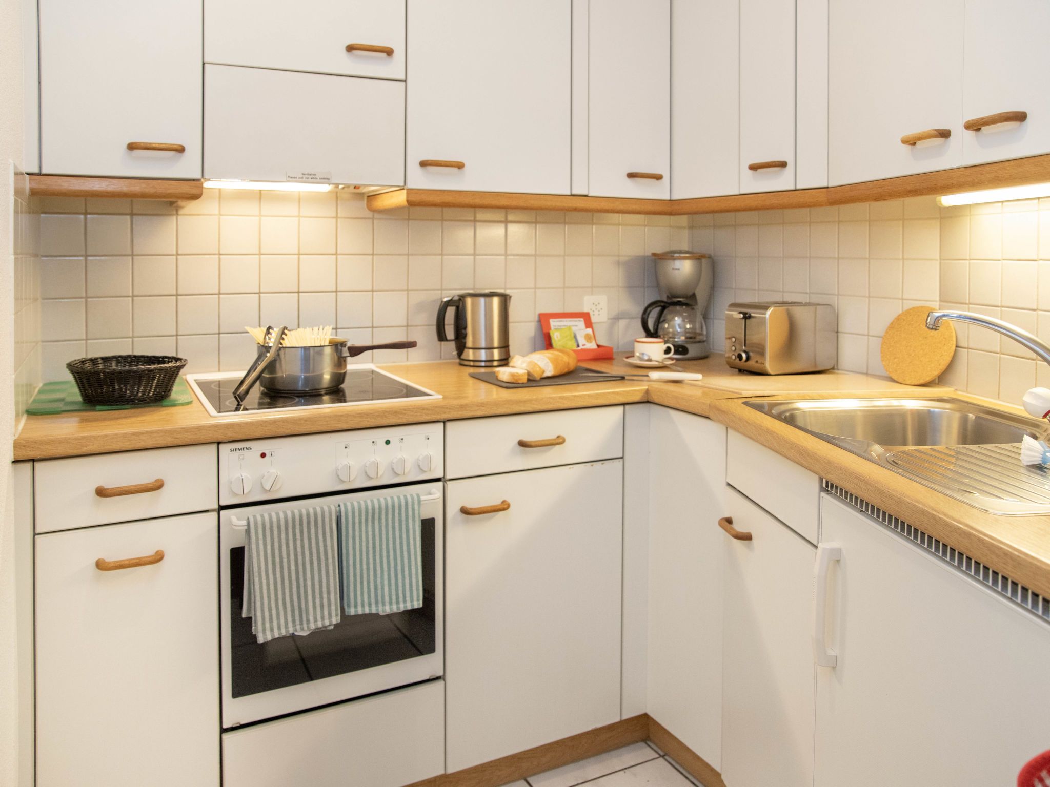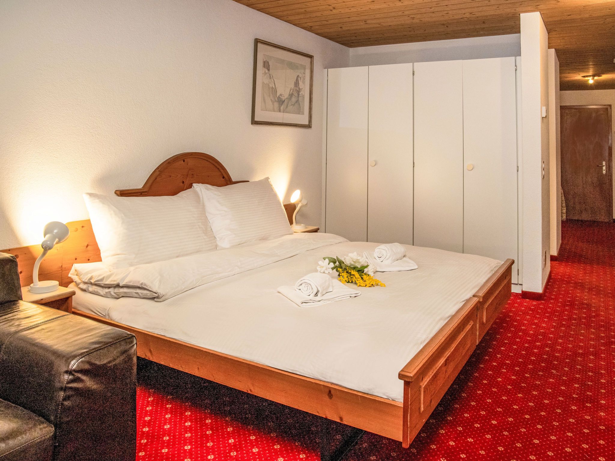 2-Zimmer-Wohnung 53 m2 im 1. Stock, Südostlage. Wohn-/Esszimmer mit 2 Betten und Kabel-TV (Flachbildschirm). 1 Doppelzimmer. Offene Küche (Backofen, 4 Glaskeramikplatten, Toaster, Wasserkocher, elektrische Kaffeemaschine). Bad/WC. Kleiner Balkon, Südlage, Terrasse. Terrassenmöbel. Schöne Sicht auf die Berge und Eiger. Zur Verfügung: Haartrockner. Internet (Wireless LAN, gratis). Bitte beachten: Nichtraucher-Unterkunft. Maximal 1 Haustier/Hund erlaubt. Ein Fondue Set (Fleisch oder Käse) sowie ein Raclette Ofen kann an der Rezeption ausgeliehen werden.