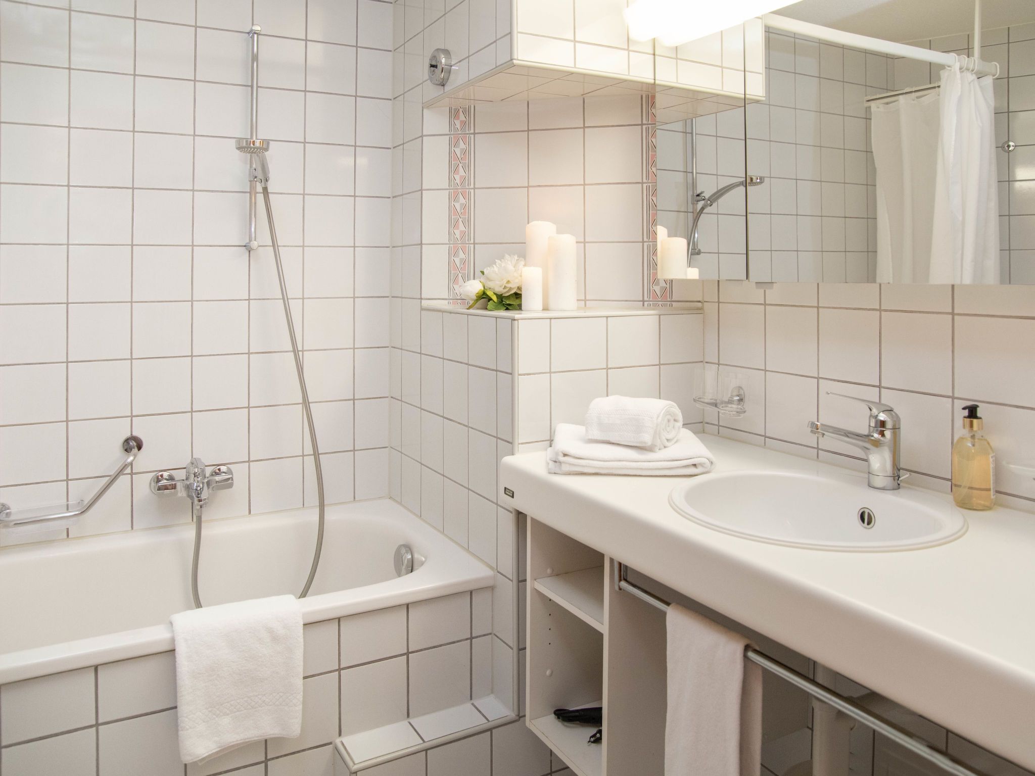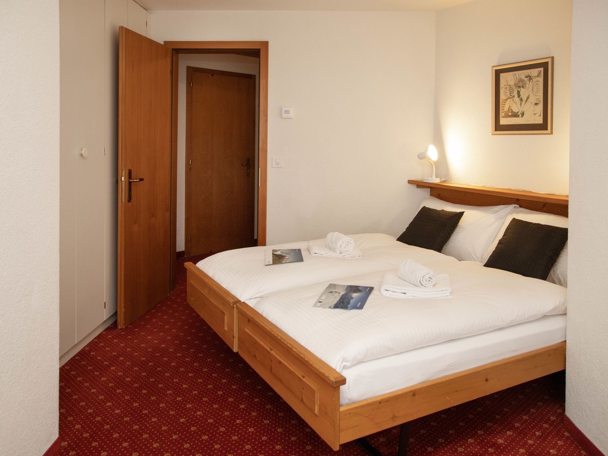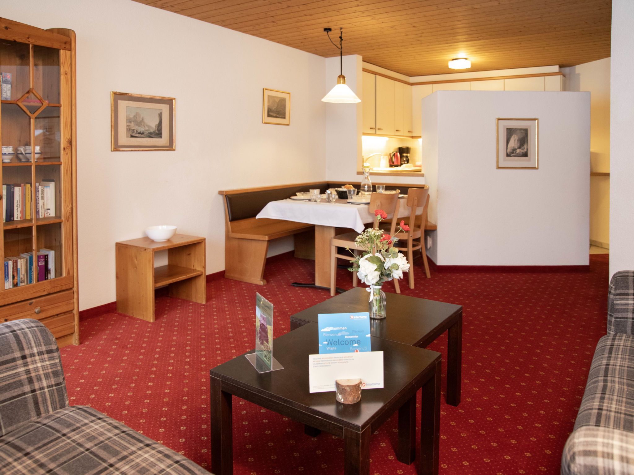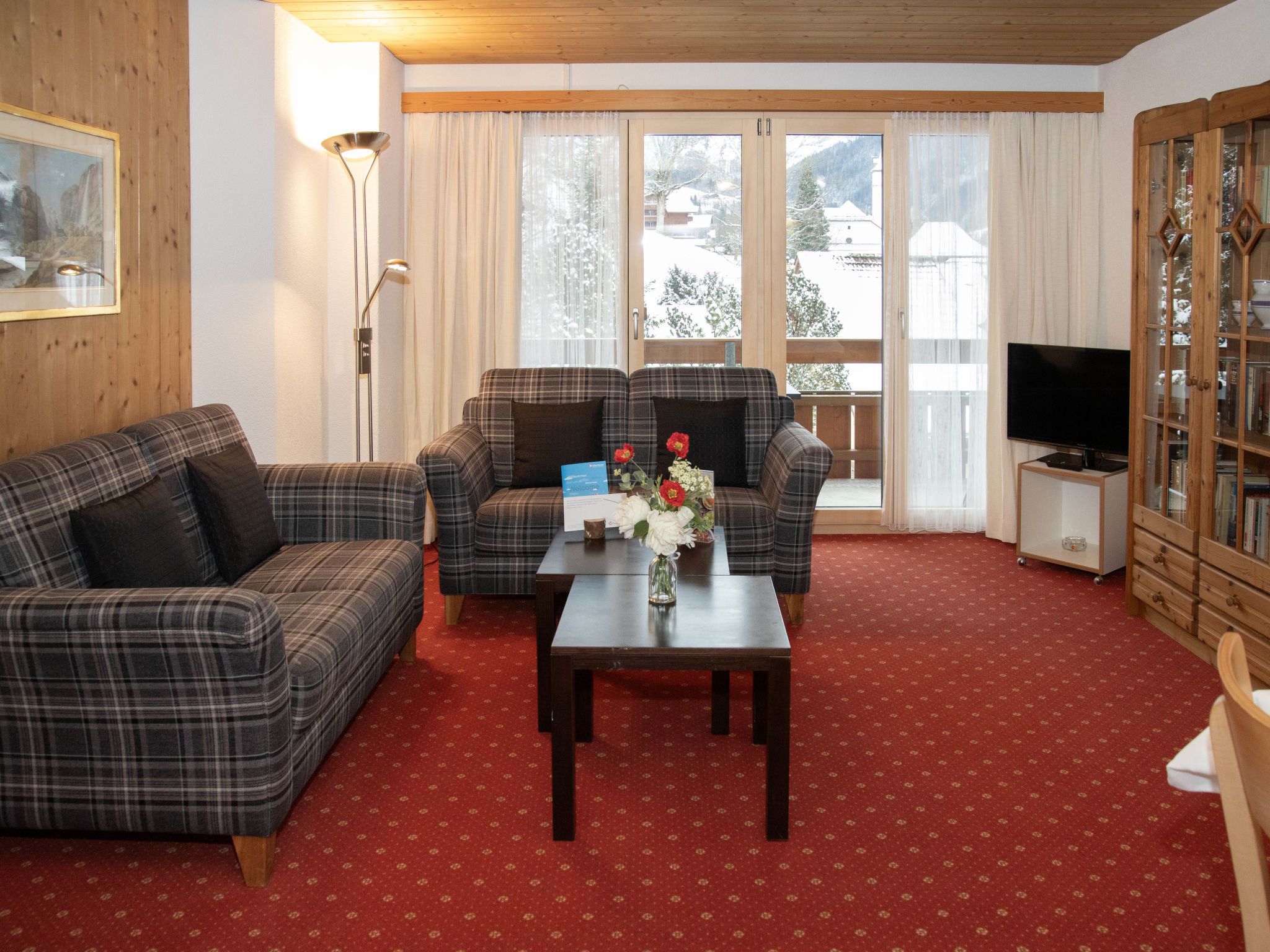 3-Zimmer-Wohnung 64 m2 im 3. Stock, Ostlage. Wohn-/Esszimmer mit Kabel-TV (Flachbildschirm). 2 Doppelzimmer. Offene Küche (Backofen, Geschirrspüler, 4 Glaskeramikplatten, Toaster, Wasserkocher, elektrische Kaffeemaschine). Bad/WC, sep. WC. 2 Balkone, Ostlage. Terrassenmöbel. Sicht auf die Berge. Zur Verfügung: Haartrockner. Internet (Wireless LAN, gratis). Bitte beachten: Nichtraucher-Unterkunft. Maximal 1 Haustier/Hund erlaubt. Ein Fondue Set (Fleisch oder Käse) sowie ein Raclette Ofen kann an der Rezeption ausgeliehen werden.
