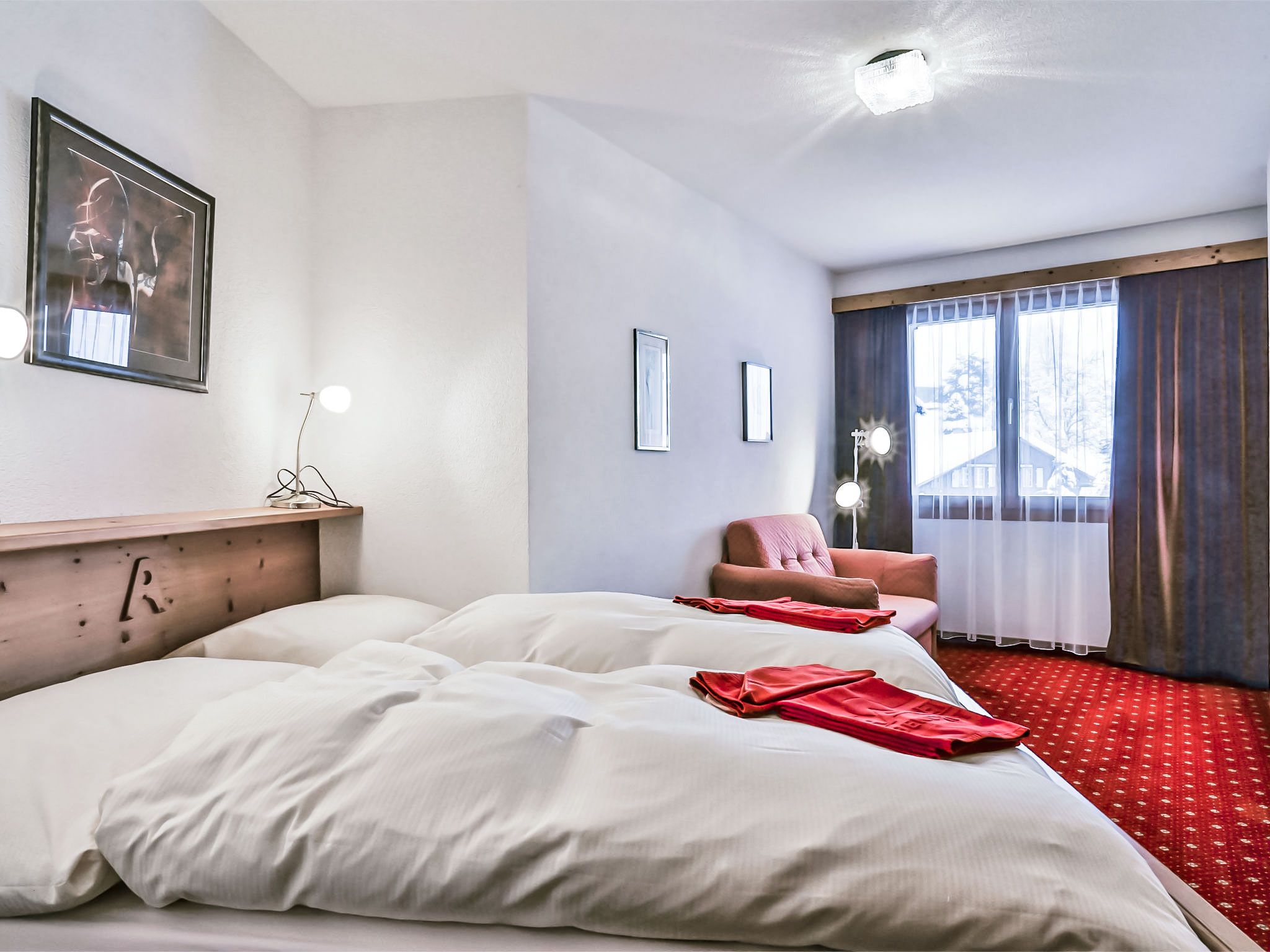 3-Zimmer-Wohnung 64 m2 im 4. Stock, Südostlage. Wohn-/Esszimmer mit Kabel-TV (Flachbildschirm). 2 Doppelzimmer. Offene Küche (Backofen, Geschirrspüler, Toaster, Wasserkocher, elektrische Kaffeemaschine). Bad/WC, sep. WC. Balkon, Südlage und Ostlage. Terrassenmöbel. Sicht auf die Berge und Eiger. Zur Verfügung: Haartrockner. Internet (Wireless LAN, gratis). Bitte beachten: Nichtraucher-Unterkunft. Maximal 1 Haustier/Hund erlaubt. Ein Fondue Set (Fleisch oder Käse) sowie ein Raclette Ofen kann an der Rezeption ausgeliehen werden.