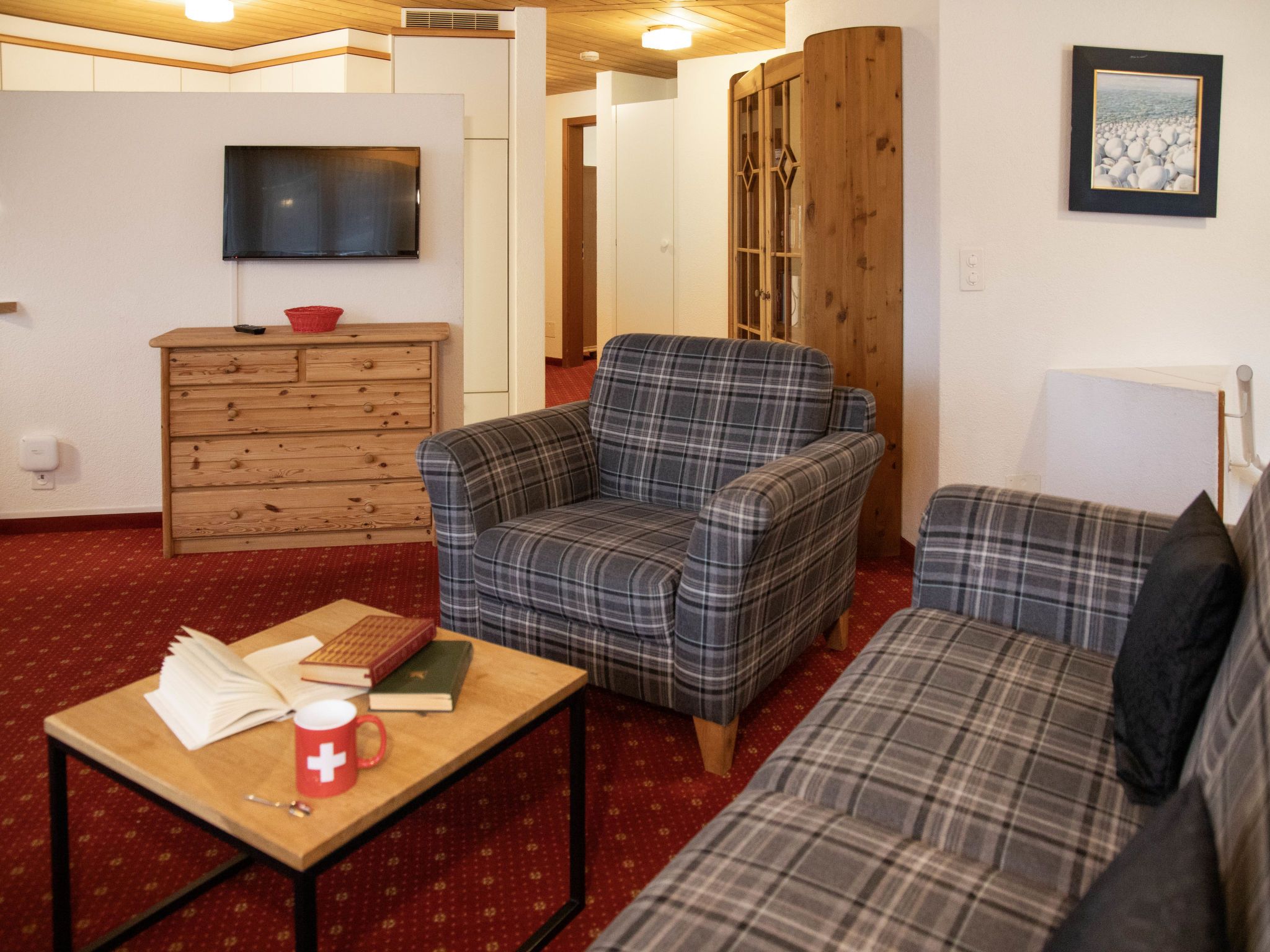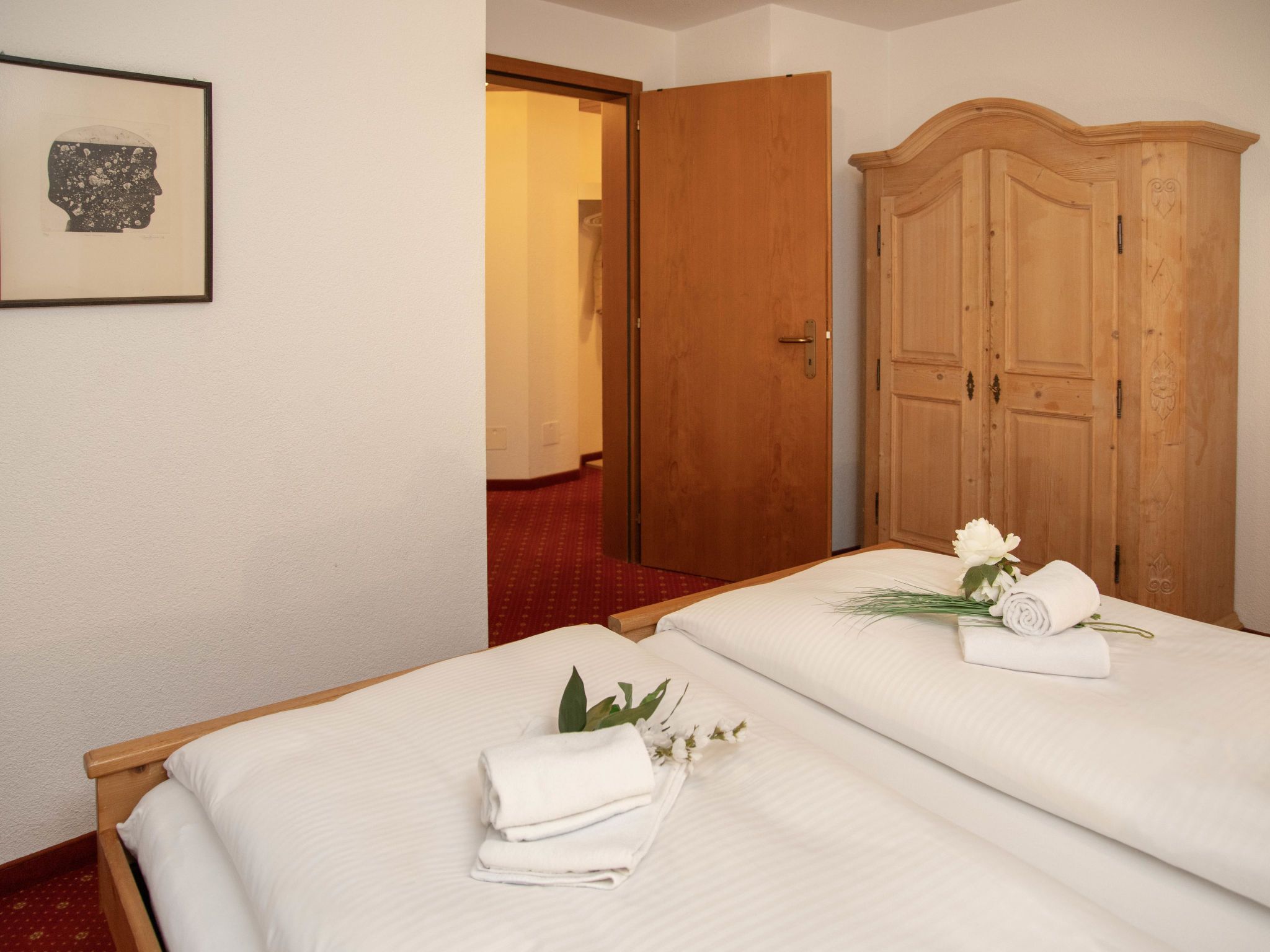 4-Zimmer-Wohnung 89 m2 auf 2 Stockwerken im 3. Stock, Ostlage. Wohn-/Esszimmer mit Kabel-TV (Flachbildschirm). 2 Doppelzimmer. Offene Küche (Backofen, Geschirrspüler, 4 Glaskeramikplatten, Toaster, Wasserkocher, elektrische Kaffeemaschine, Kapseln für die Kaffeemaschine (Nespresso) extra). Bad/WC. Unteres Geschoss: 1 Doppelzimmer mit Dusche/WC. Balkon, Ostlage, Terrasse, Ostlage. Terrassenmöbel. Sicht auf die Berge. Zur Verfügung: Haartrockner. Internet (Wireless LAN). Bitte beachten: Nichtraucher-Unterkunft. Maximal 1 Haustier/Hund erlaubt. Ein Fondue Set (Fleisch oder Käse) sowie ein Raclette Ofen kann an der Rezeption ausgeliehen werden.