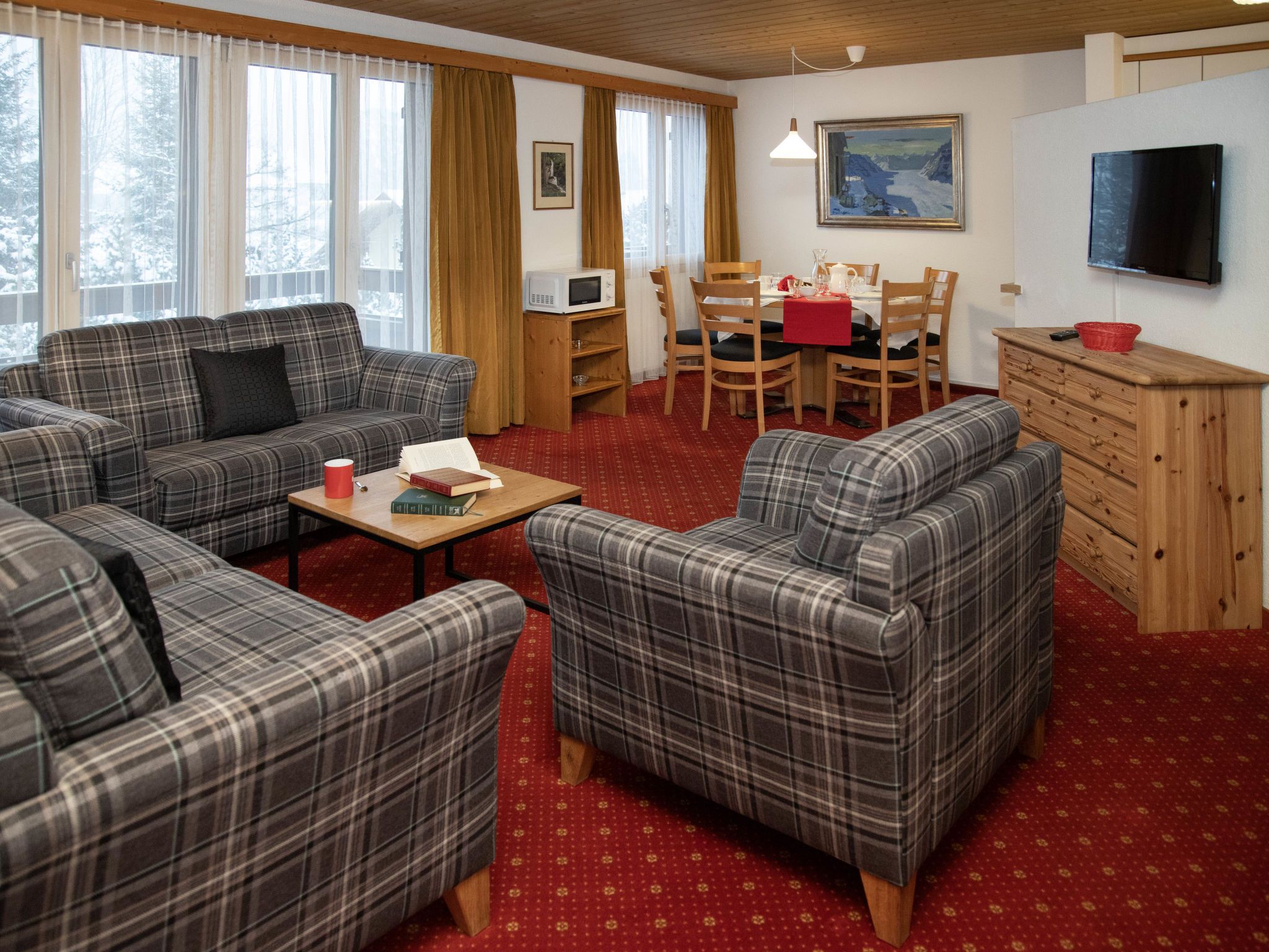 Residenz Chalet Abendrot apARTments. Im Ortszentrum. Im Hause: Empfang, Aufenthaltsraum, Wireless LAN, Tischtennis, Billard, Spielzimmer, Fahrstuhl, Skiraum, Zentralheizung. Einkaufsservice vor Anreise möglich. Im Winter bitte Schneeketten mitbringen. Gemeinschaftsgarage (extra), öffentliche Parkplätze 200 m extra. Einkaufsgeschäft 400 m, Restaurant 10 m, Bushaltestelle Firstbahn 80 m, Bahnstation Grindelwald Dorf 800 m, Freibad 2.5 km, Hallenbad 600 m. Golfplatz (9 Loch) 2 km, Tennis 1 km, Minigolf 400 m, Sportzentrum 600 m, Bergeisenbahn 800 m, Gondelbahn 80 m, Skiverleih 50 m, Skibushaltestelle 80 m, Langlaufloipe 1 km, Kinderspielplatz 600 m. Bekannte Seen in der Umgebung sind gut erreichbar: Thuner-/Brienzersee 18 km. Bitte beachten: Der Besitzer akzeptiert keine Gruppen. Gratis Skibus. Die Nachbarschaft ist sehr lärmempfindlich. Ruhe und gutes Benehmen wird erwartet. Indisches Restaurant Golden India im Hause. Das im Chaletstil erbaute Appartementhaus bietet einen Jugendraum, ein Kinderspielzimmer, eine Autoeinstellhalle (Parkplatz CHF 98.00/Woche, Reservierung bei Ankunft). Modern-rustikale und gemütliche Wohnungen, die meisten mit grosszügigem Balkon oder Terrasse und wunderbarem Blick auf die Bergwelt. Bitte beachten: Beschränkte Anzahl Garagenplätze. Nicht vorreservierbar. Garagenhöhe und -breite: 12 Parklpätze 2.09x2.06 m, 15 Parkplätze 1.65x2.06 m. Max. 2000 kg.