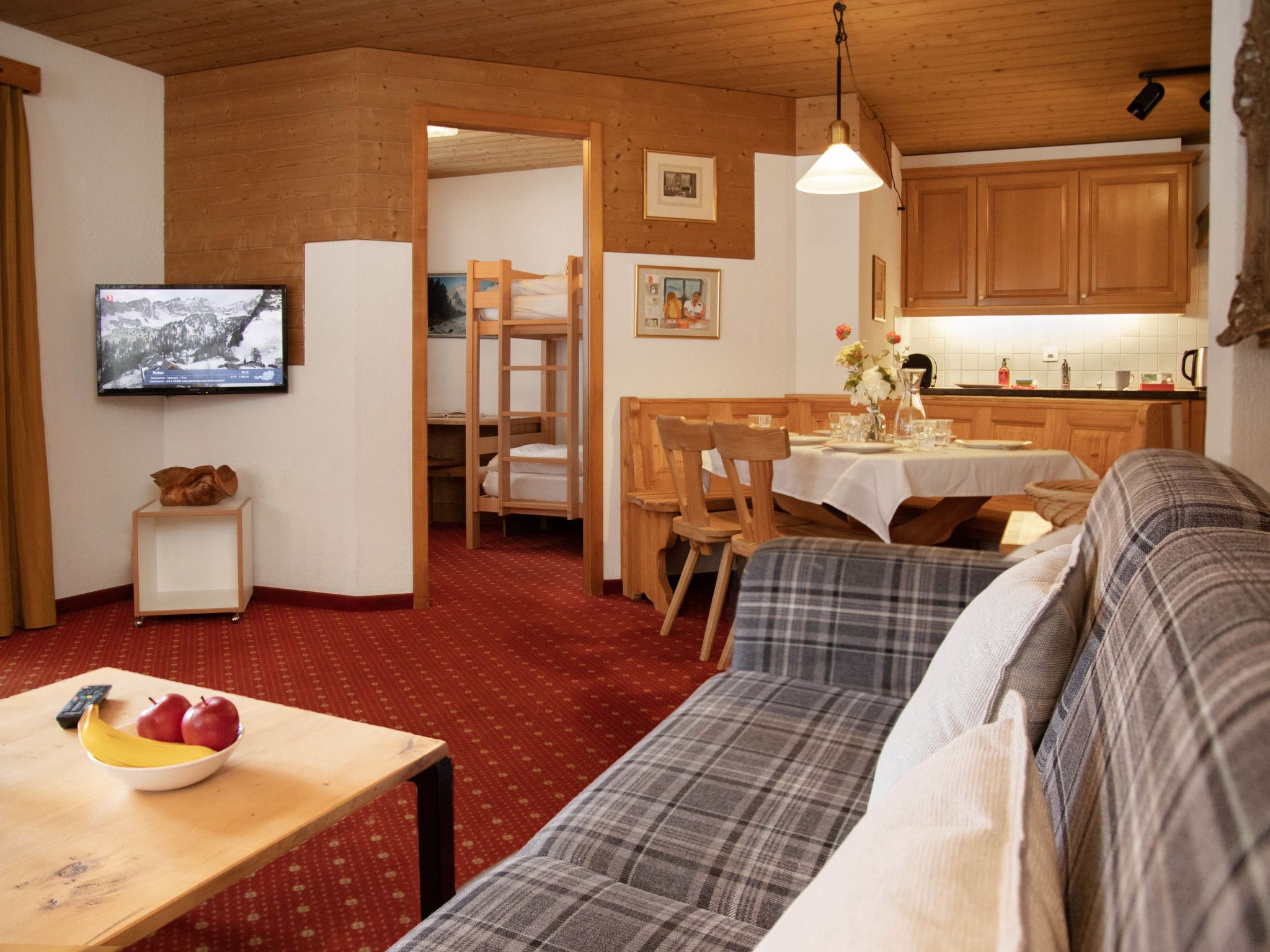 4-Zimmer-Wohnung 71 m2 im 3. Stock, Südostlage. Wohn-/Esszimmer mit Kabel-TV (Flachbildschirm). 1 Doppelzimmer mit Bad/WC. 1 Doppelzimmer. 1 Zimmer mit 1 x 2 Etagenbetten. Küche (Backofen, Geschirrspüler, 4 Glaskeramikplatten, Toaster, Wasserkocher, Mikrowelle, elektrische Kaffeemaschine, Kapseln für die Kaffeemaschine (Nespresso) extra). Dusche/WC. Balkon, Südlage und Ostlage. Terrassenmöbel. Sehr schöne Sicht auf die Berge und Eiger. Zur Verfügung: Haartrockner. Internet (Wireless LAN, gratis). Bitte beachten: Nichtraucher-Unterkunft. Maximal 1 Haustier/Hund erlaubt. Ein Fondue Set (Fleisch oder Käse) sowie ein Raclette Ofen kann an der Rezeption ausgeliehen werden.