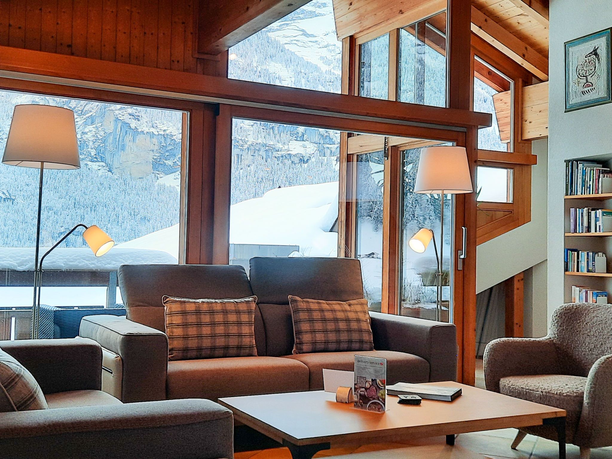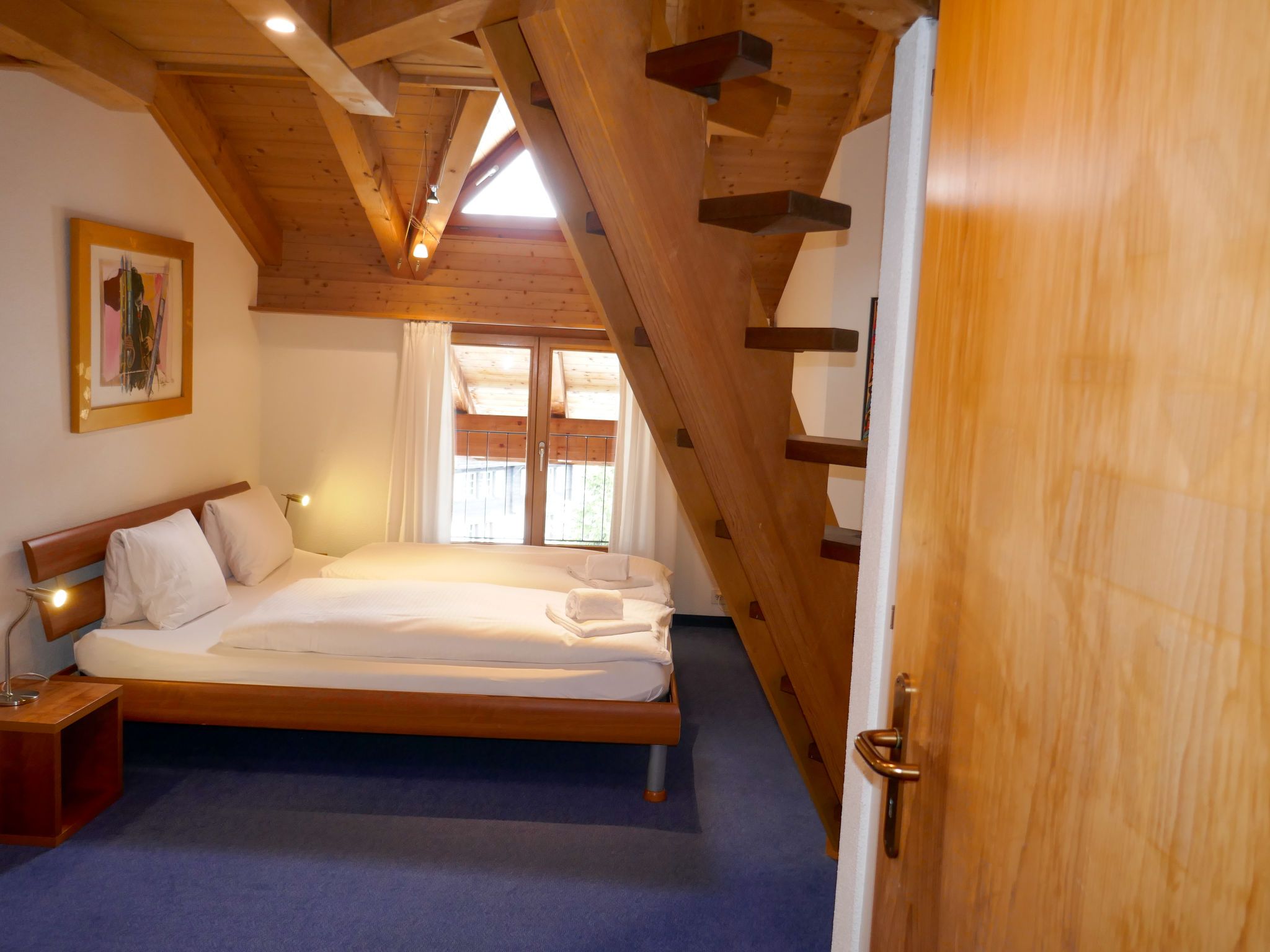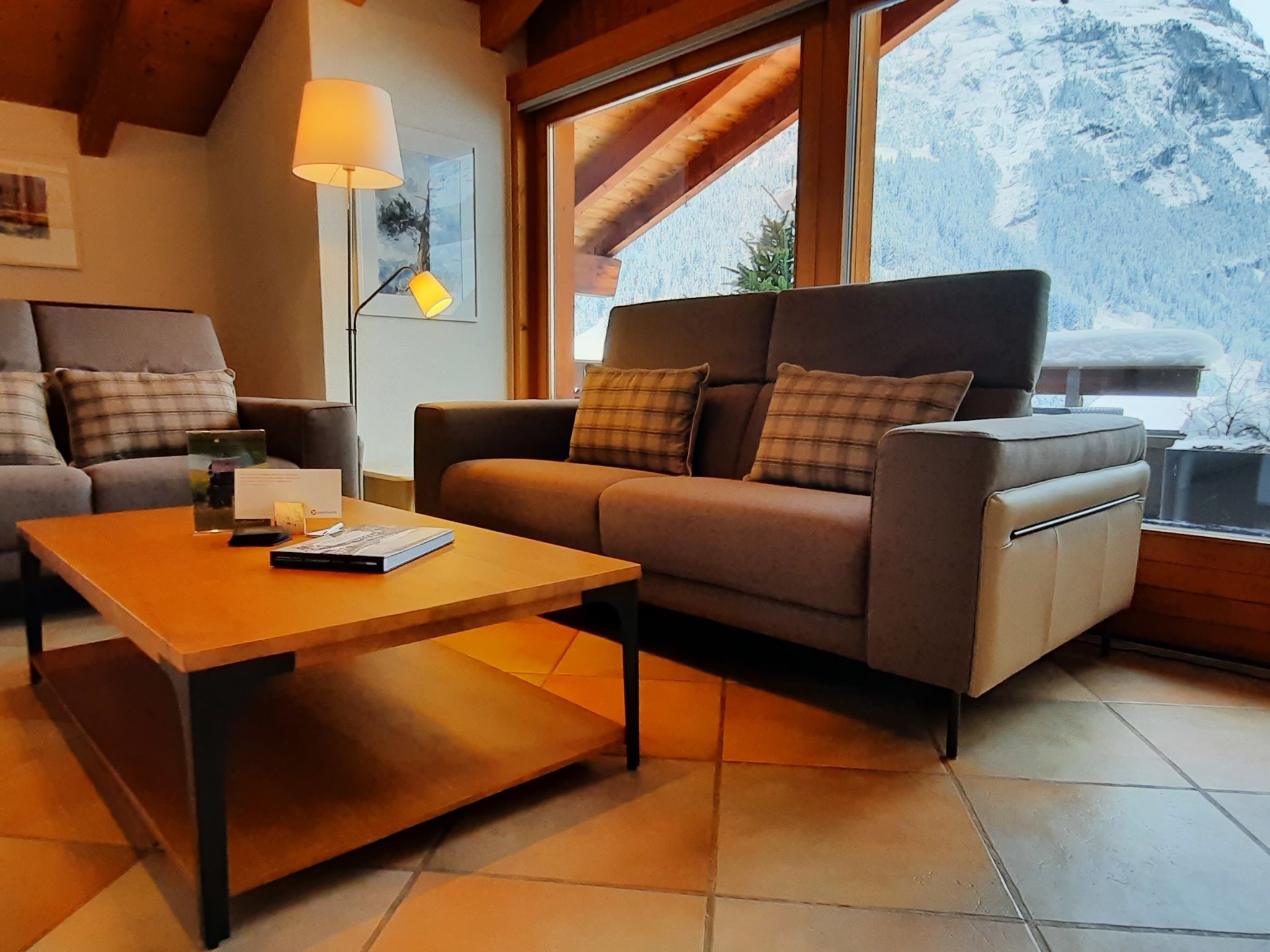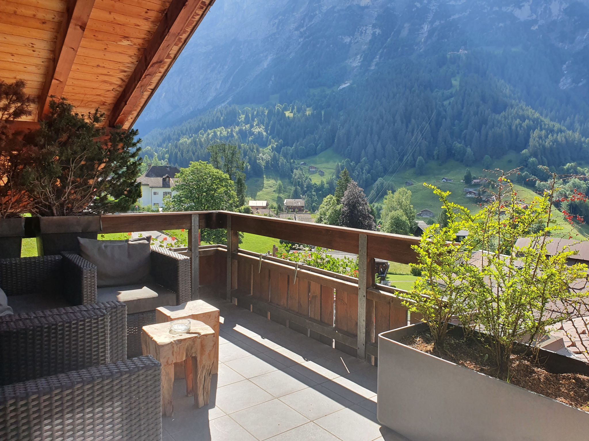 4-Zimmer-Wohnung 124 m2, im Dachgeschoss. Teilweise abgeschrägt, komfortabel und gemütlich eingerichtet: Wohn-/Esszimmer mit offenem Kamin und Kabel-TV (Flachbildschirm). Ausgang zum Balkon, Richtung Süden. 1 Zimmer mit 1 franz. Bett (180 cm, Länge 200 cm). 1 Zimmer mit 1 franz. Bett (140 cm, Länge 200 cm). 1 Doppelzimmer mit 2 Betten (90 cm, Länge 190 cm), Bad/Dusche/WC und Kabel-TV. Offene Küche (Backofen, Geschirrspüler, 4 Glaskeramikplatten, Toaster, Wasserkocher, Mikrowelle, elektrische Kaffeemaschine, Kapseln für die Kaffeemaschine (Nespresso) extra). Bad/WC, sep. WC. Balkon 16 m2, Südlage. Terrassenmöbel. Herrliche Sicht auf die Berge und Eiger. Zur Verfügung: Haartrockner. Internet (WLAN, gratis). Bitte beachten: Nichtraucher-Unterkunft. Maximal 1 Haustier/Hund erlaubt. Ein Fondue Set (Fleisch oder Käse) sowie ein Raclette Ofen kann an der Rezeption ausgeliehen werden. Zutritt zur Wohnung mit Aufzug und Treppe rauf.