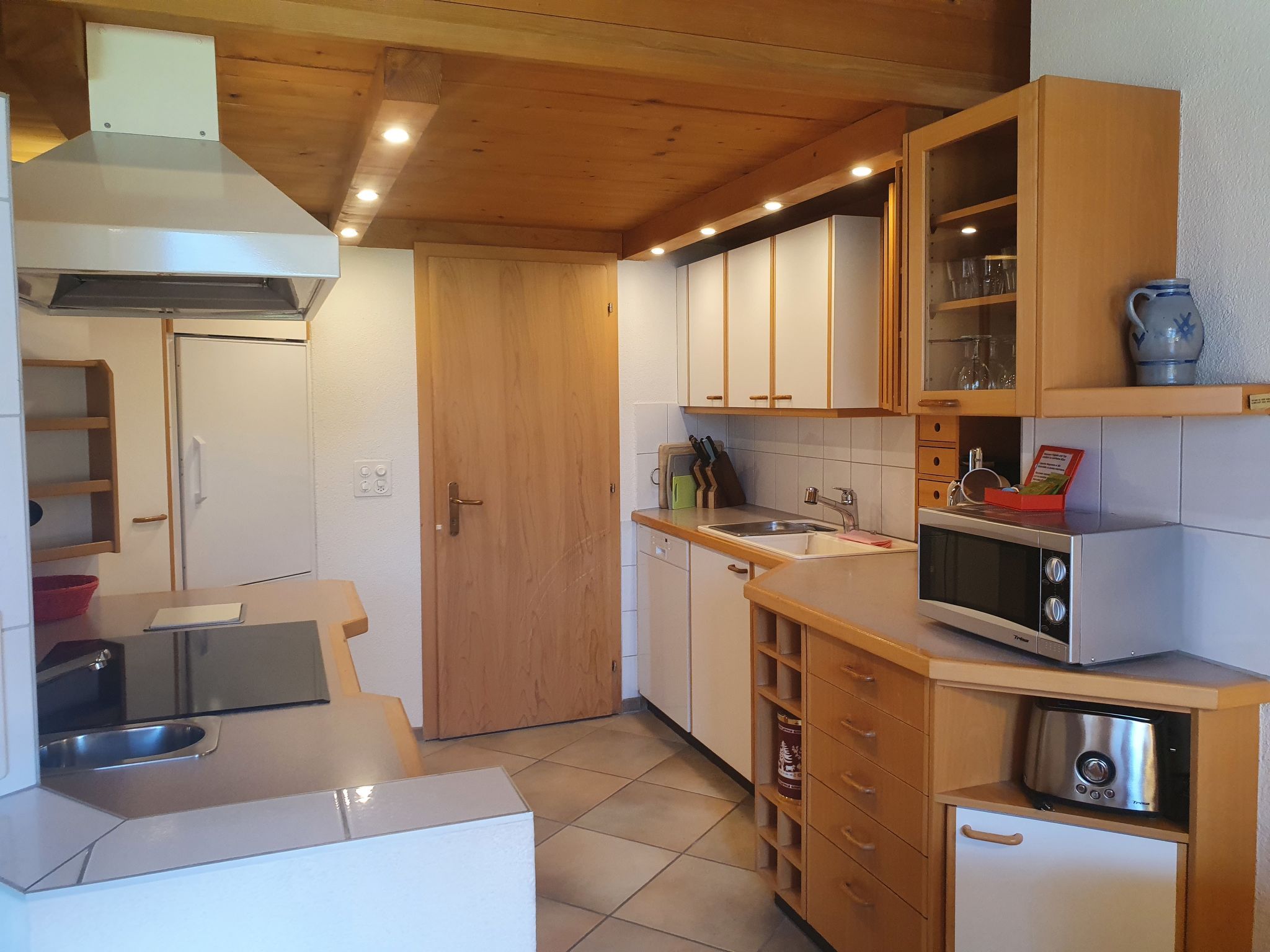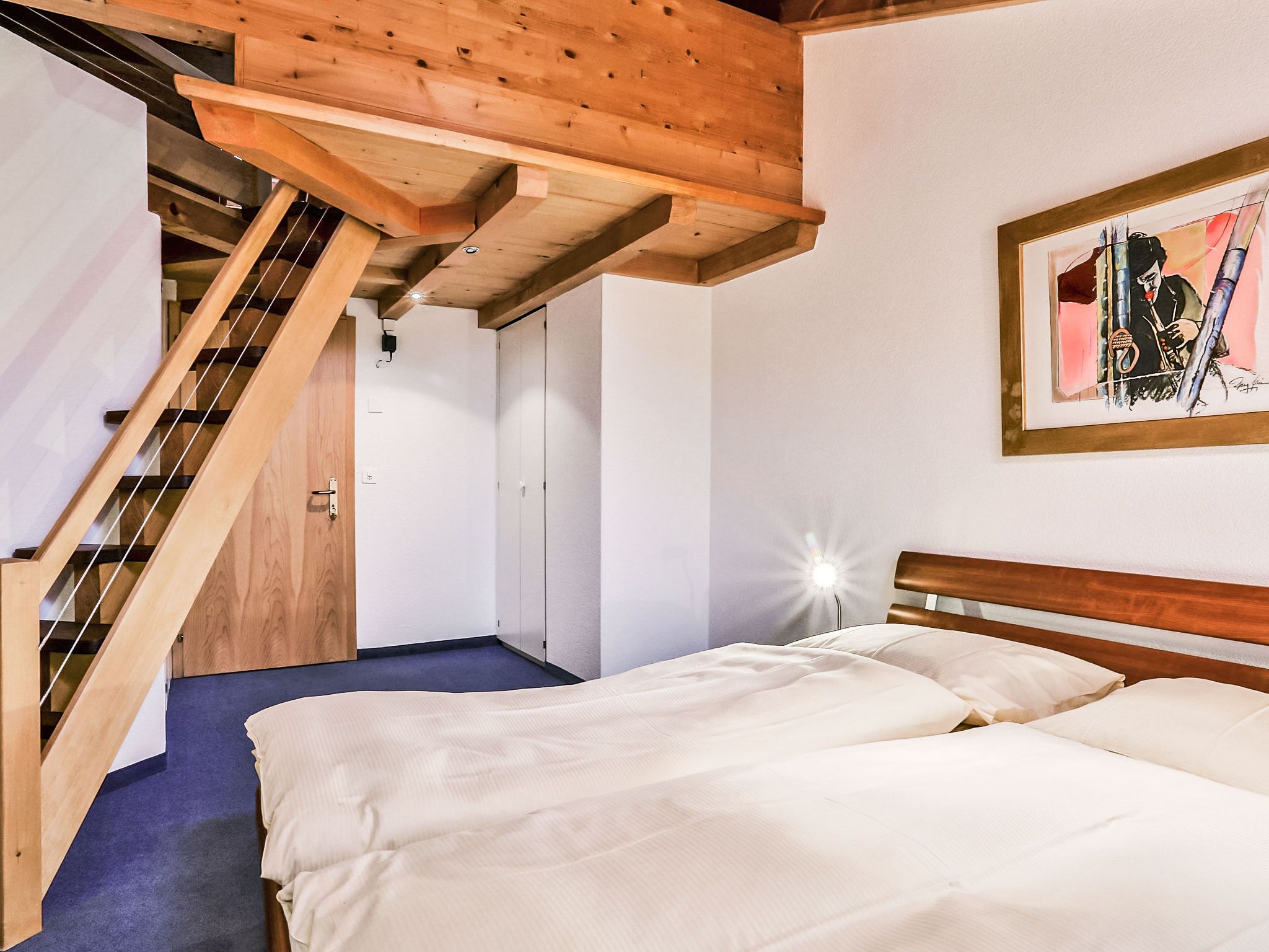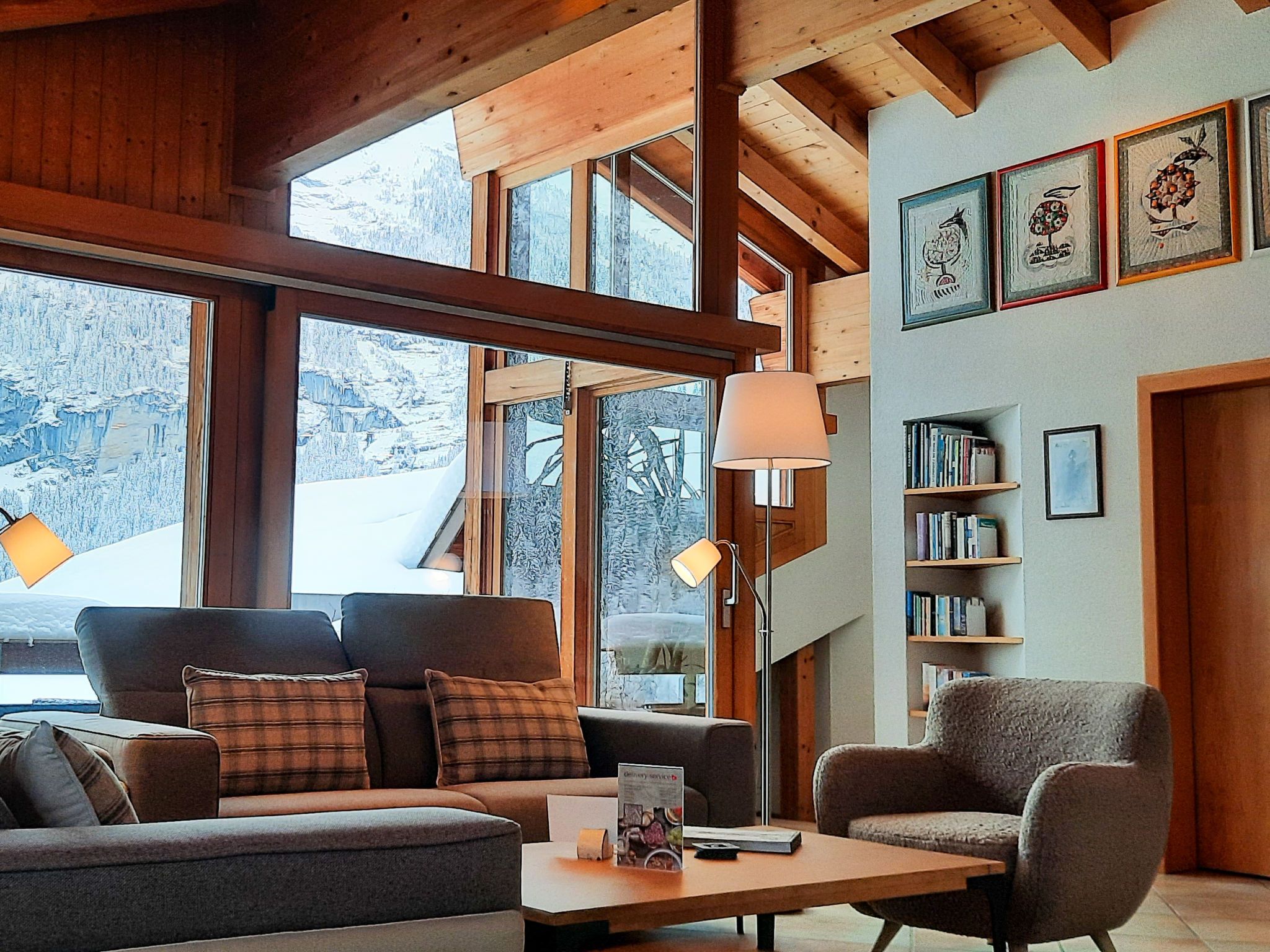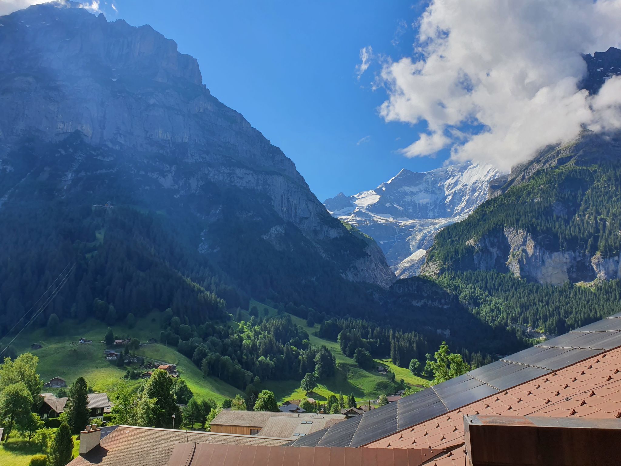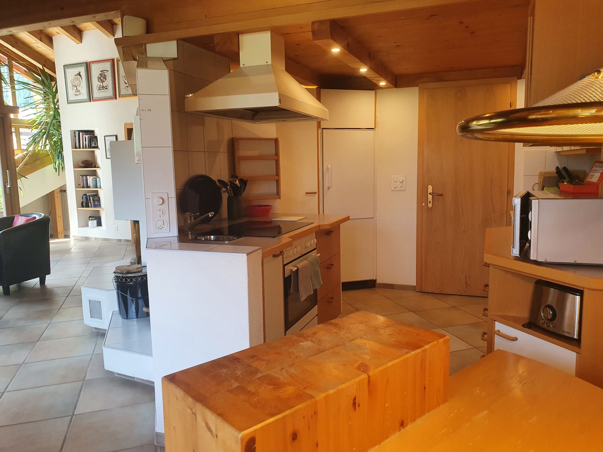 4-Zimmer-Wohnung 124 m2, im Dachgeschoss. Teilweise abgeschrägt, komfortabel und gemütlich eingerichtet: Wohn-/Esszimmer mit offenem Kamin und Kabel-TV (Flachbildschirm). Ausgang zum Balkon, Richtung Süden. 1 Zimmer mit 1 franz. Bett (180 cm, Länge 200 cm). 1 Zimmer mit 1 franz. Bett (140 cm, Länge 200 cm). 1 Doppelzimmer mit 2 Betten (90 cm, Länge 190 cm), Bad/Dusche/WC und Kabel-TV. Offene Küche (Backofen, Geschirrspüler, 4 Glaskeramikplatten, Toaster, Wasserkocher, Mikrowelle, elektrische Kaffeemaschine, Kapseln für die Kaffeemaschine (Nespresso) extra). Bad/WC, sep. WC. Balkon 16 m2, Südlage. Terrassenmöbel. Herrliche Sicht auf die Berge und Eiger. Zur Verfügung: Haartrockner. Internet (WLAN, gratis). Bitte beachten: Nichtraucher-Unterkunft. Maximal 1 Haustier/Hund erlaubt. Ein Fondue Set (Fleisch oder Käse) sowie ein Raclette Ofen kann an der Rezeption ausgeliehen werden. Zutritt zur Wohnung mit Aufzug und Treppe rauf.