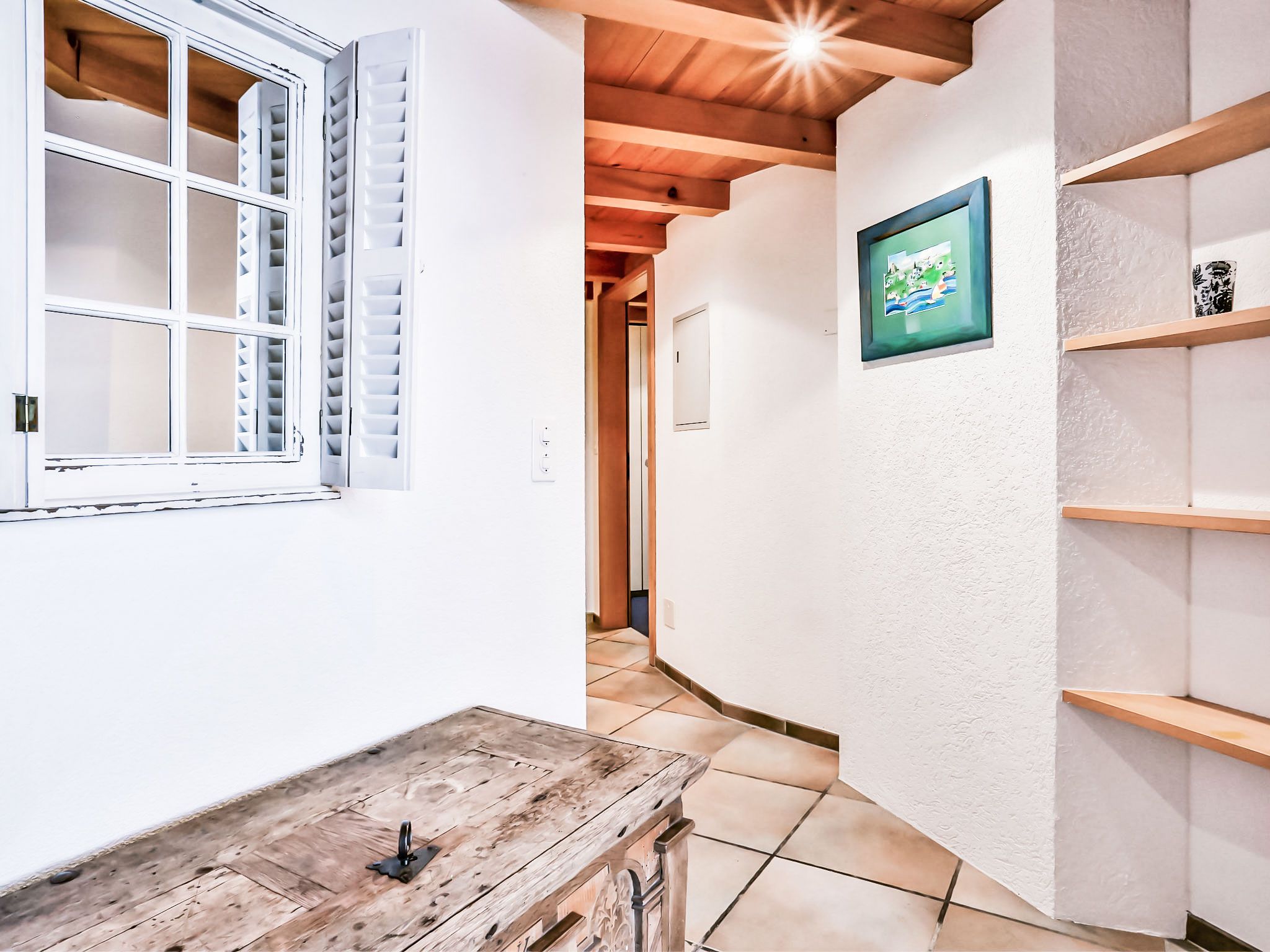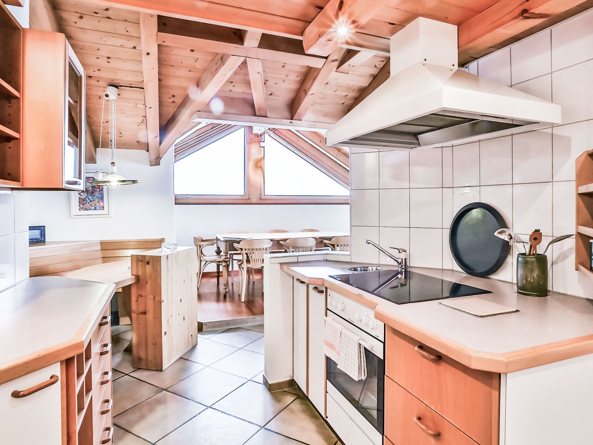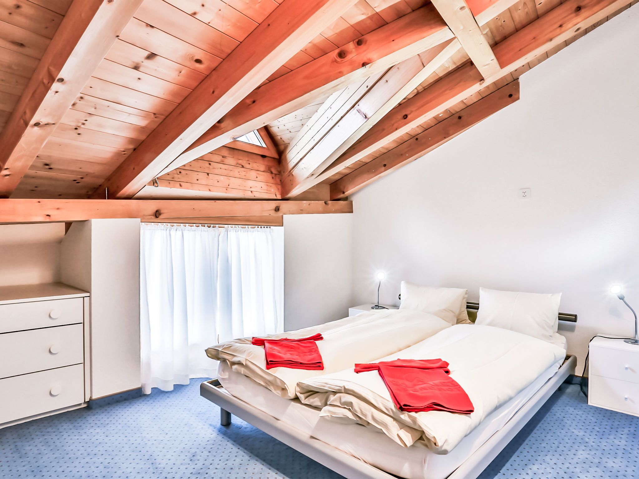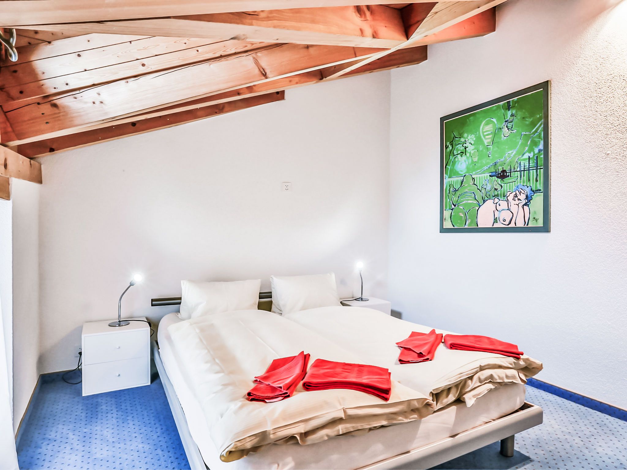 4-Zimmer-Wohnung 124 m2, im Dachgeschoss. Teilweise abgeschrägt, komfortabel und gemütlich eingerichtet: Wohn-/Esszimmer mit offenem Kamin und Kabel-TV (Flachbildschirm). Ausgang zum Balkon, Richtung Süden. 1 Zimmer mit 1 franz. Bett (180 cm, Länge 200 cm). 1 Zimmer mit 1 franz. Bett (140 cm, Länge 200 cm). 1 Doppelzimmer mit 2 Betten (90 cm, Länge 190 cm), Bad/Dusche/WC und Kabel-TV. Offene Küche (Backofen, Geschirrspüler, 4 Glaskeramikplatten, Toaster, Wasserkocher, Mikrowelle, elektrische Kaffeemaschine, Kapseln für die Kaffeemaschine (Nespresso) extra). Bad/WC, sep. WC. Balkon 16 m2, Südlage. Terrassenmöbel. Herrliche Sicht auf die Berge und Eiger. Zur Verfügung: Haartrockner. Internet (WLAN, gratis). Bitte beachten: Nichtraucher-Unterkunft. Maximal 1 Haustier/Hund erlaubt. Ein Fondue Set (Fleisch oder Käse) sowie ein Raclette Ofen kann an der Rezeption ausgeliehen werden. Zutritt zur Wohnung mit Aufzug und Treppe rauf.