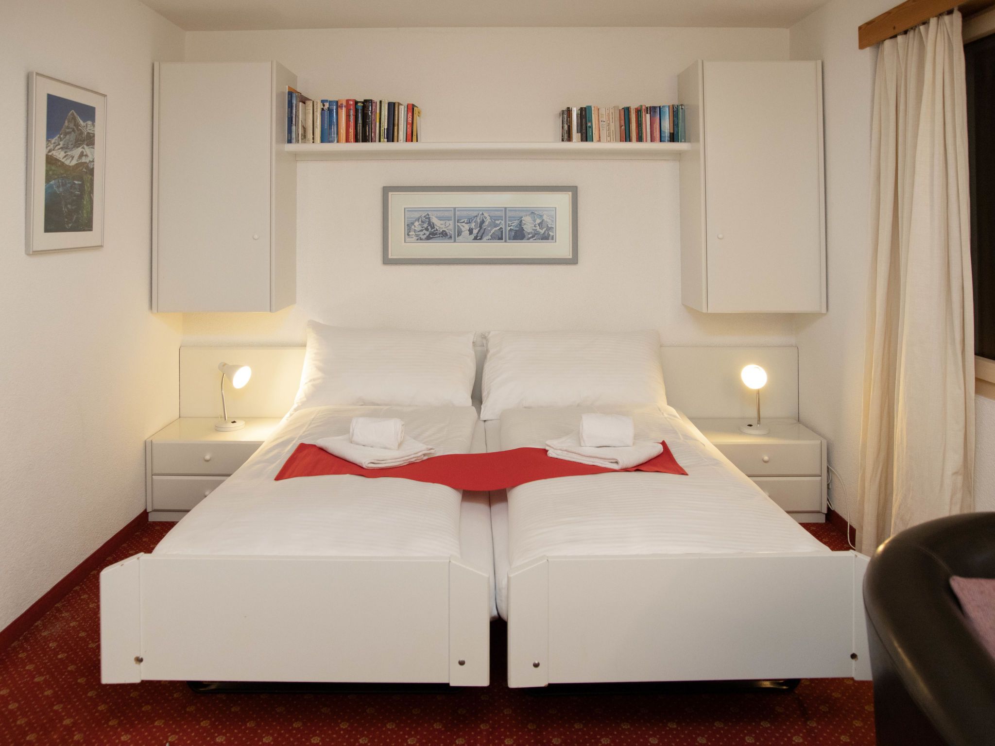 1-Zimmer-Wohnung 22 m2. Wohn-/Esszimmer mit 2 Betten und Kabel-TV (Flachbildschirm). Kochnische (Backofen, 4 Glaskeramikplatten, Toaster, Wasserkocher, elektrische Kaffeemaschine). Dusche/WC. Sicht auf die Berge und Eiger. Zur Verfügung: Haartrockner. Internet (Wireless LAN, gratis). Bitte beachten: Nichtraucher-Unterkunft. Maximal 1 Haustier/Hund erlaubt. Ein Fondue Set (Fleisch oder Käse) sowie ein Raclette Ofen kann an der Rezeption ausgeliehen werden.