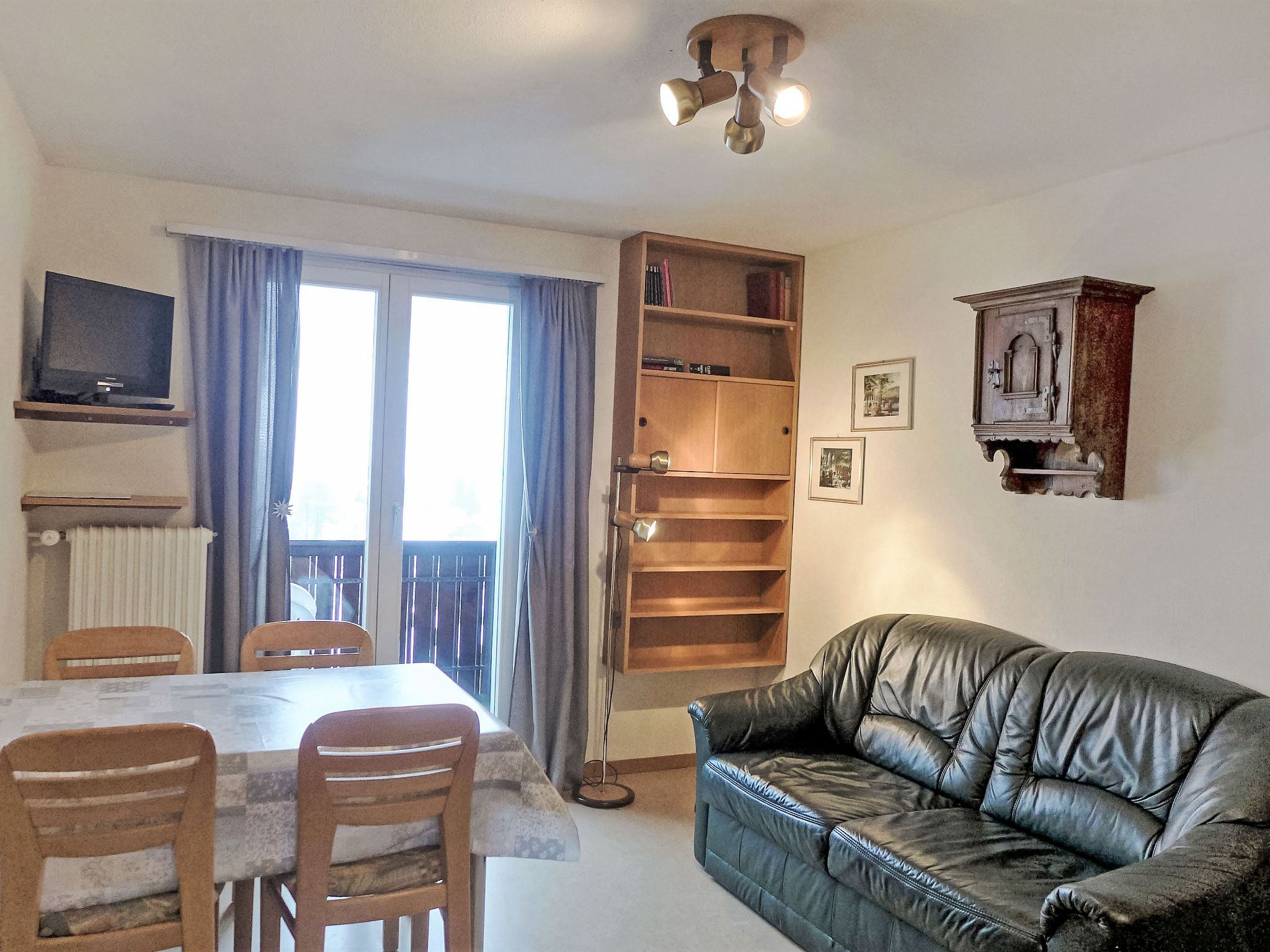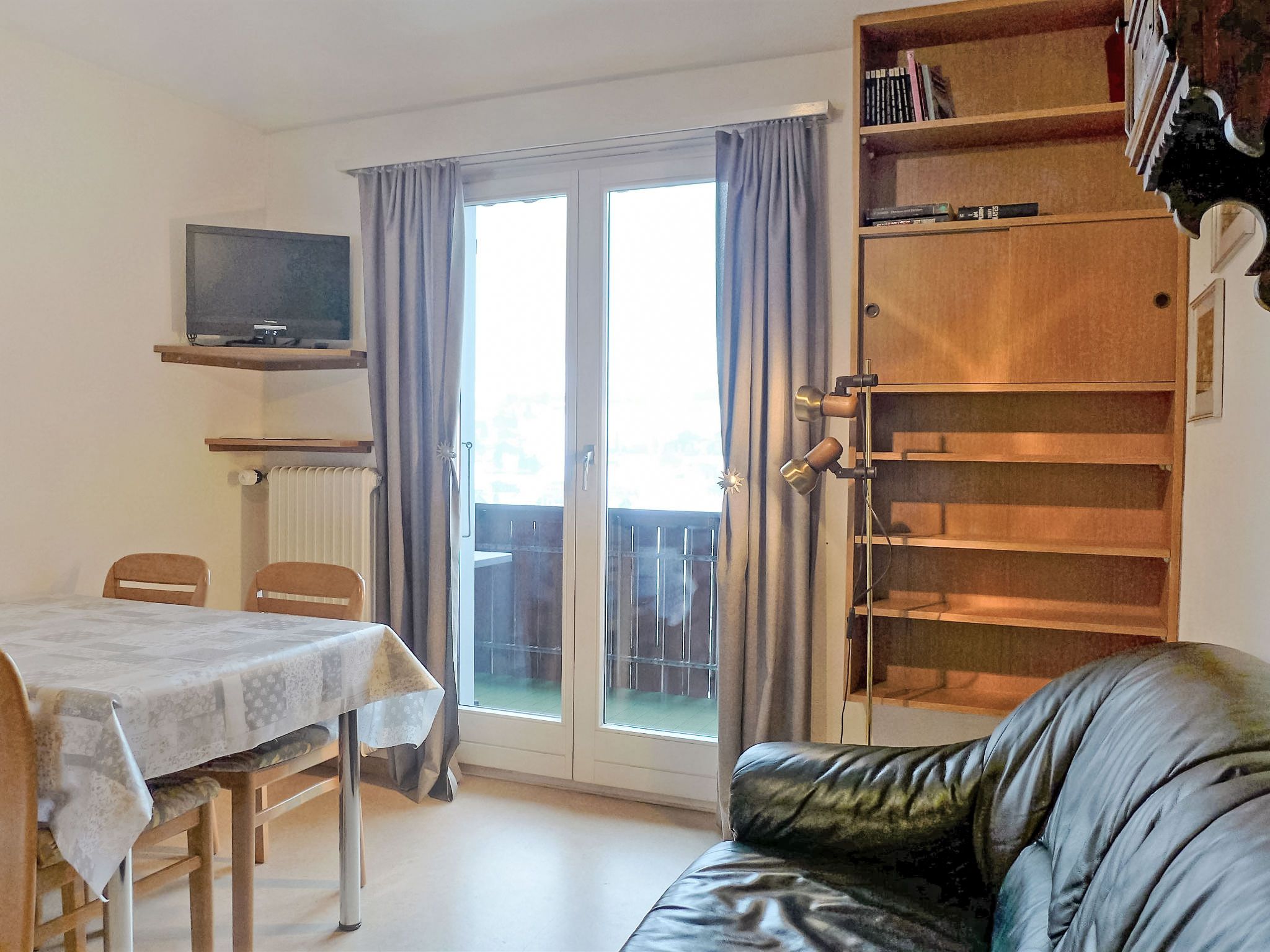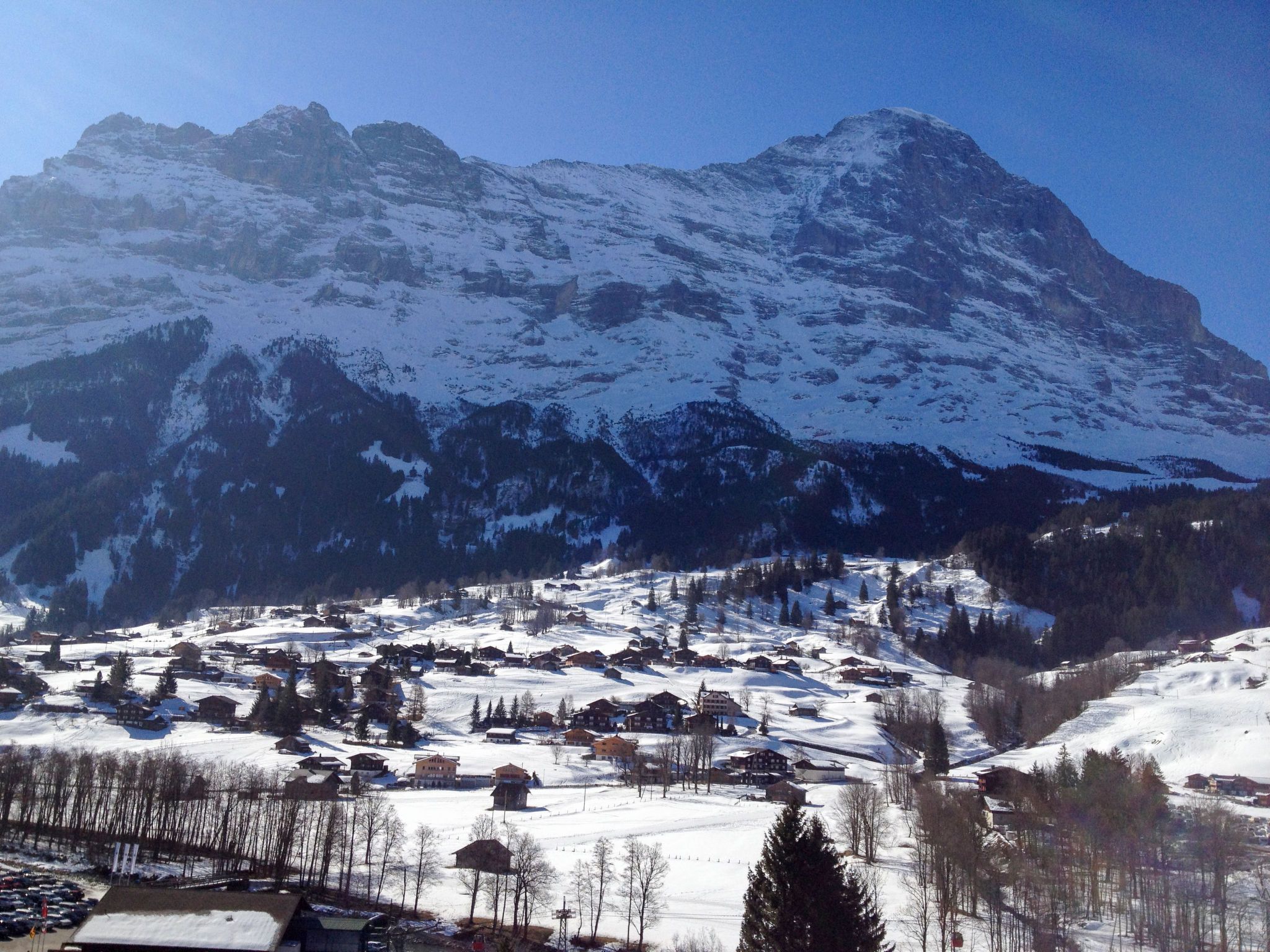 2-Zimmer-Wohnung 30 m2 im 4. Stock, Südlage. Zweckmässig eingerichtet: Wohn-/Esszimmer mit Sat-TV (Flachbildschirm). Ausgang zum Balkon, Richtung Süden und Richtung Westen. 1 Zimmer mit 1 Doppelbett (2 x 90 cm, Länge 200 cm). Ausgang zum Balkon, Richtung Süden und Richtung Westen. Kochnische (2 Kochplatten, Toaster, Wasserkocher, Mikrowelle, elektrische Kaffeemaschine, Racletteofen). Dusche/WC. Parkettboden. Balkon 8 m2, Südlage und Westlage. Balkonmöbel. Herrliche Sicht auf die Berge, die Skipiste, die Ortschaft und Eigernordwand. Zur Verfügung: Haartrockner. Internet (Wireless LAN, gratis). Parkplatz beim Haus. Bitte beachten: Nichtraucher-Unterkunft. Feuerlöscher, kein Fahrstuhl. Das Badezimmer liegt ausserhalb der Wohnung (1m, zur Alleinbenutzung).