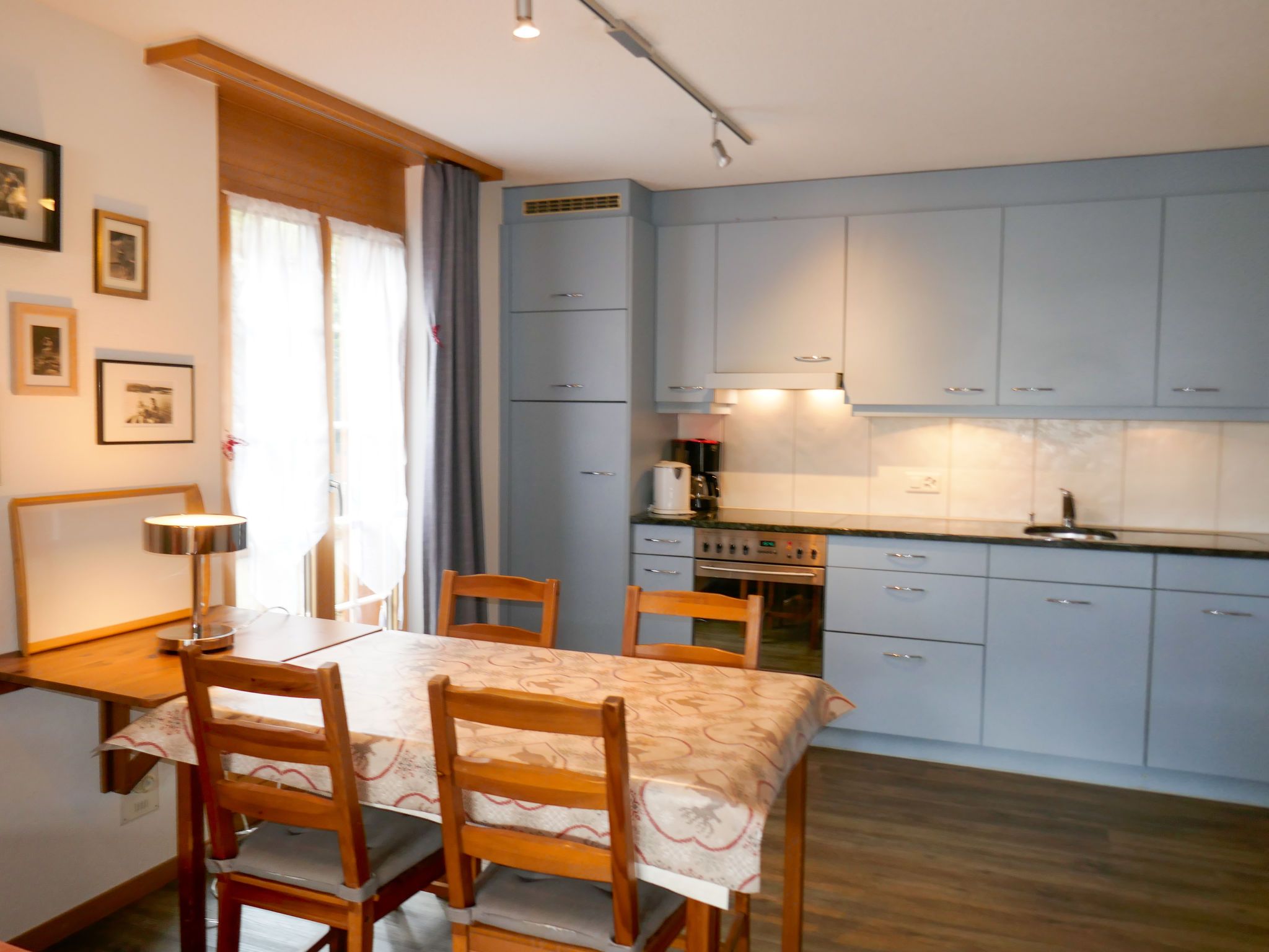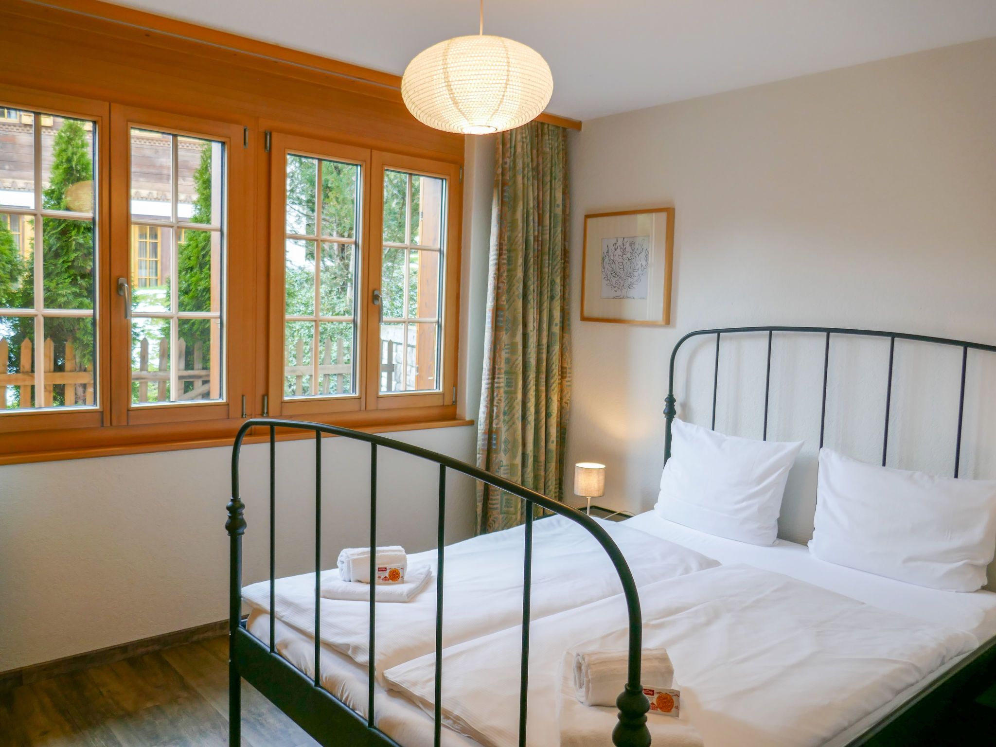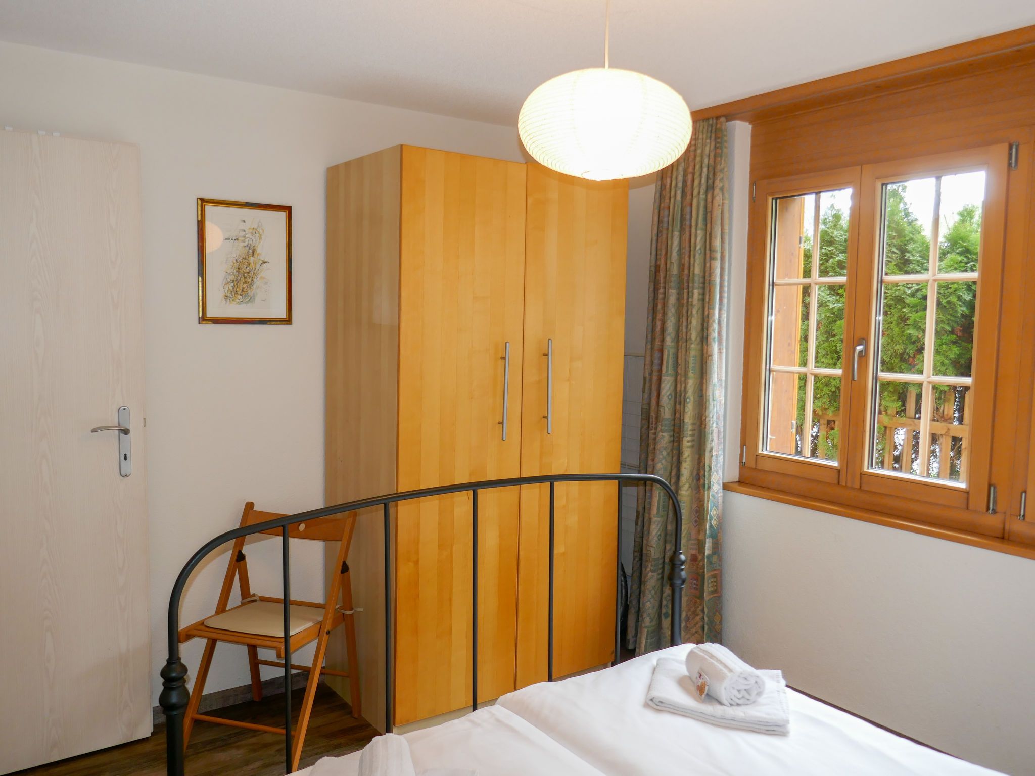 2-Zimmer-Wohnung 42 m2, im Erdgeschoss, Südwestlage. Modern und gemütlich eingerichtet: Wohn-/Schlafzimmer mit 1 Doppeldiwanbett (140 cm, Länge 200 cm), Internationale TV-Sender, Radio und CD. Ausgang zum Gartensitzplatz, Richtung Süden und Richtung Westen. 1 Zimmer mit 1 franz. Bett (140 cm, Länge 200 cm). Offene Küche (Backofen, Geschirrspüler, 4 Glaskeramikplatten, Toaster, Wasserkocher, Mikrowelle, elektrische Kaffeemaschine, Kapseln für die Kaffeemaschine (Nespresso) extra, Racletteofen, Fondue Set (Käse)). Dusche/WC. Fussbodenheizung. Parkettboden. Gartensitzplatz, Südlage und Westlage. Balkonmöbel. Sehr schöne Sicht auf die Berge, die Landschaft und Eigernordwand. Zur Verfügung: Haartrockner. Internet (WLAN, gratis). Parkplatz Nr. 22. Bitte beachten: Nichtraucher-Unterkunft. Maximal 1 Haustier/Hund erlaubt. Feuerlöscher.